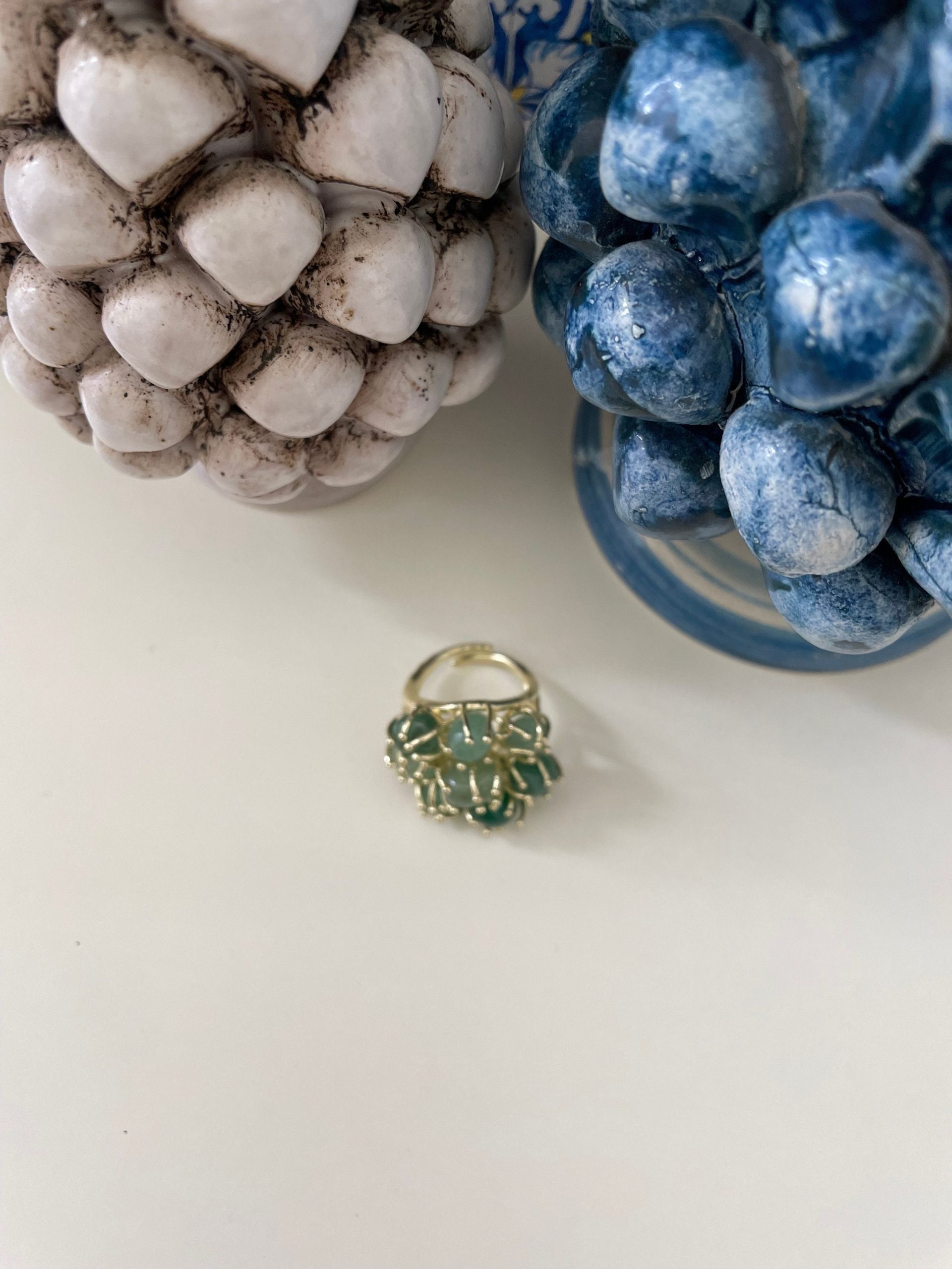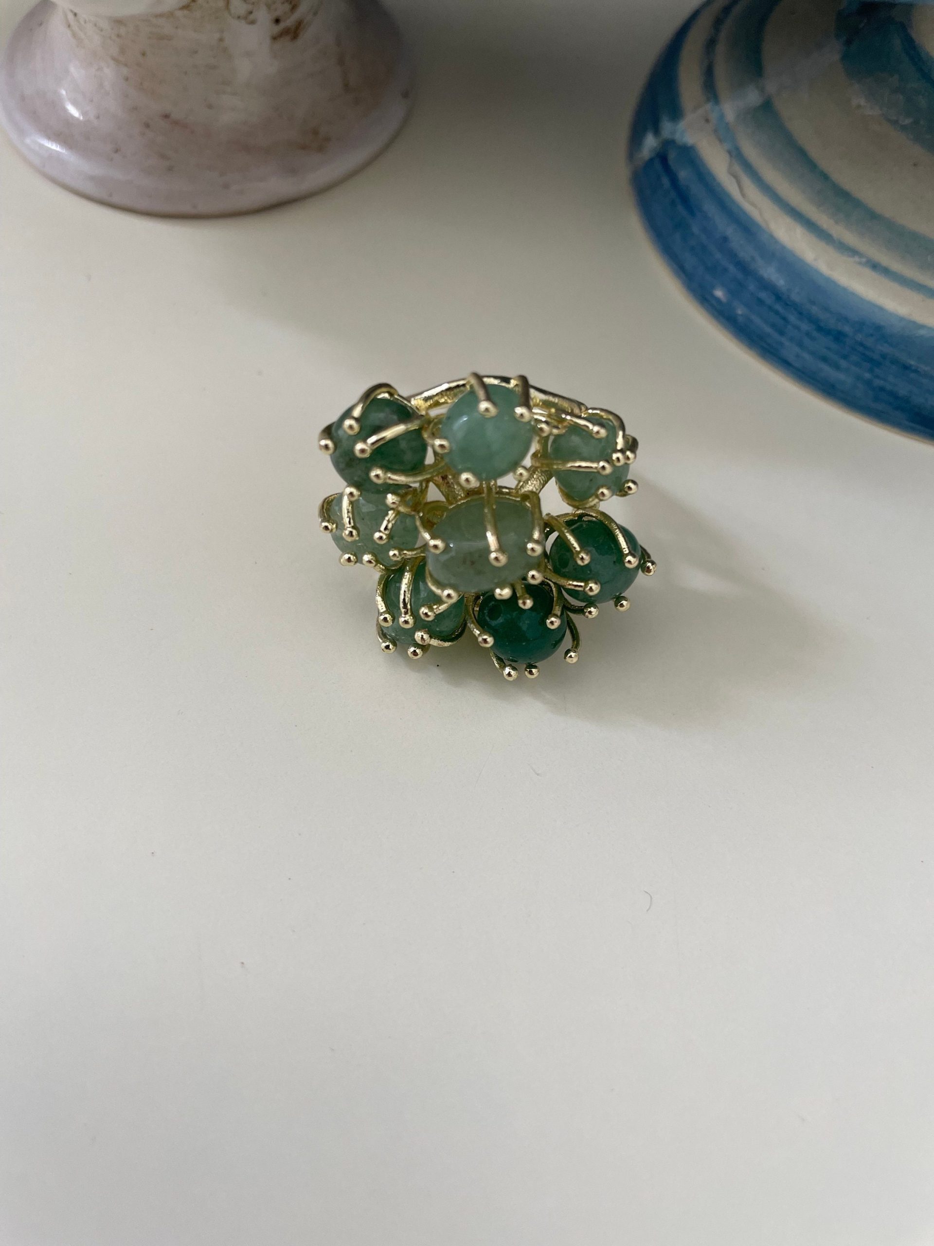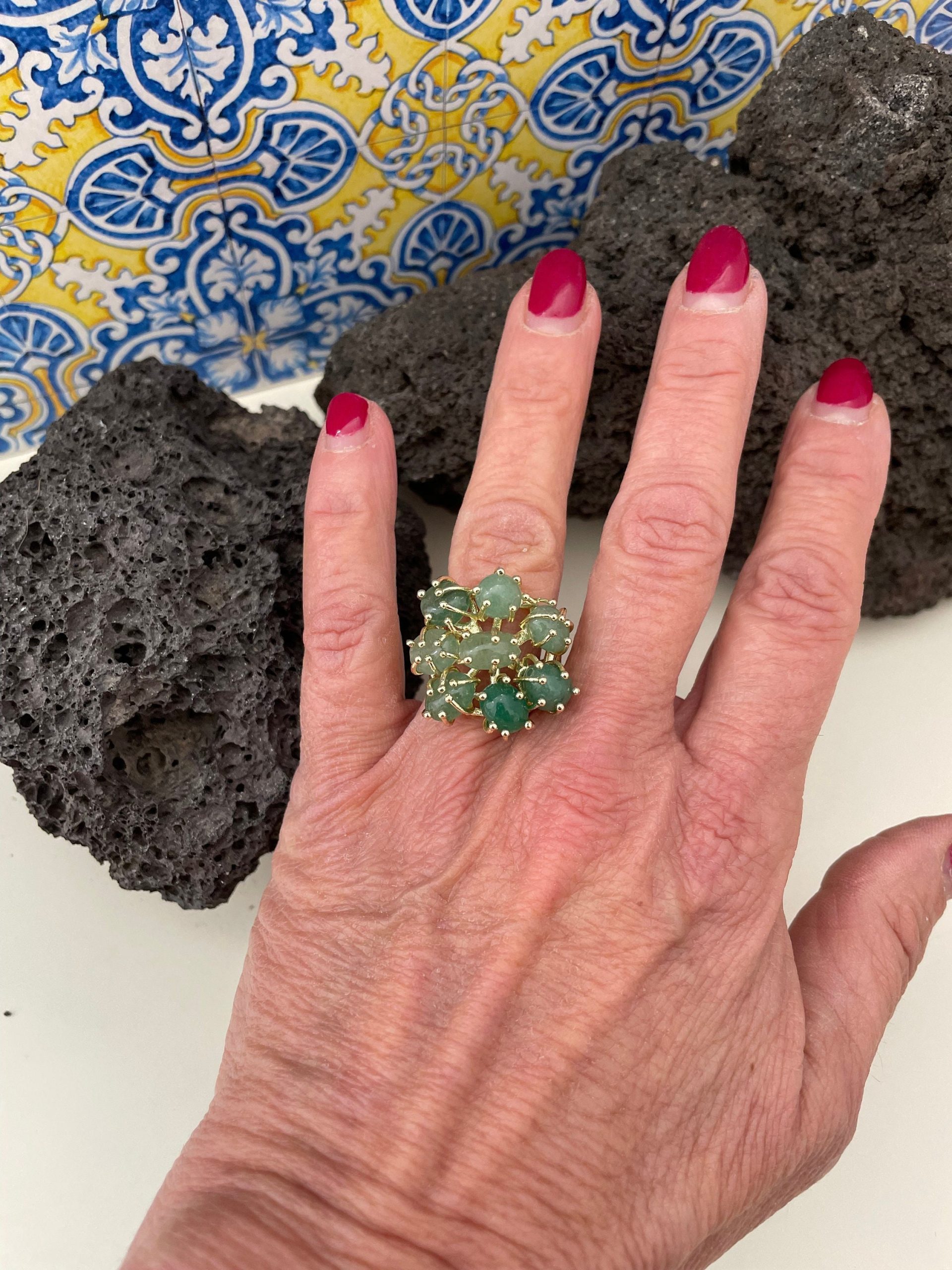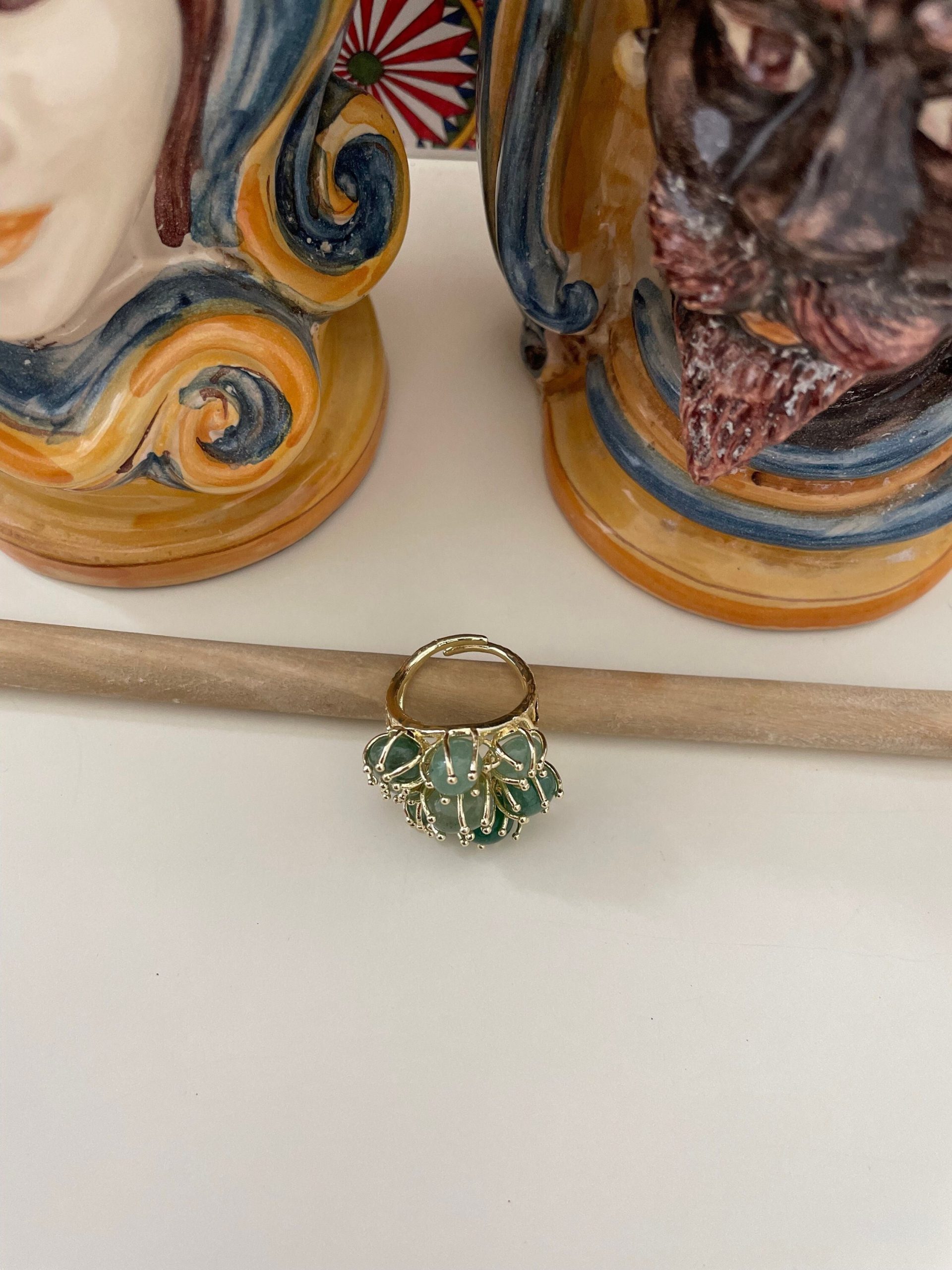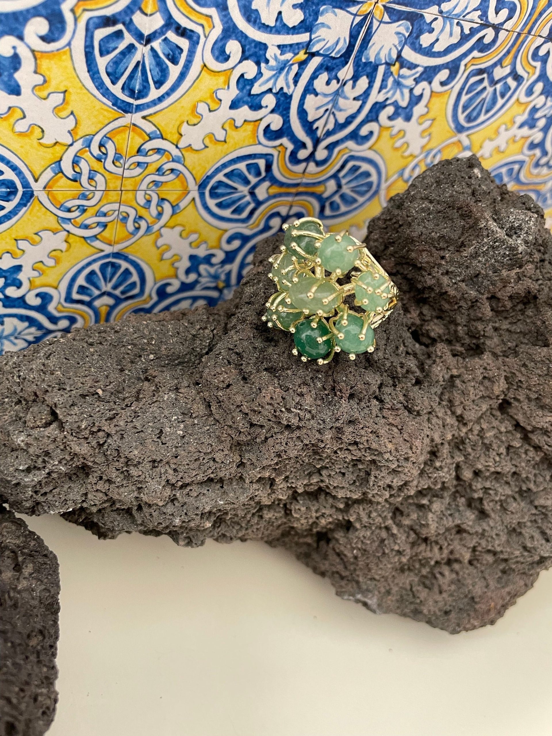 Realizzato con struttura in ottone e otto pietre di Agata verde incastonate.