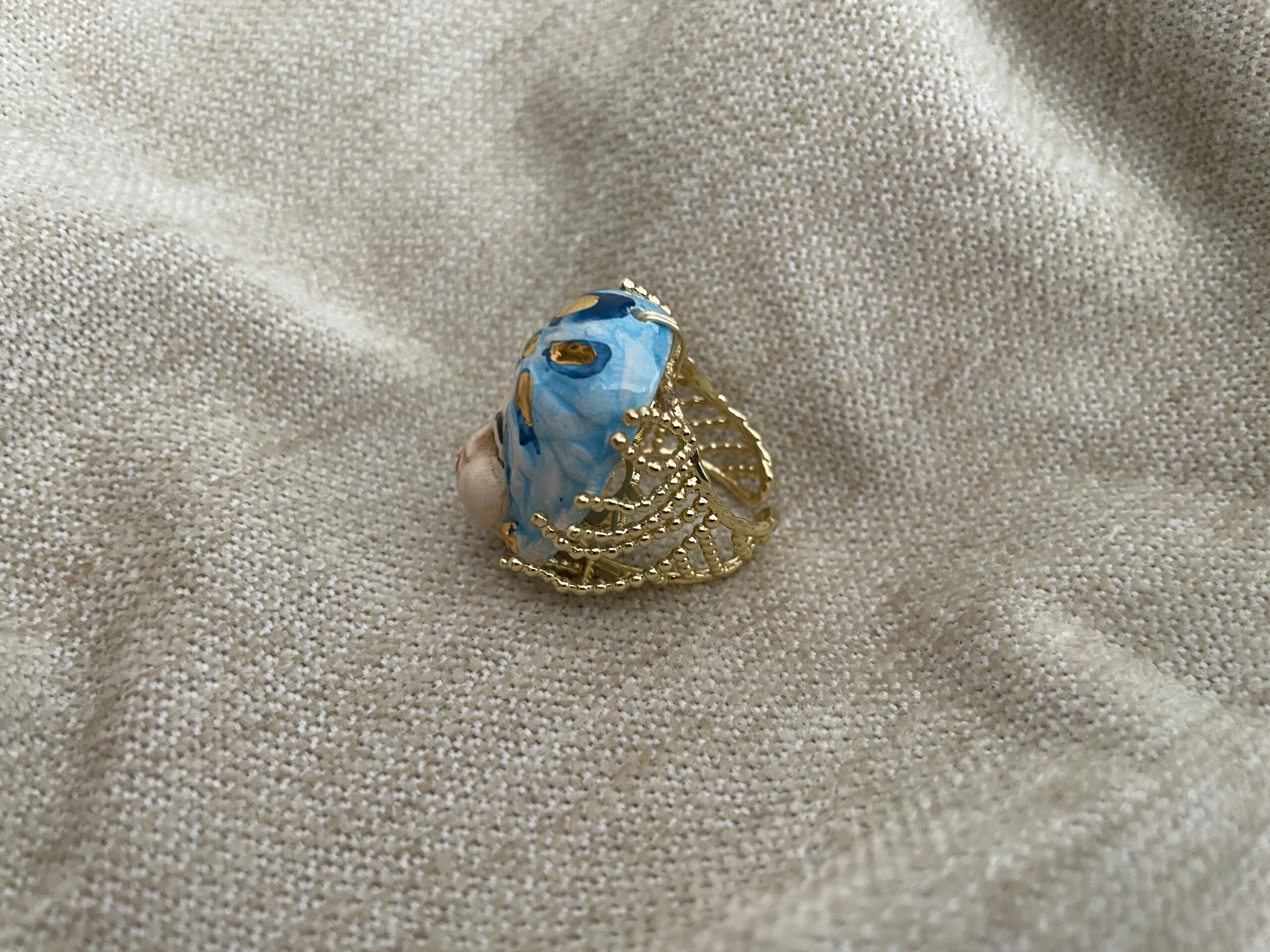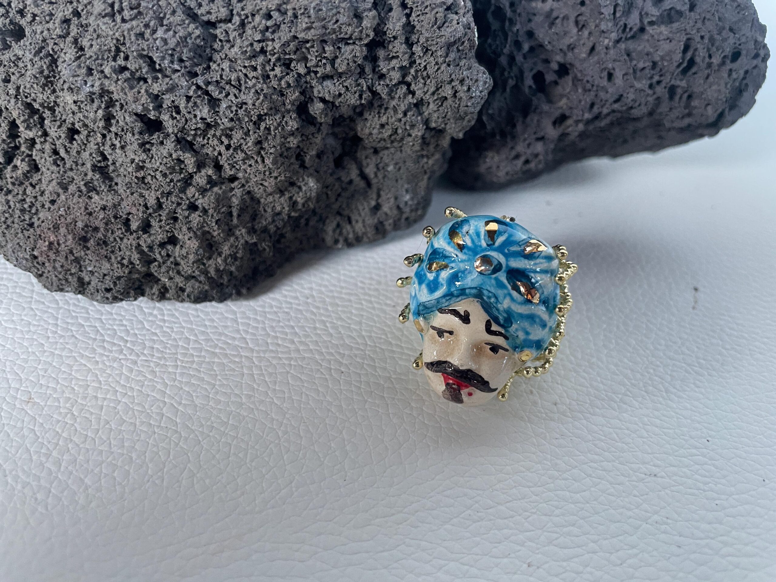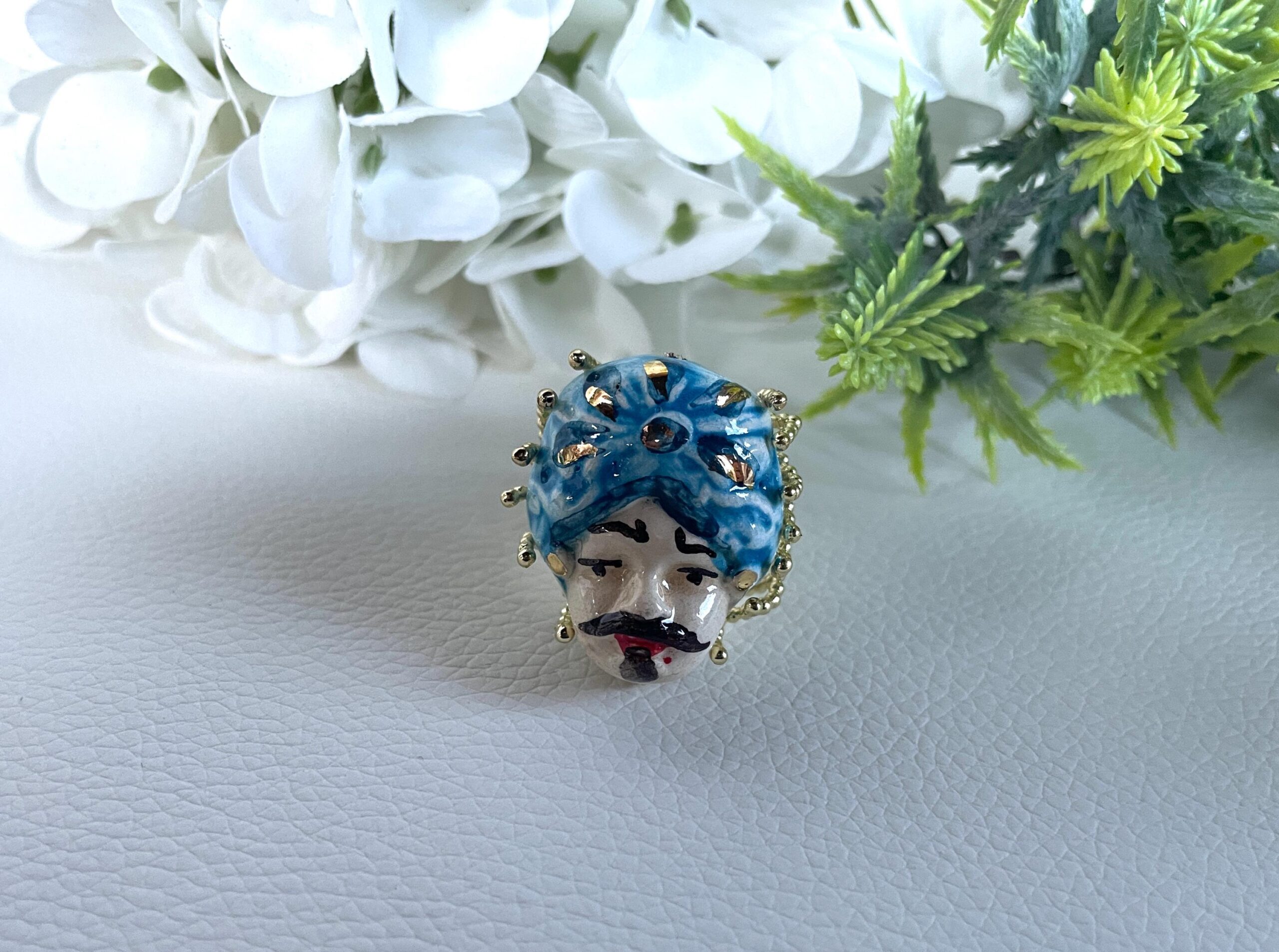 Anello con Testa di moro di ceramica di Caltagirone dipinta a mano.