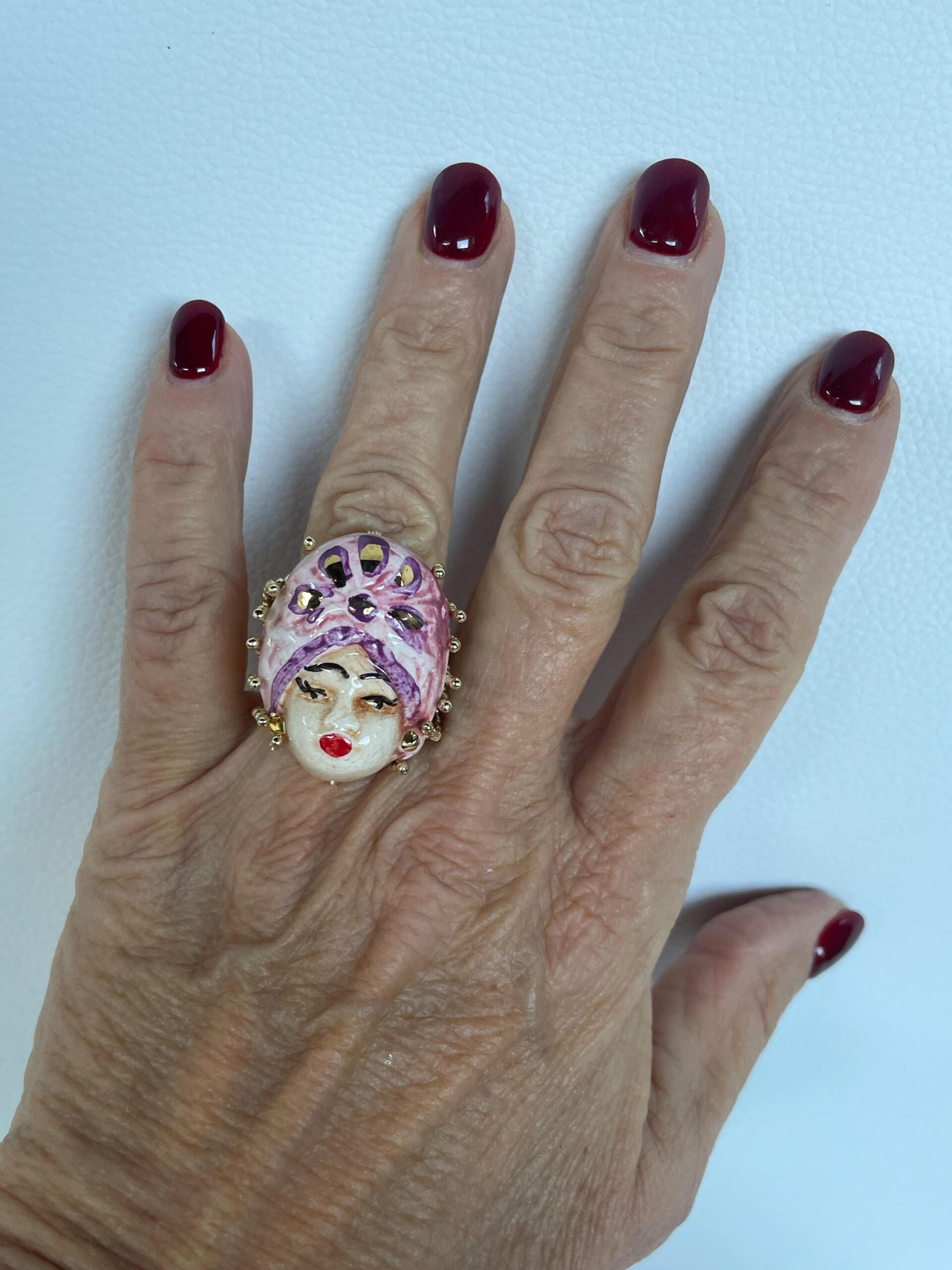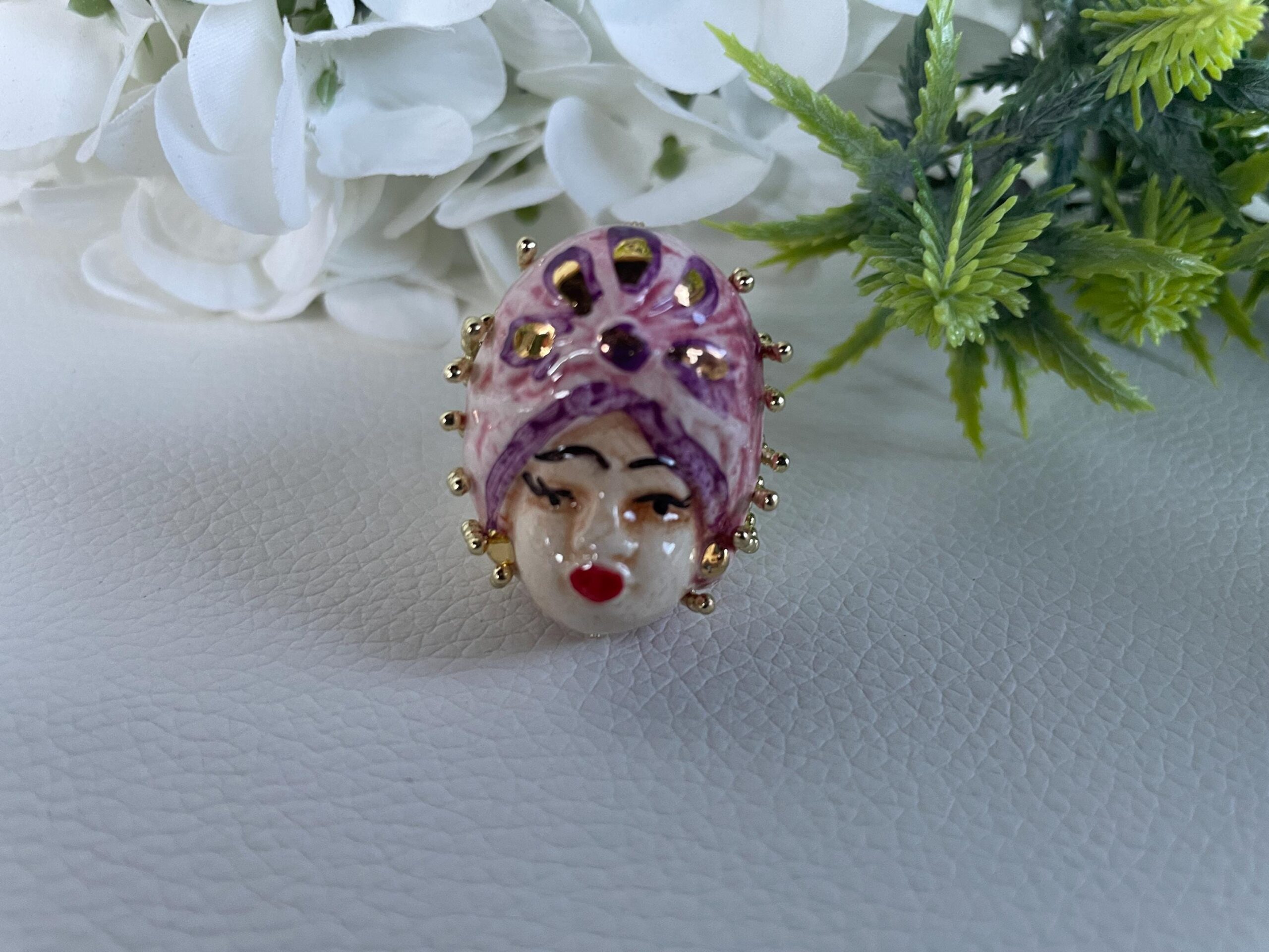Anello Testa di moro, anello siciliano, anello ceramica di Caltagirone, anello maxi, anello regolabile, anello scultura.