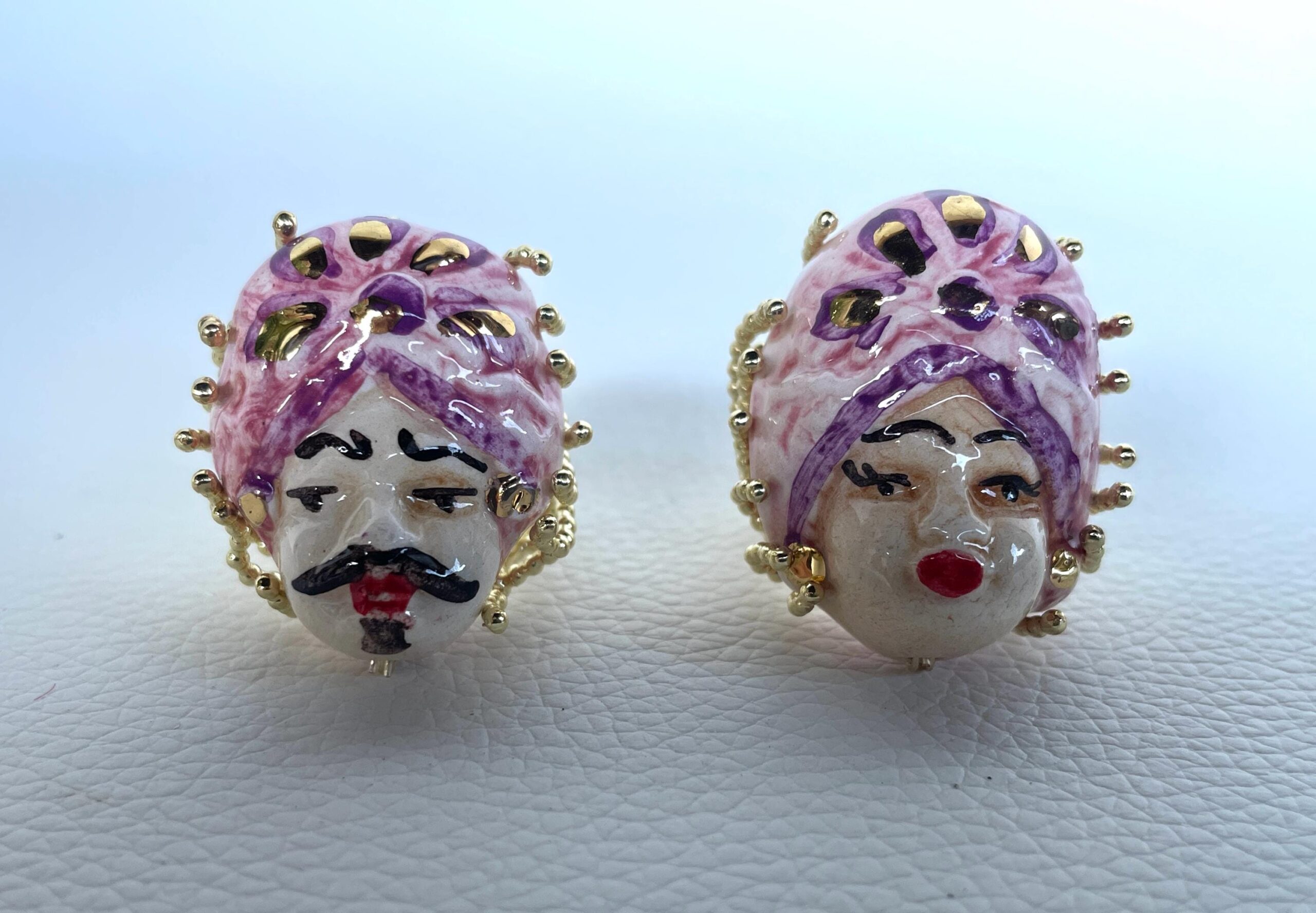 Anello con Testa di moro di ceramica di Caltagirone dipinta a mano.