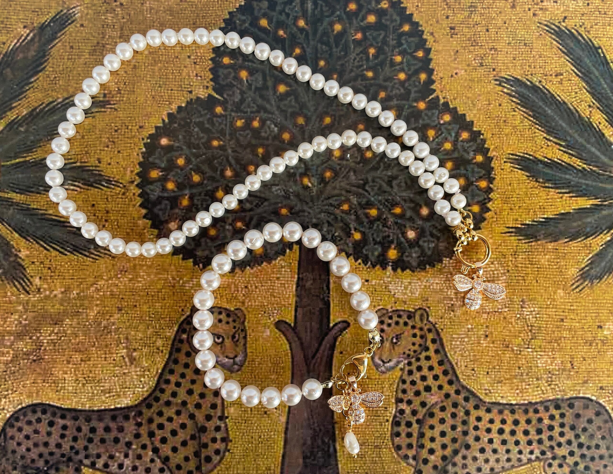 Filo di perle Maiorca e chiusura a molla ad anello in acciaio inox, placcato oro 14k.