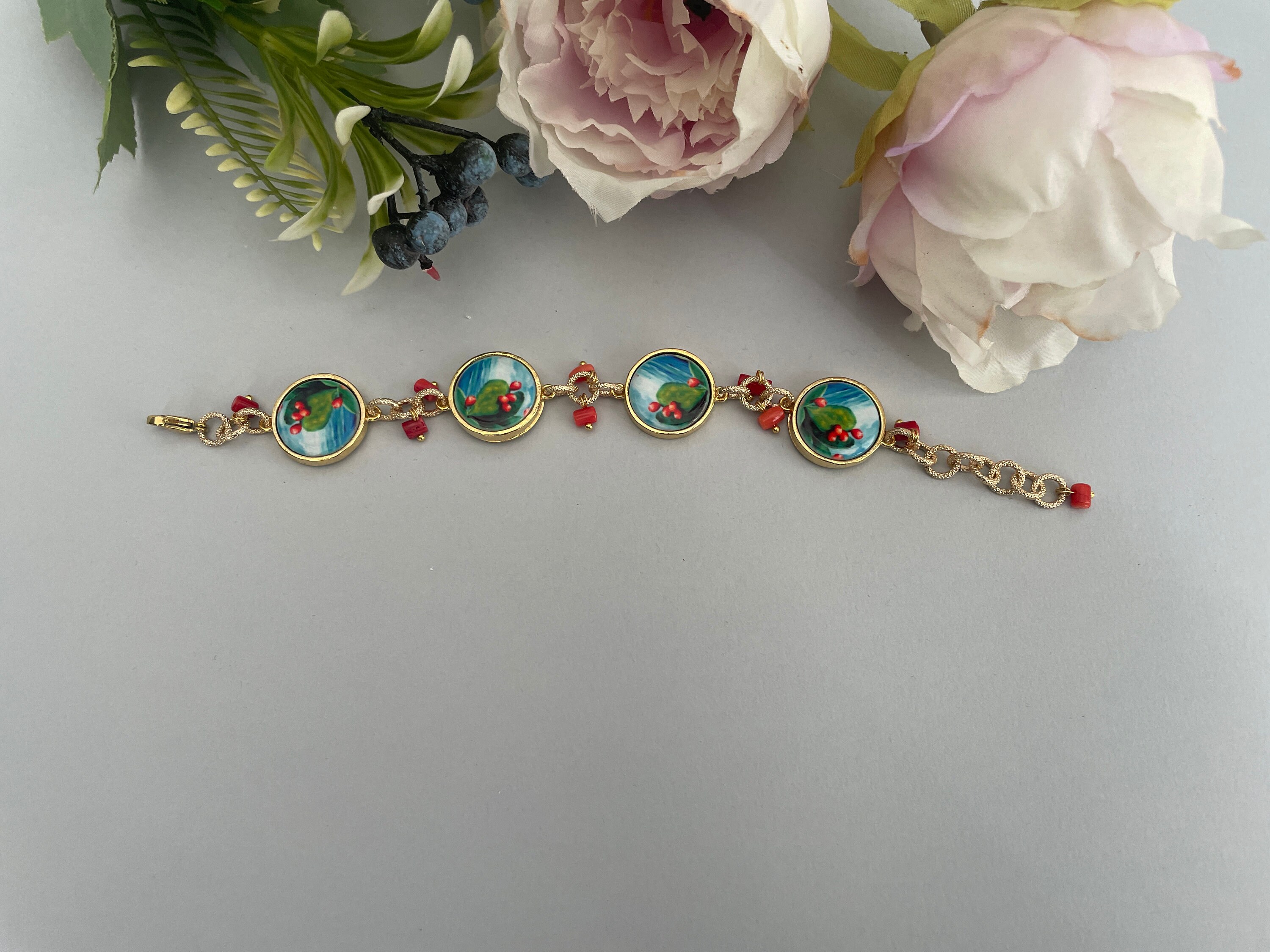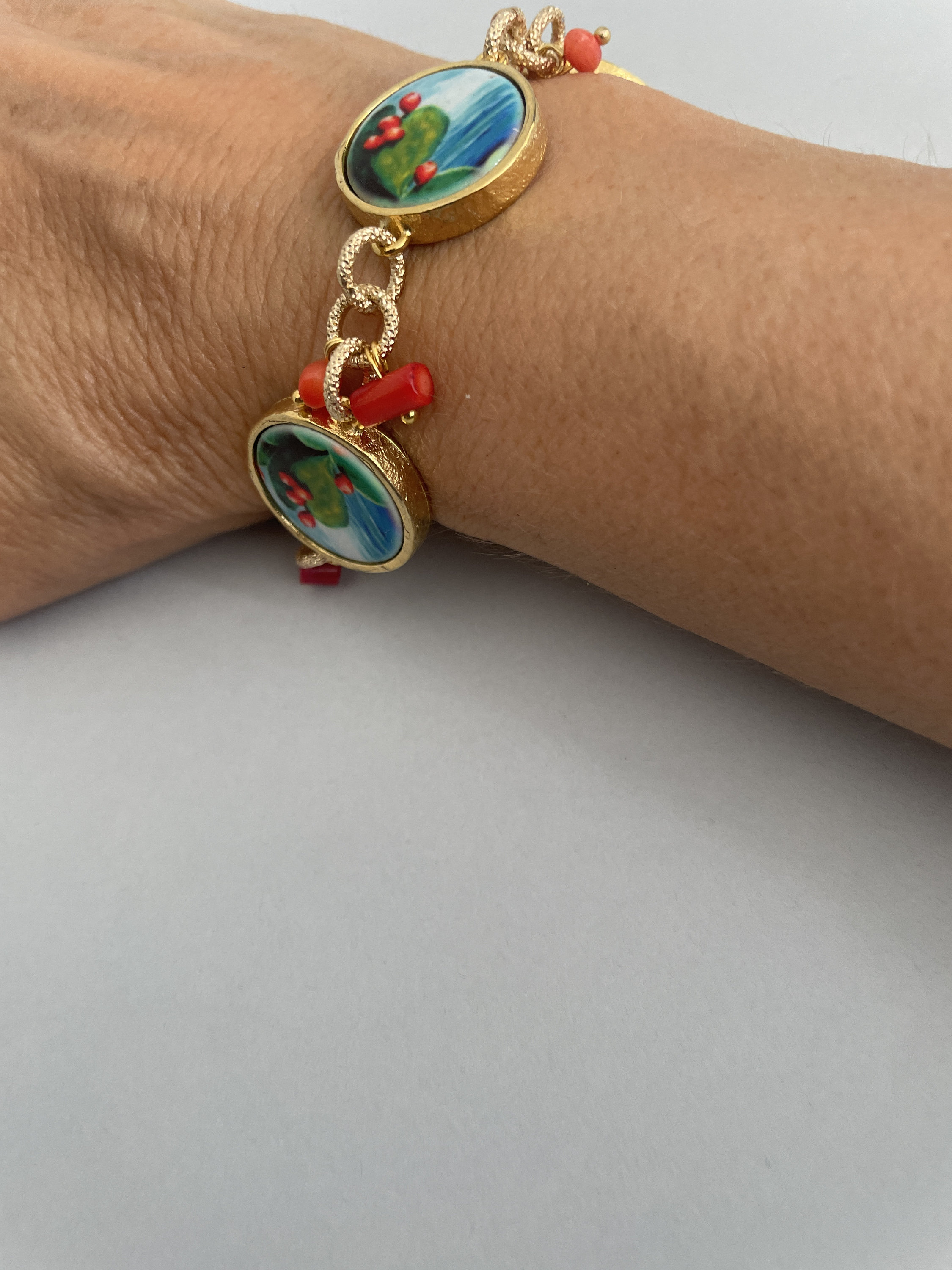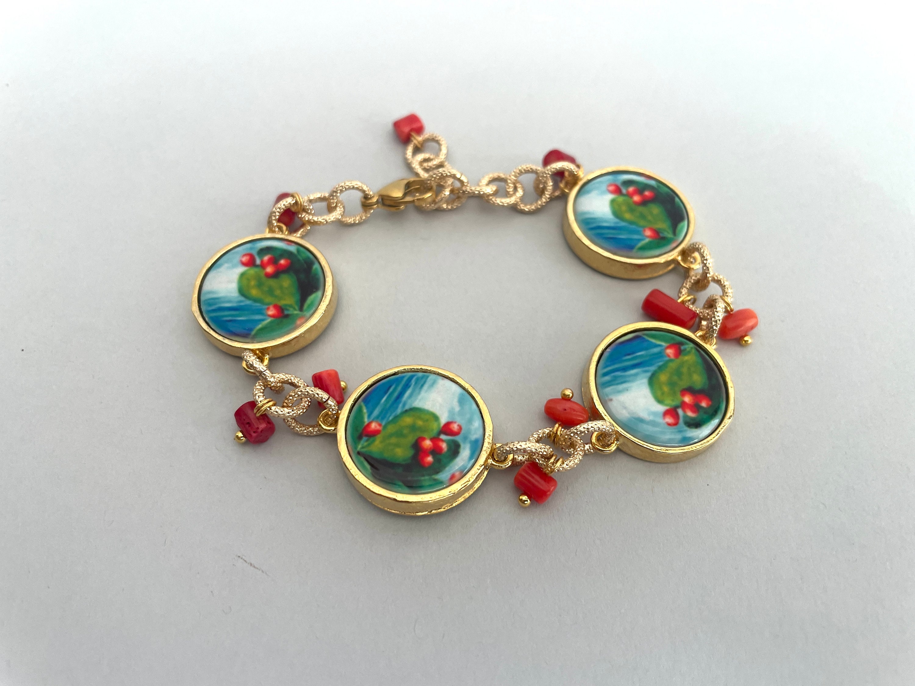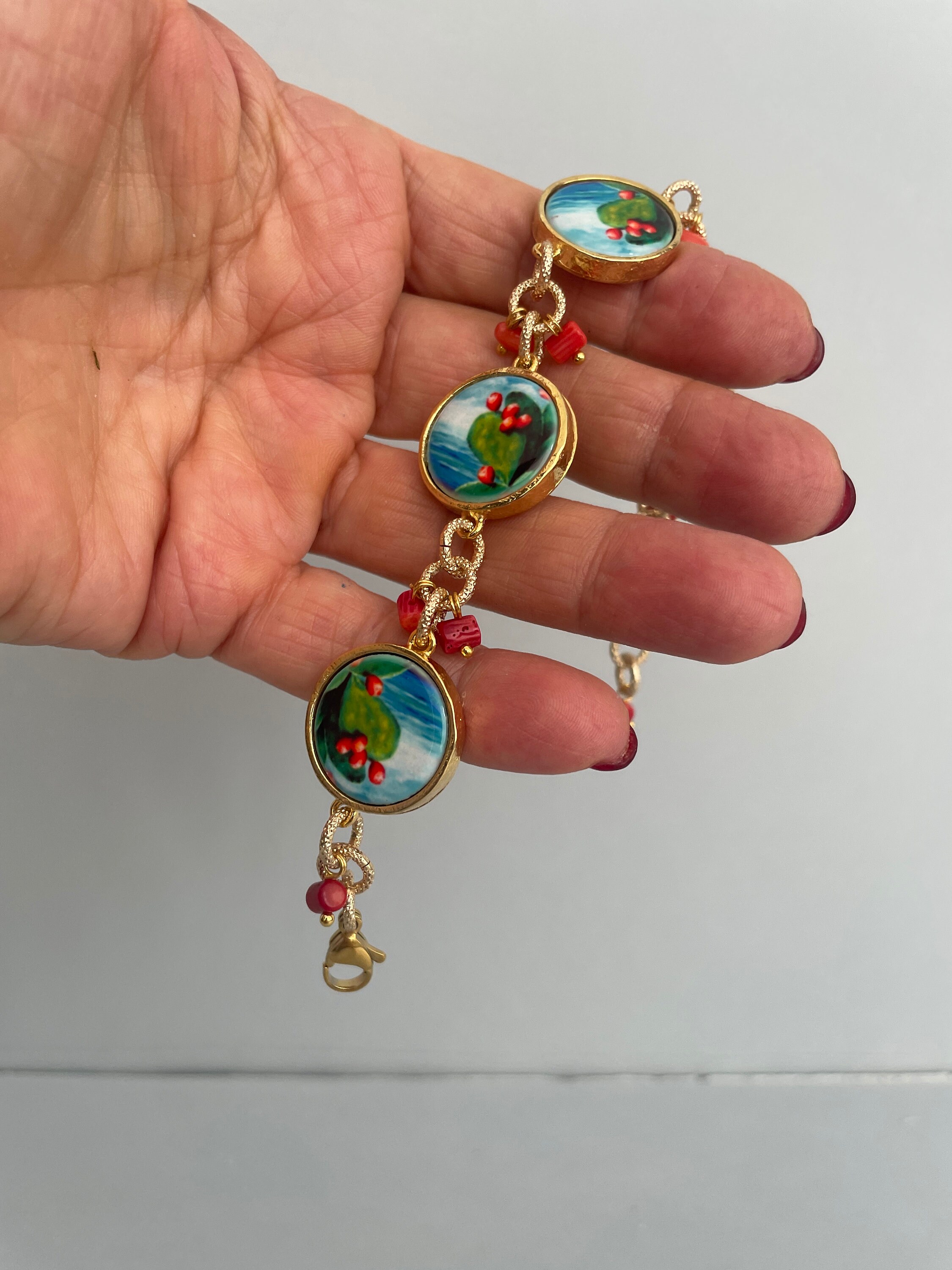 Bracciale dallo stile siciliano, realizzato con quattro mattonelle tonde di ceramica di Caltagirone.