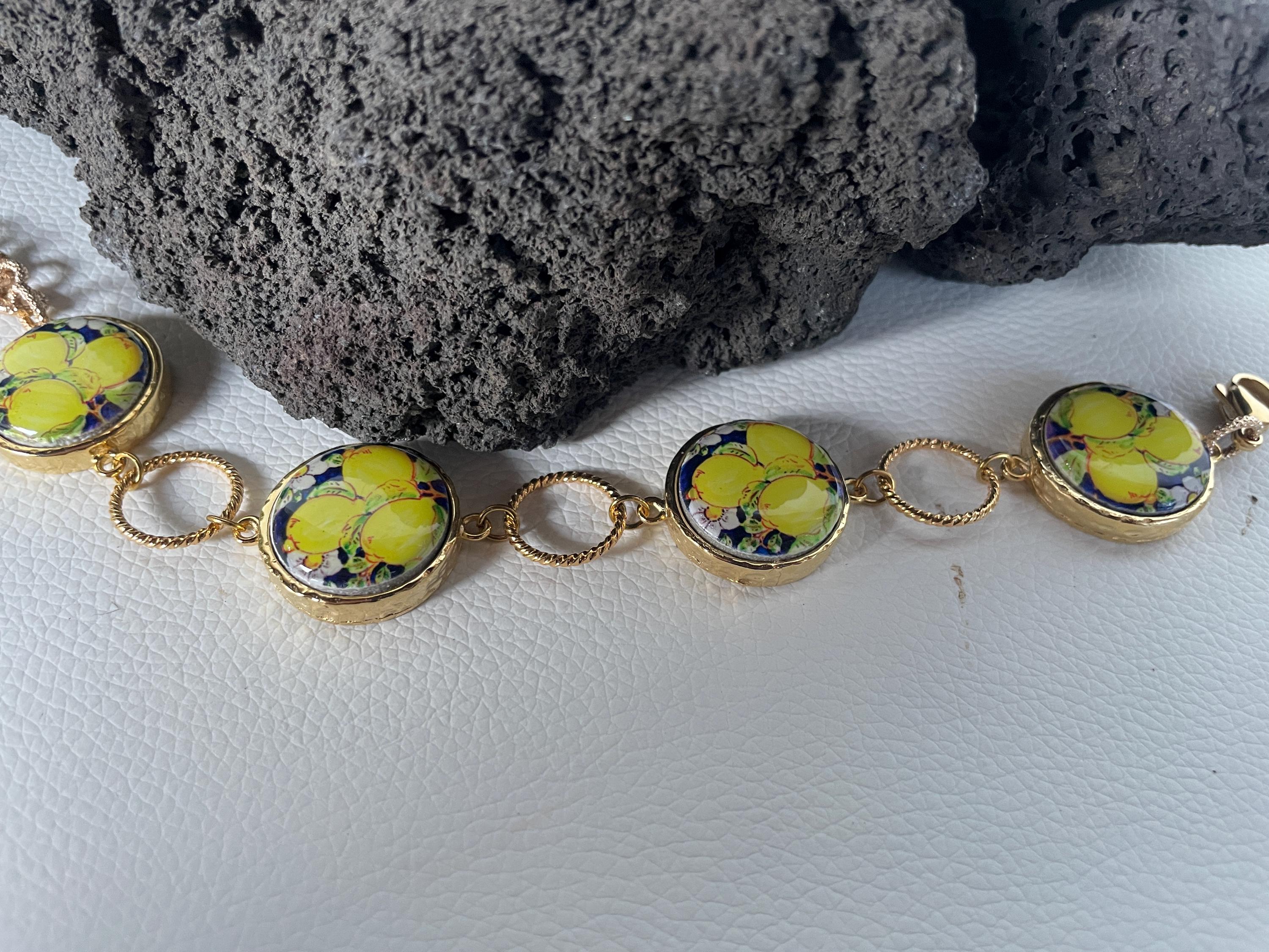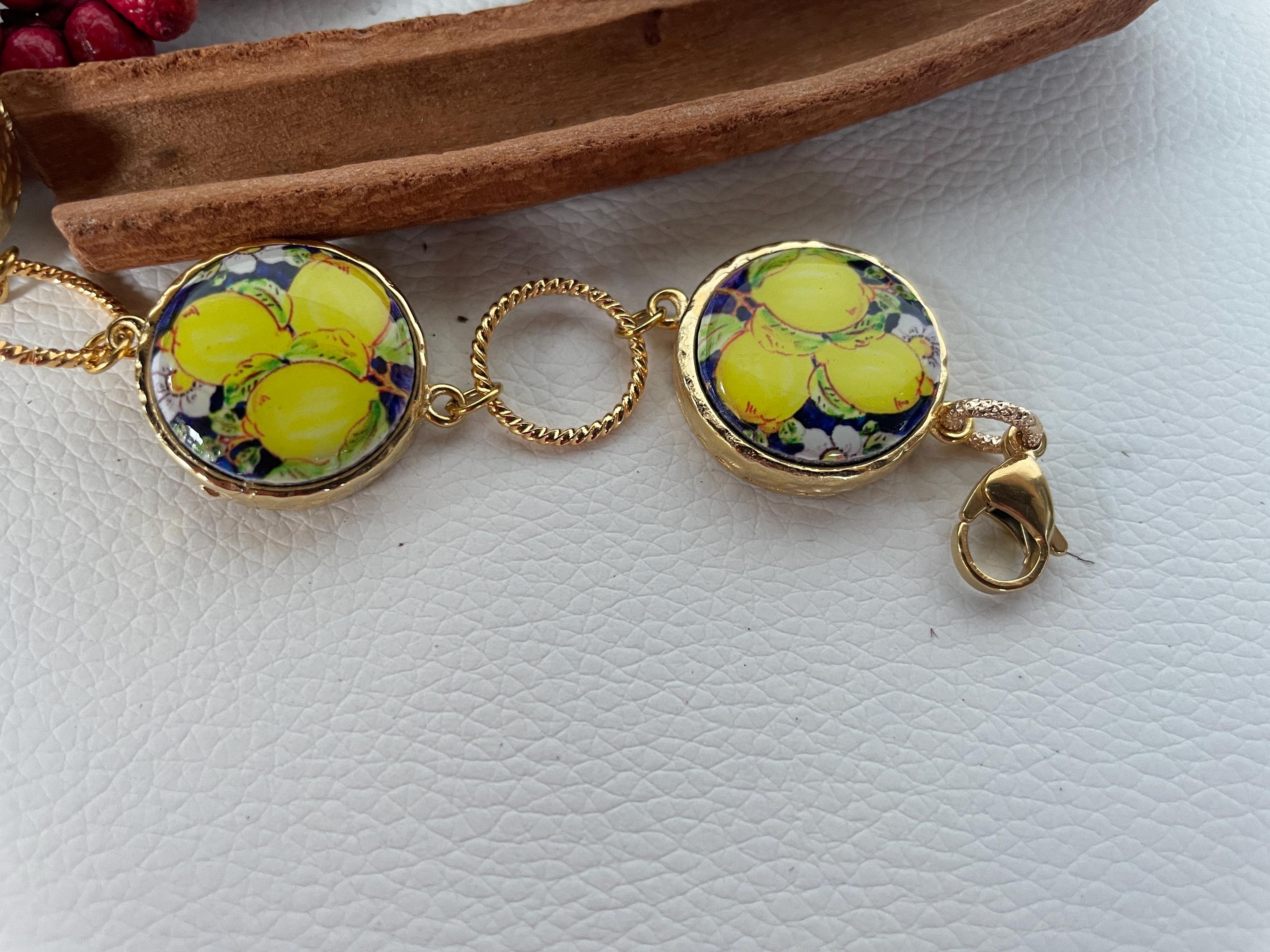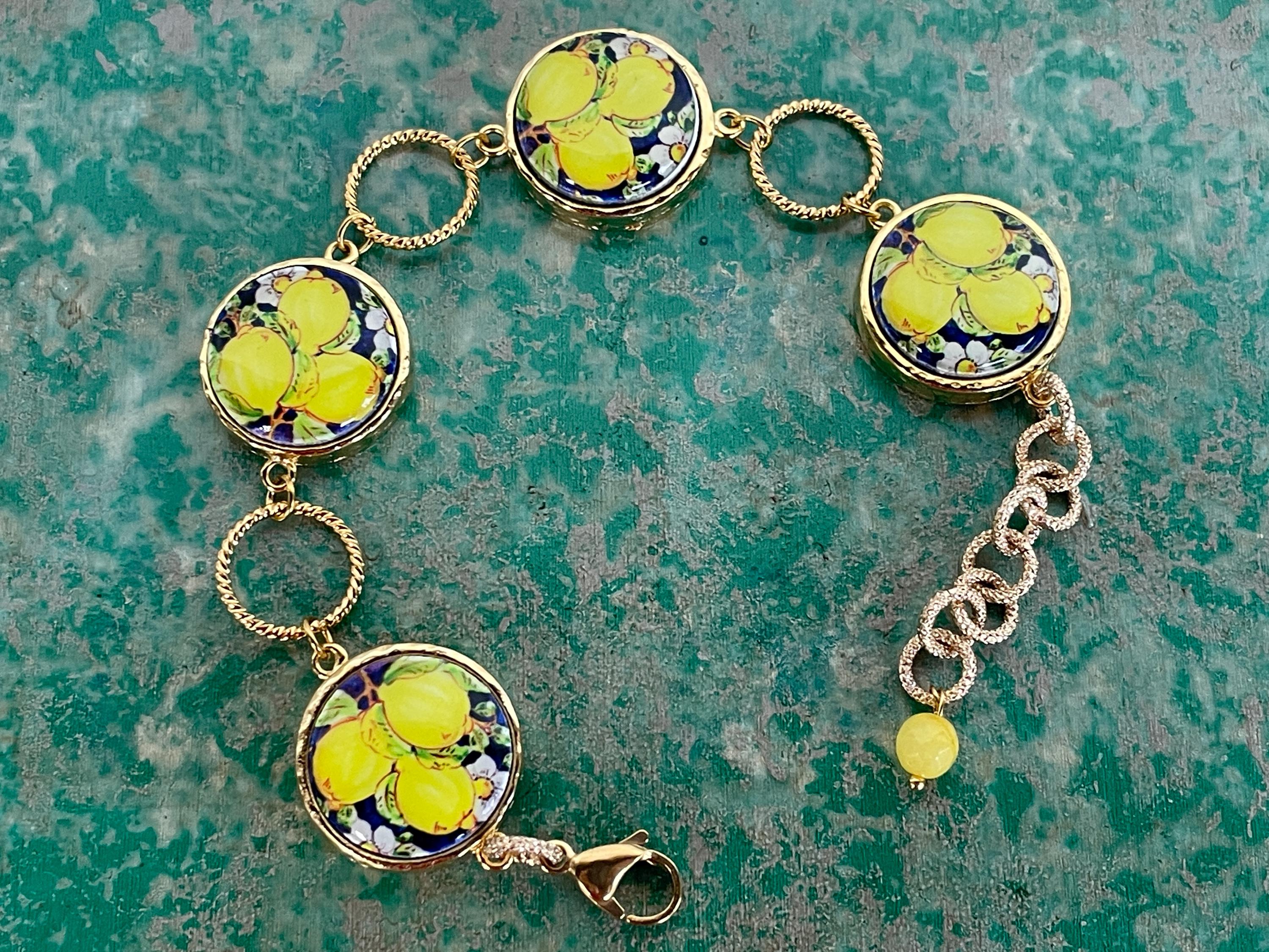 Bracciale dallo stile siciliano, realizzato con quattro mattonelle tonde di ceramica di Caltagirone.