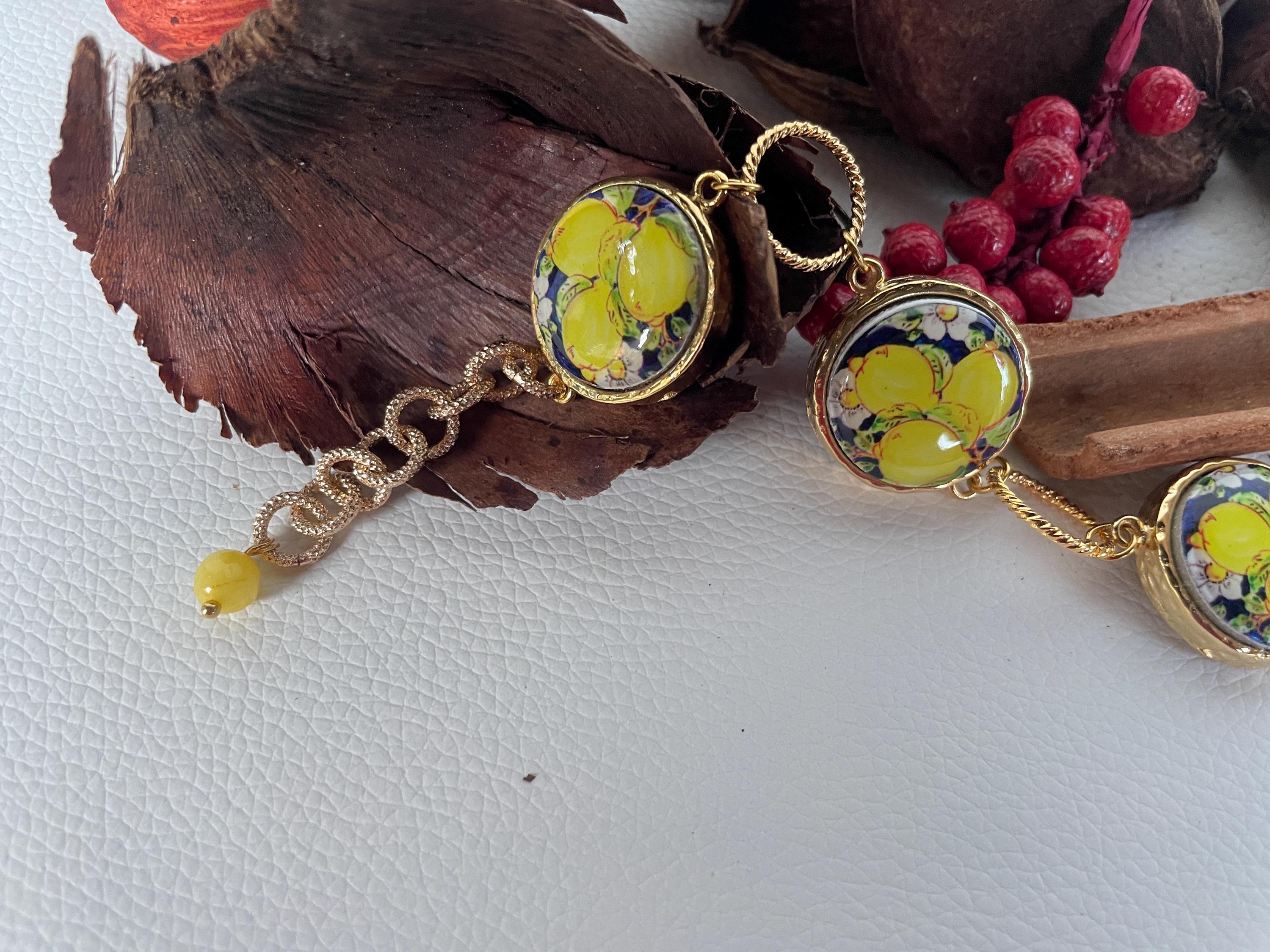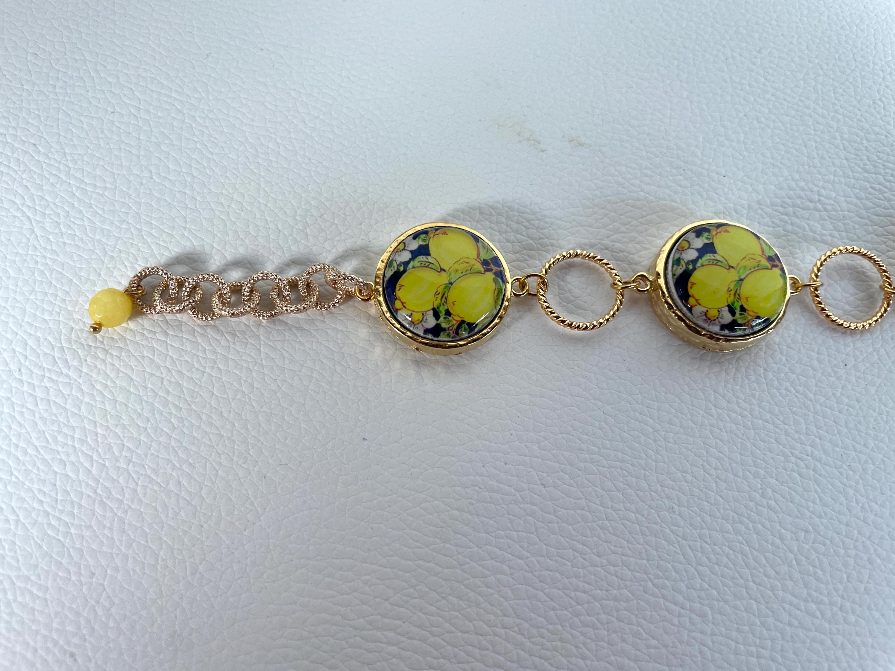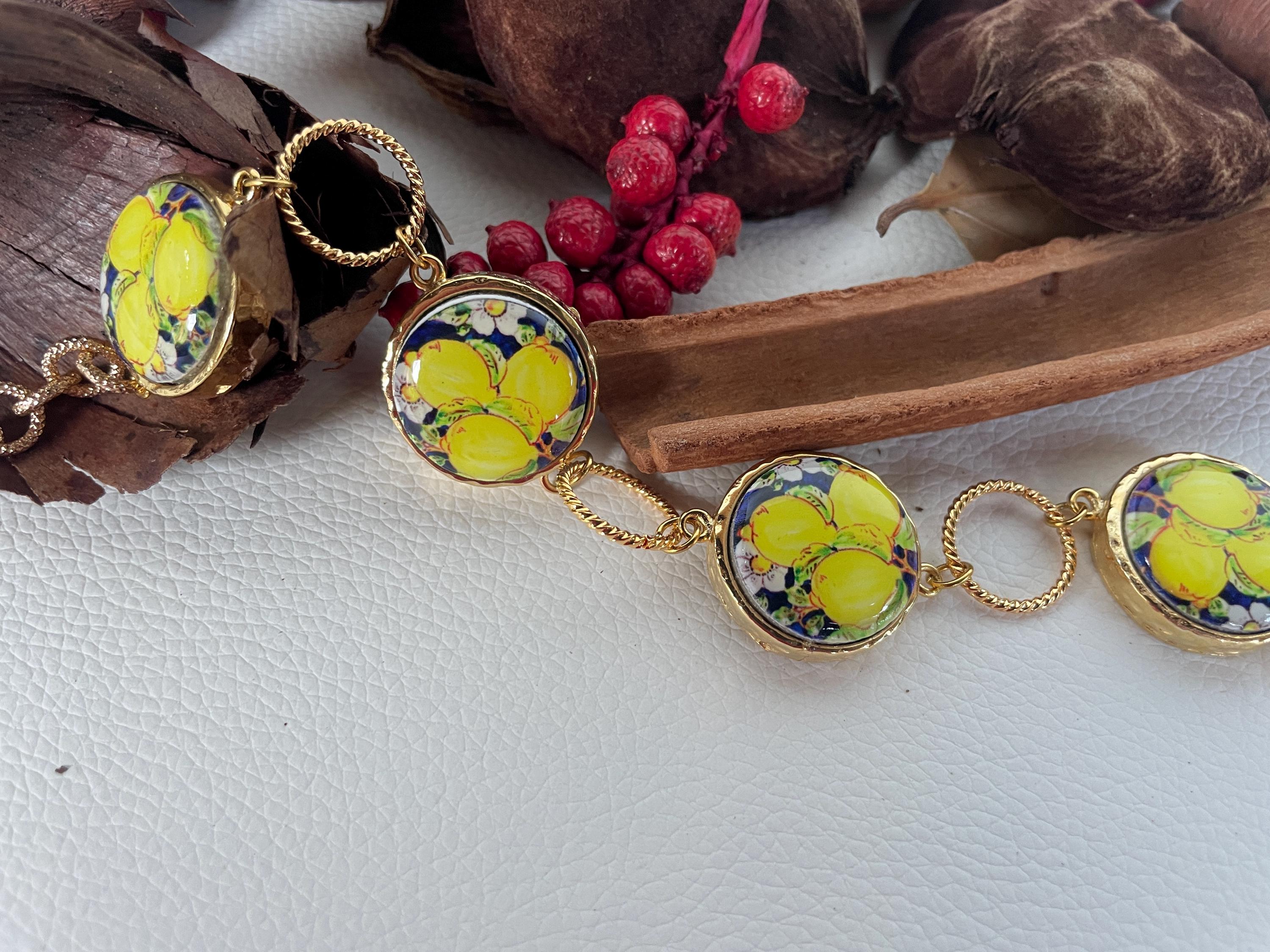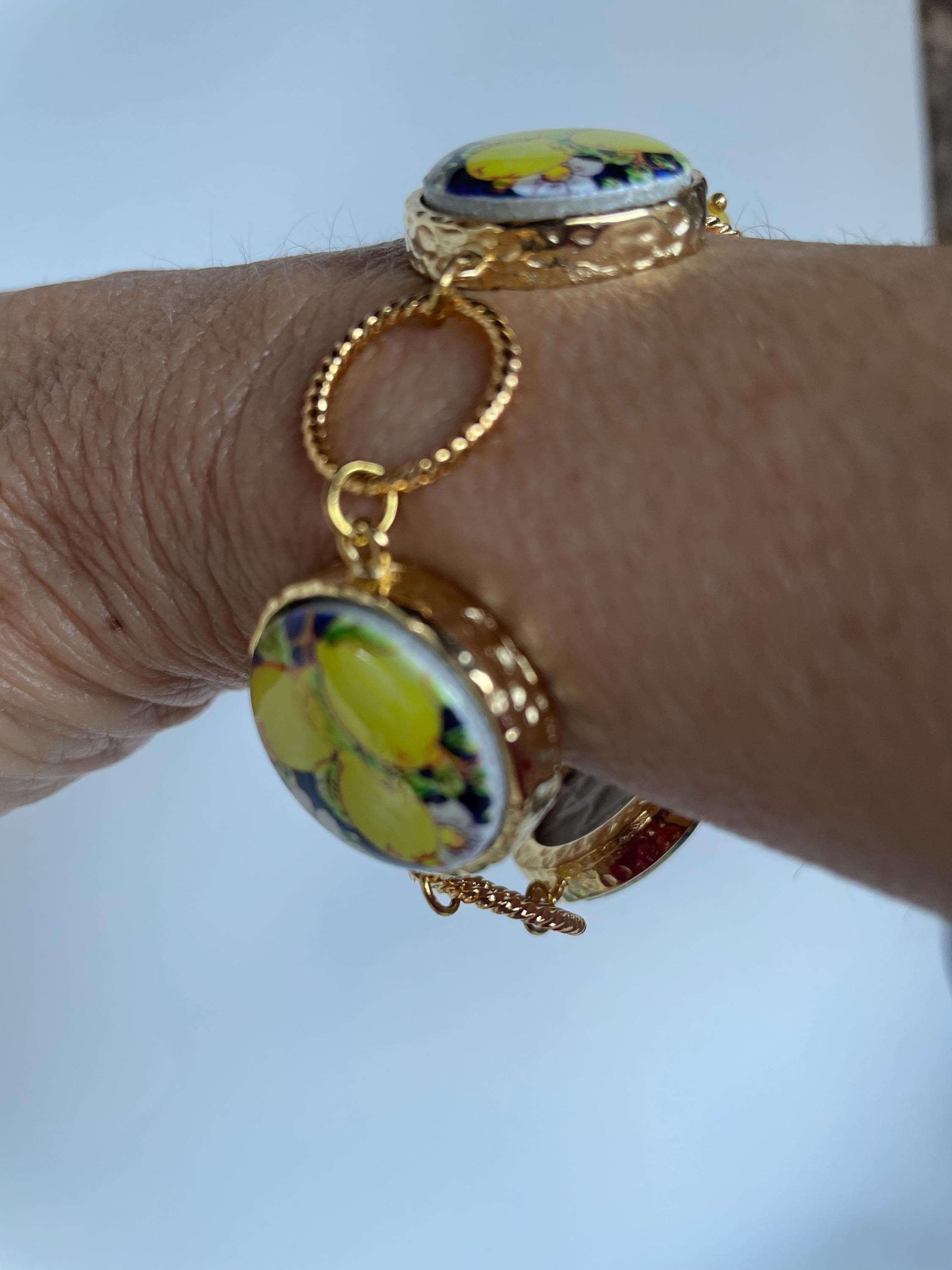 Bracciale dallo stile siciliano, realizzato con quattro mattonelle tonde di ceramica di Caltagirone.