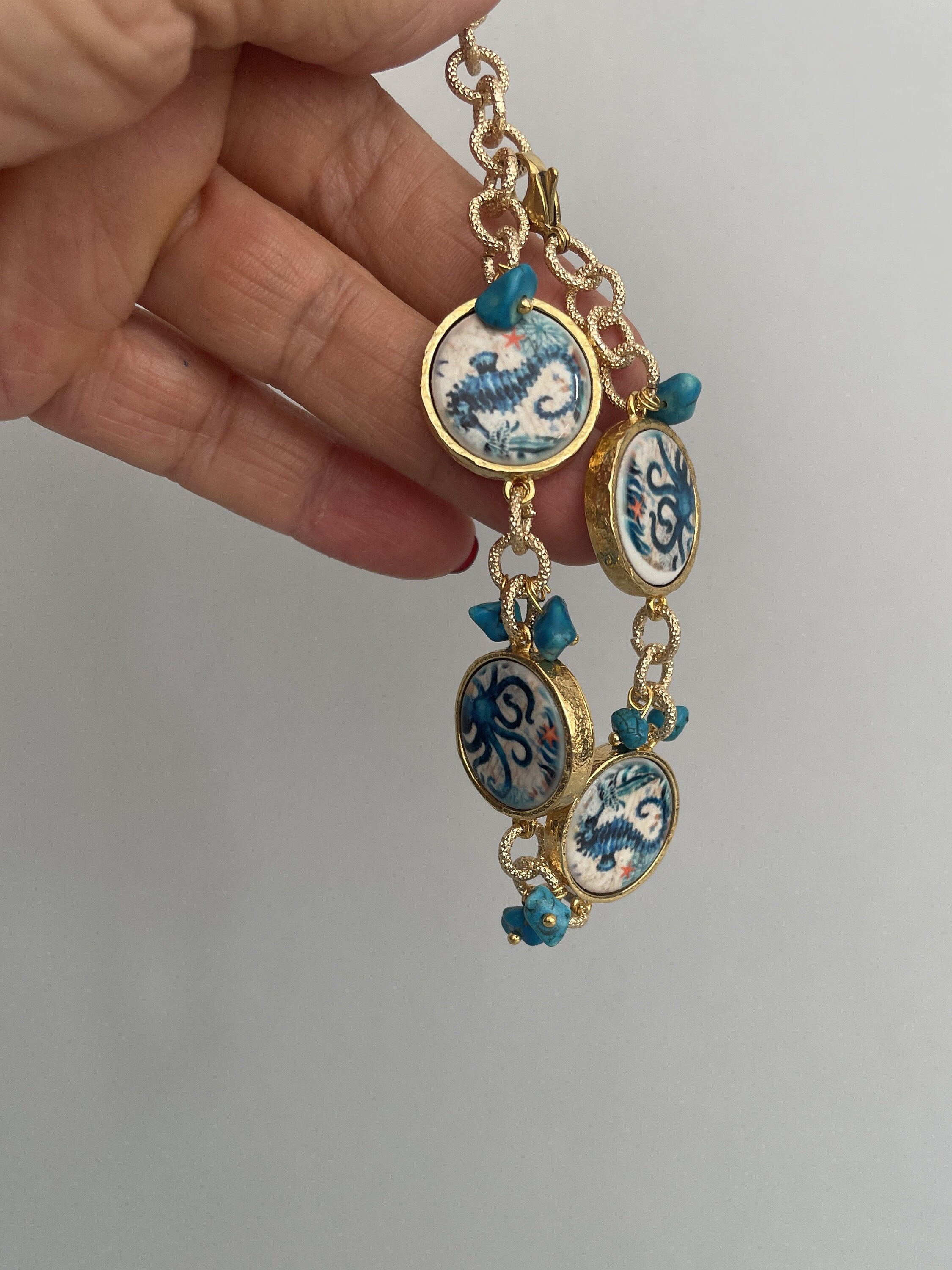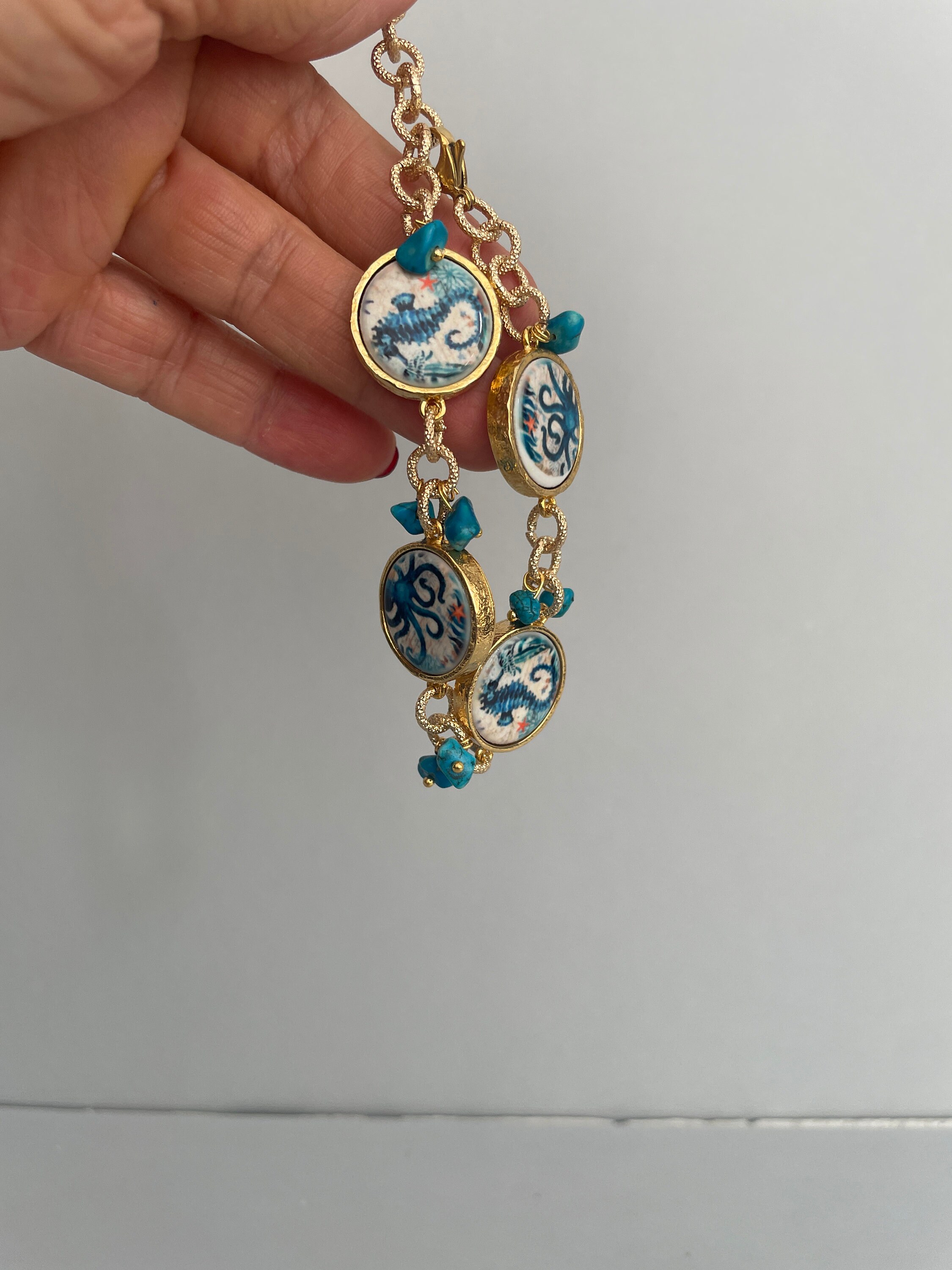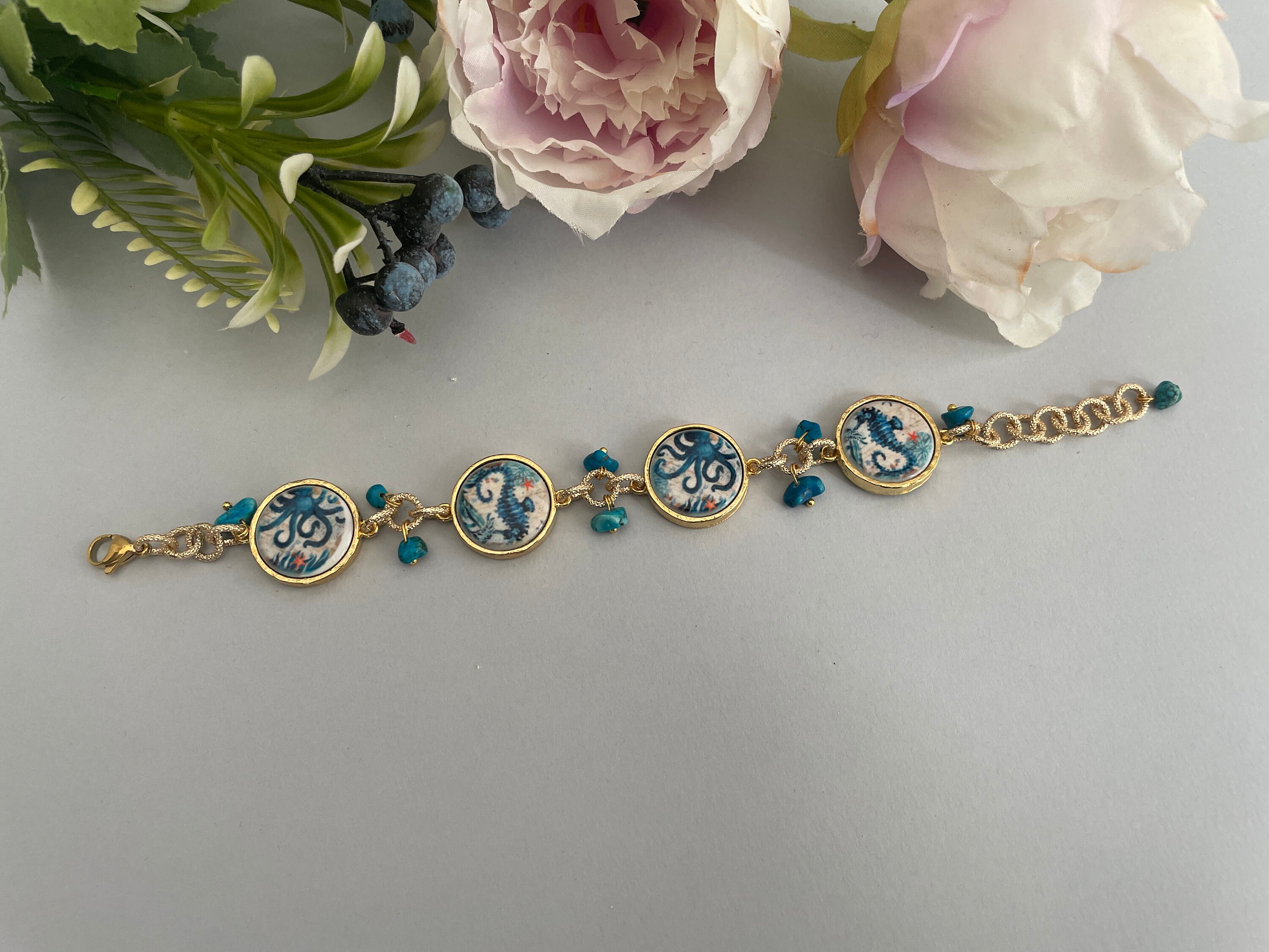 Bracciale dallo stile siciliano, realizzato con quattro mattonelle tonde di ceramica di Caltagirone.