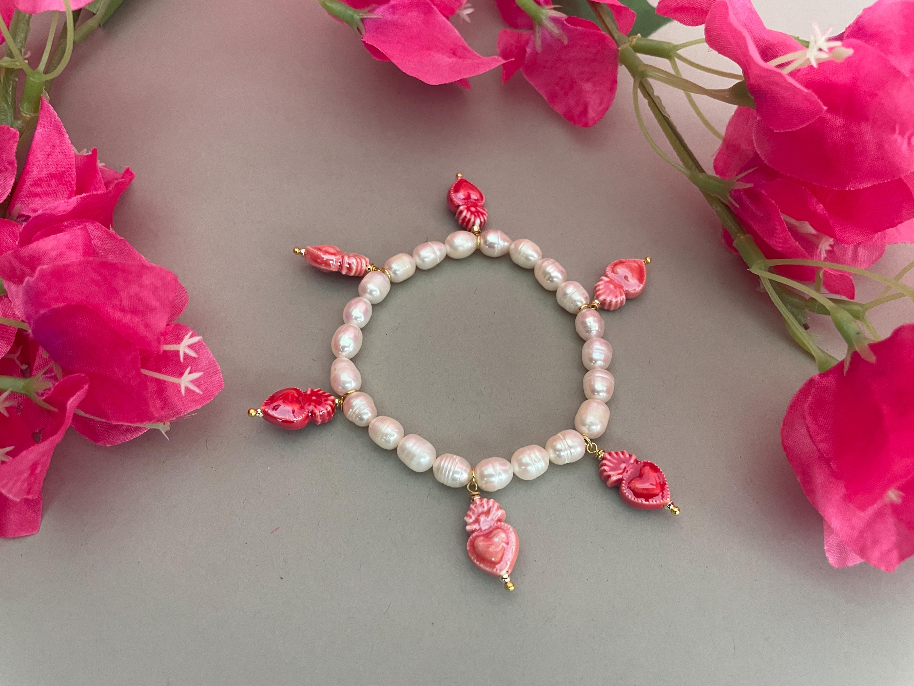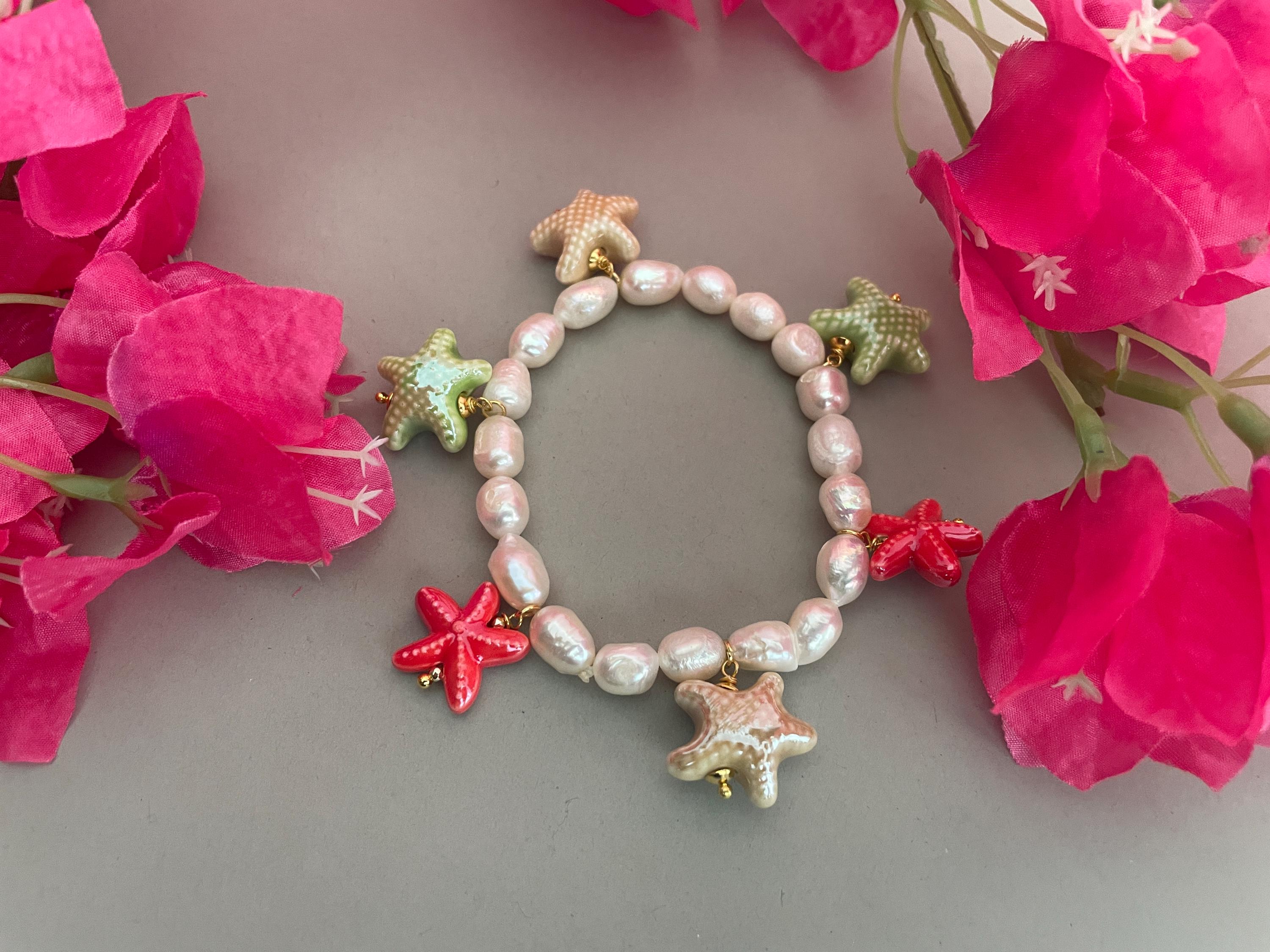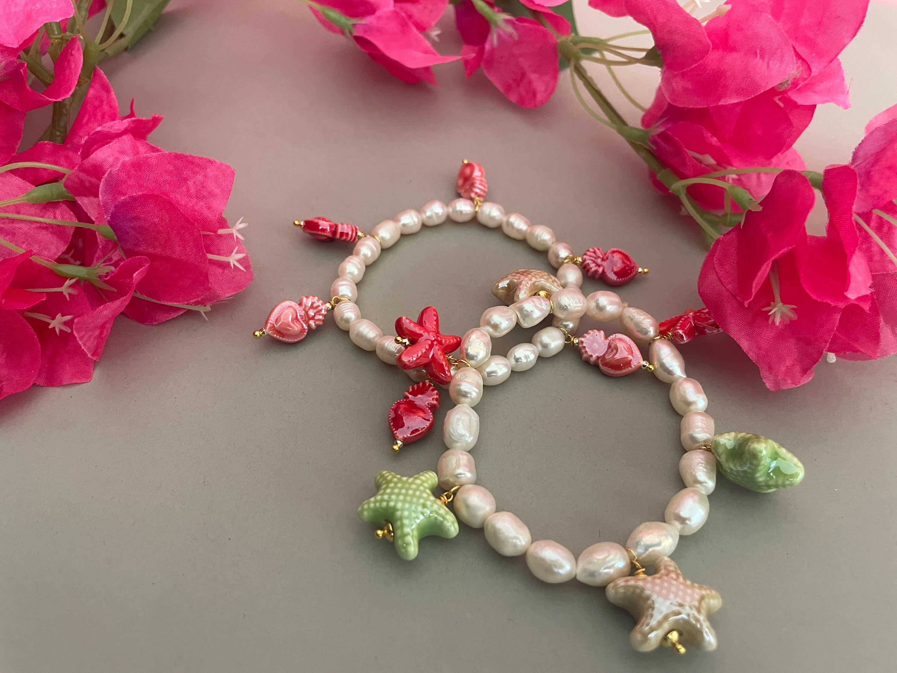 E’ arricchito da 6 charms assortiti in ceramica di Caltagirone, Cuori sacri o Stelle, dipinti a mano.