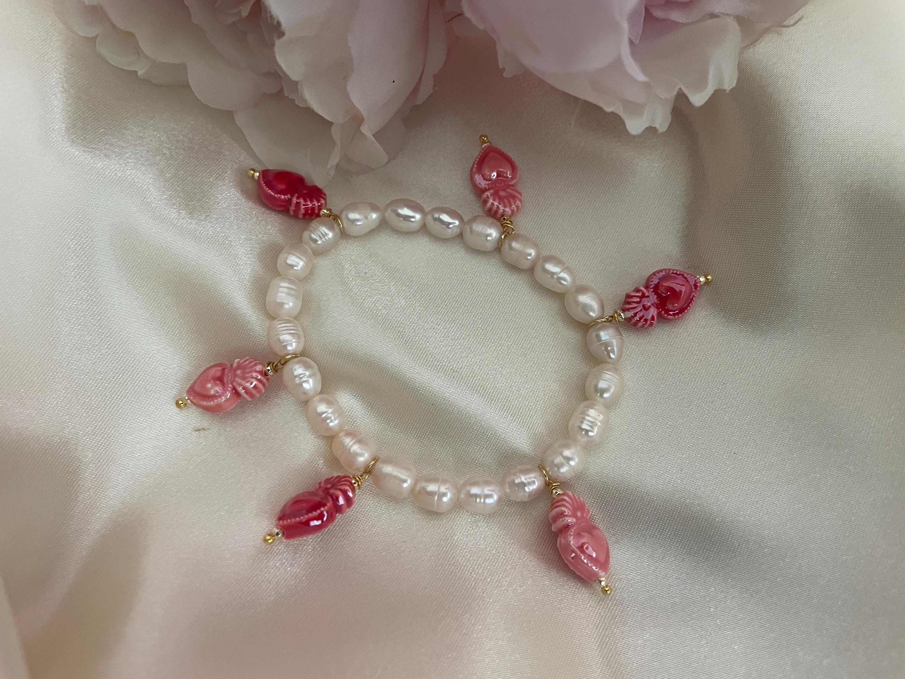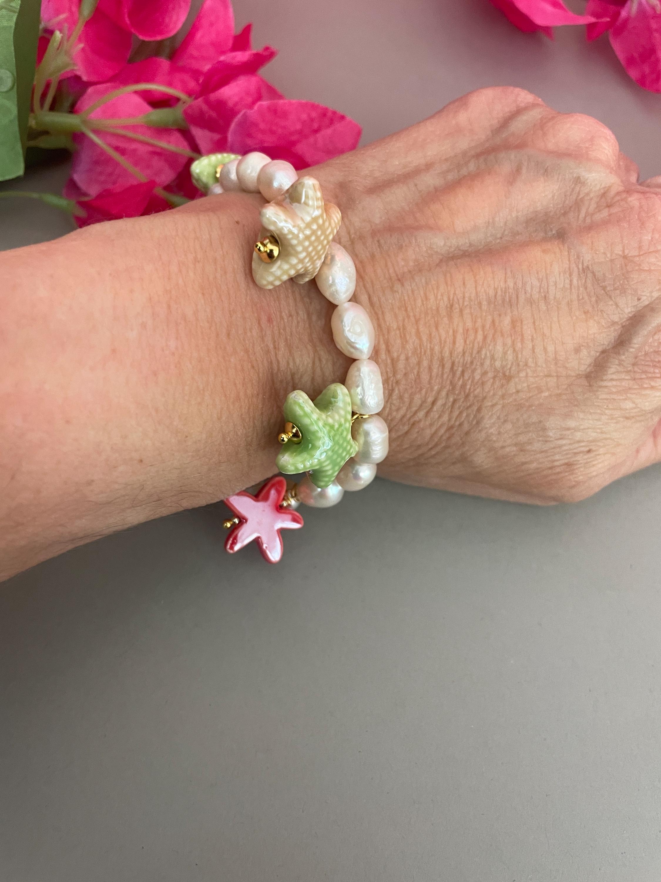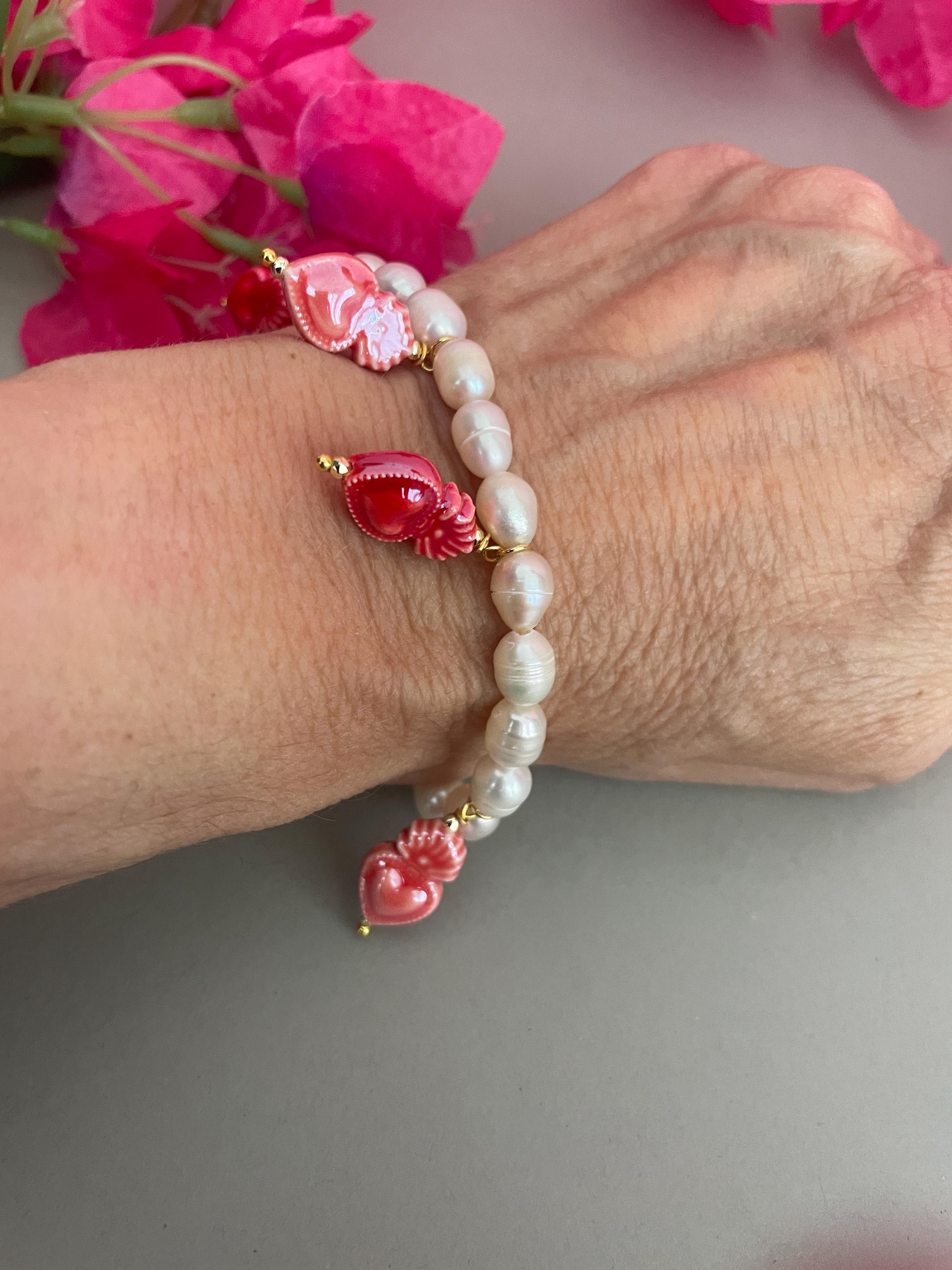 E’ arricchito da 6 charms assortiti in ceramica di Caltagirone, Cuori sacri o Stelle, dipinti a mano.