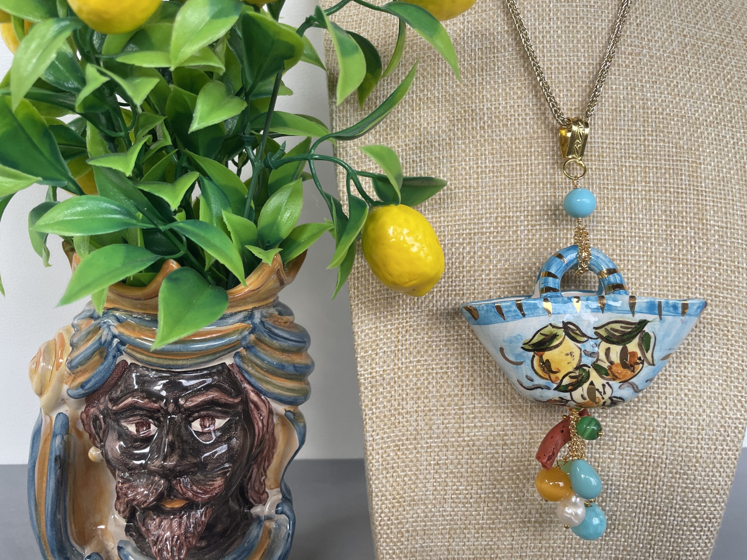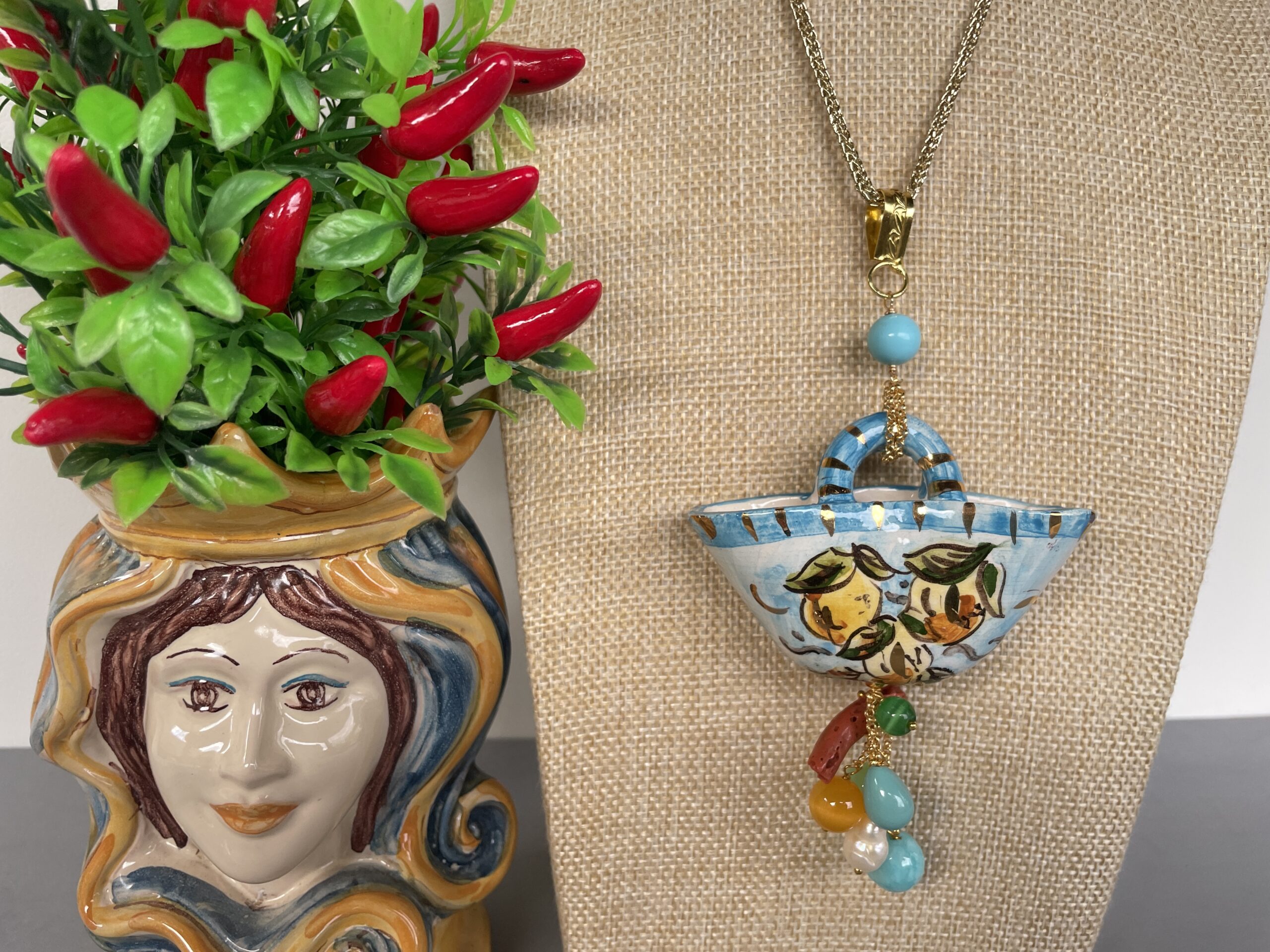 Ciondolo siciliano con borsetta Caltagirone dallo stile unico!