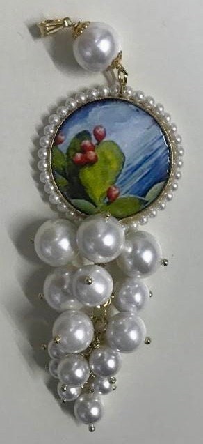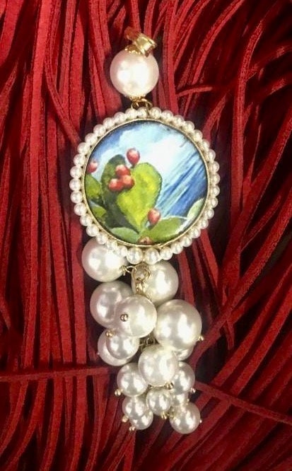 Composto da mattonella tonda di ceramica di Caltagirone, stampata in superficie, raffigurante Fico d’India, tipico simbolo siciliano!