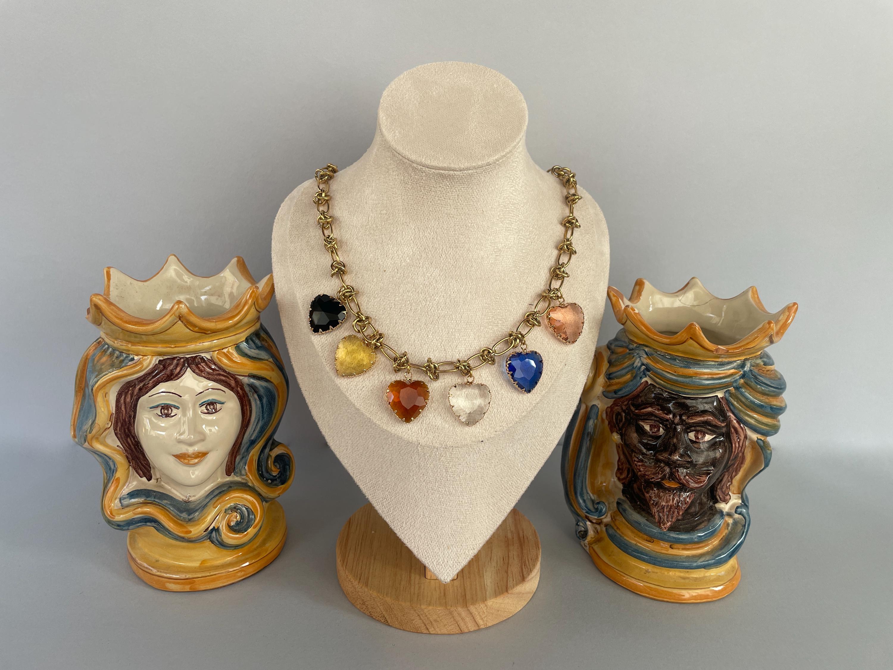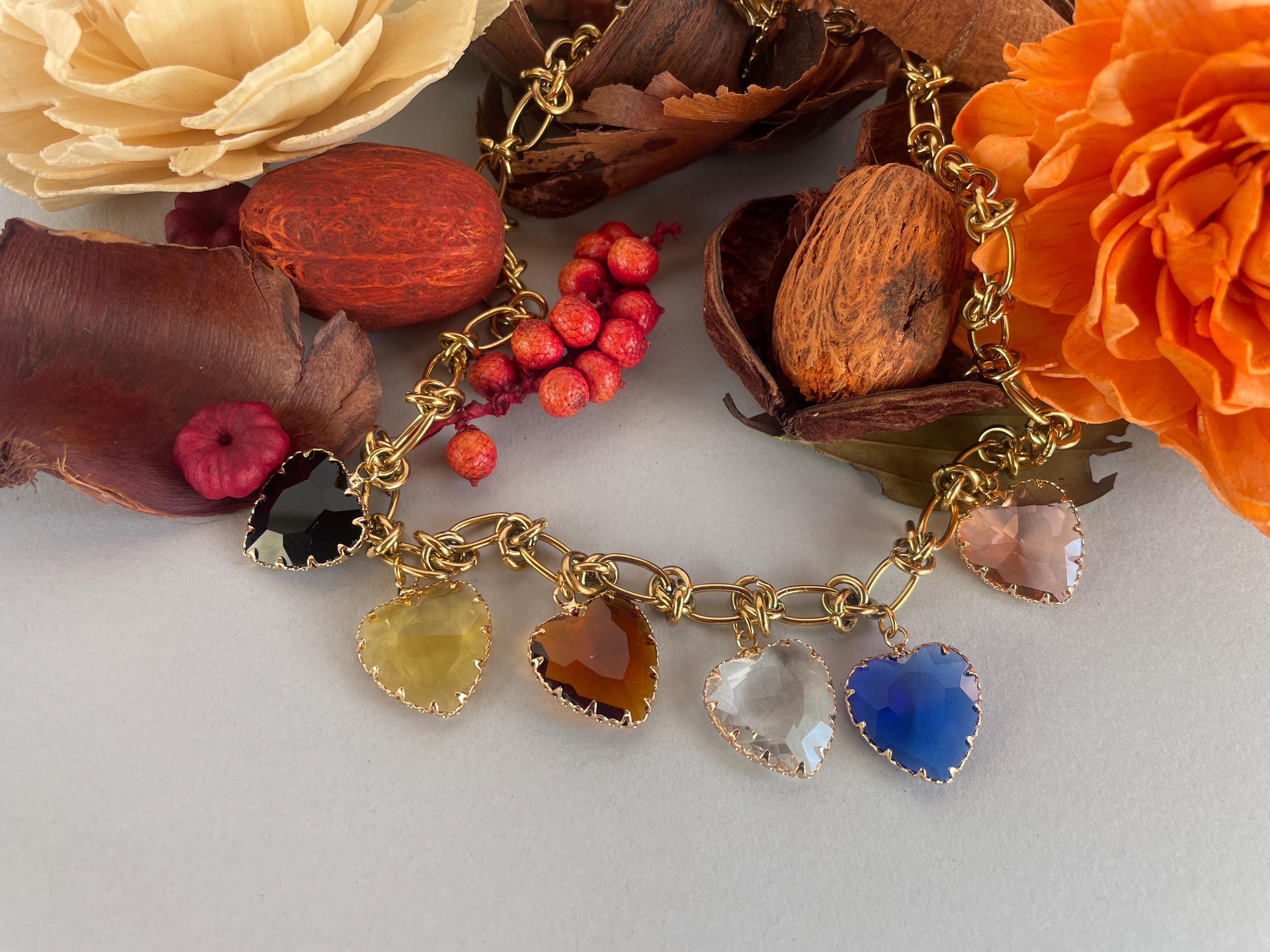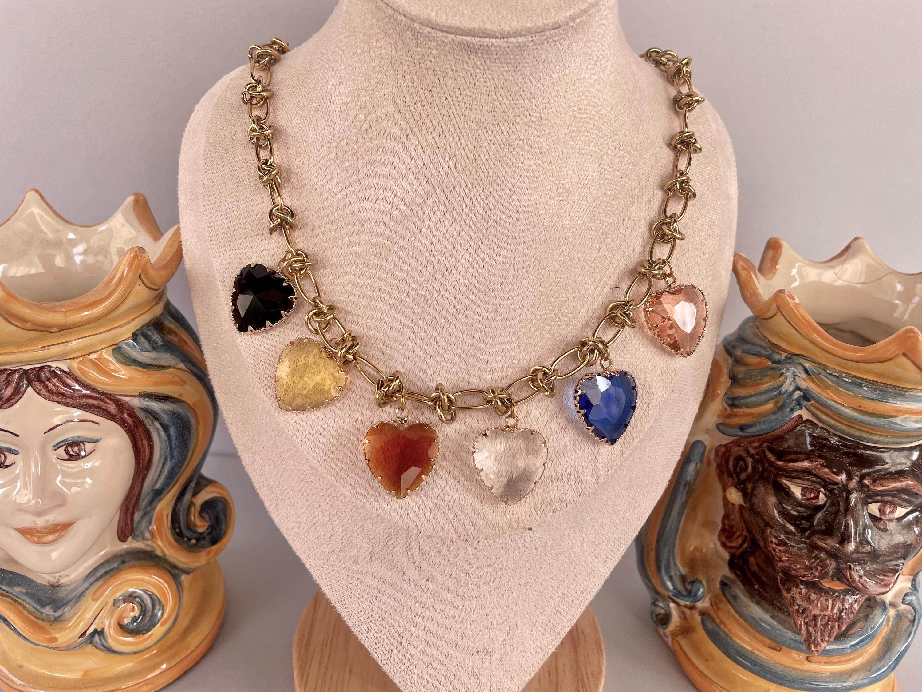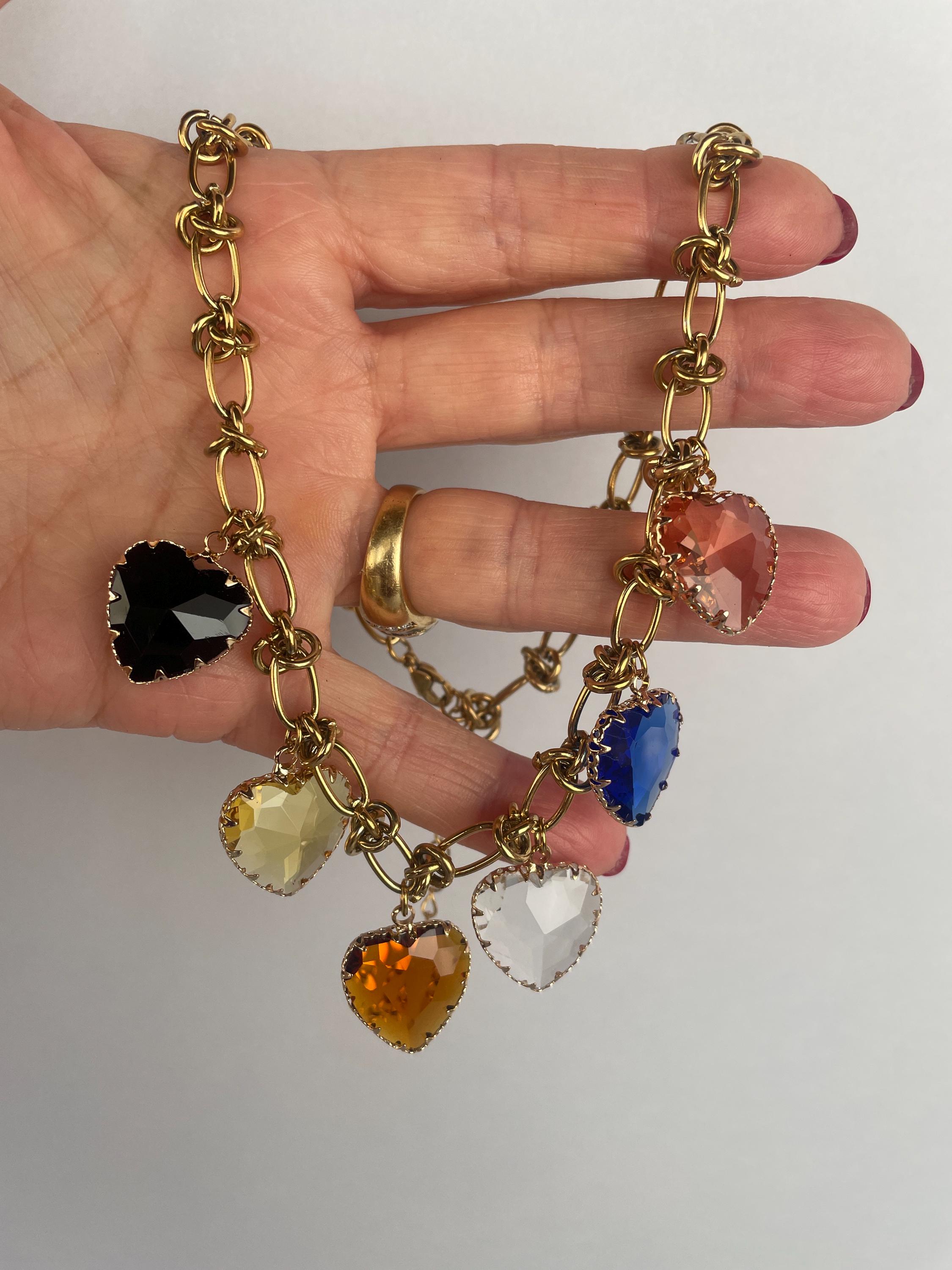 Dalla catena pendono 6 deliziosi cuori di cristallo di colori diversi fra loro che rendono il girocollo allegro e vivace.