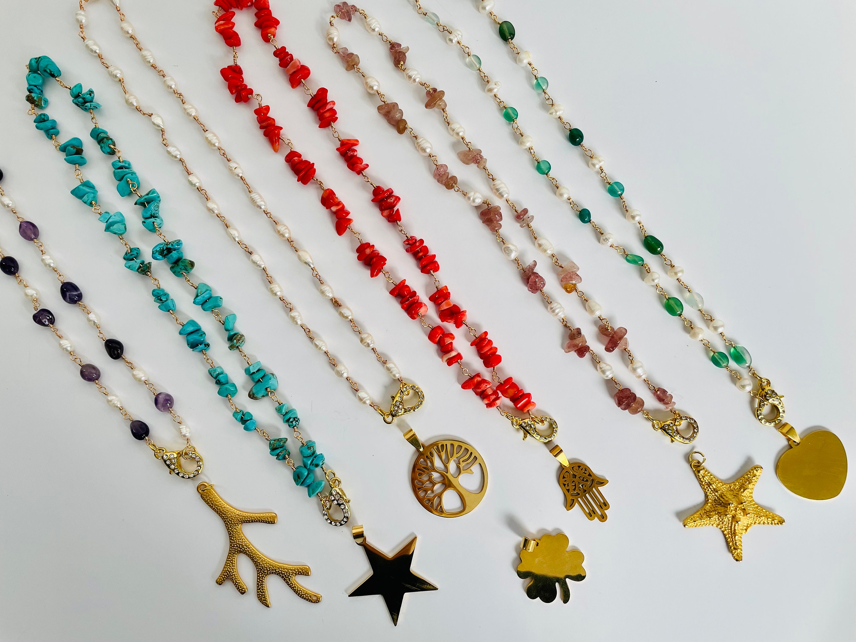 Vi sono anche altri tipi di catena e pietre che potrete scegliere nei link.