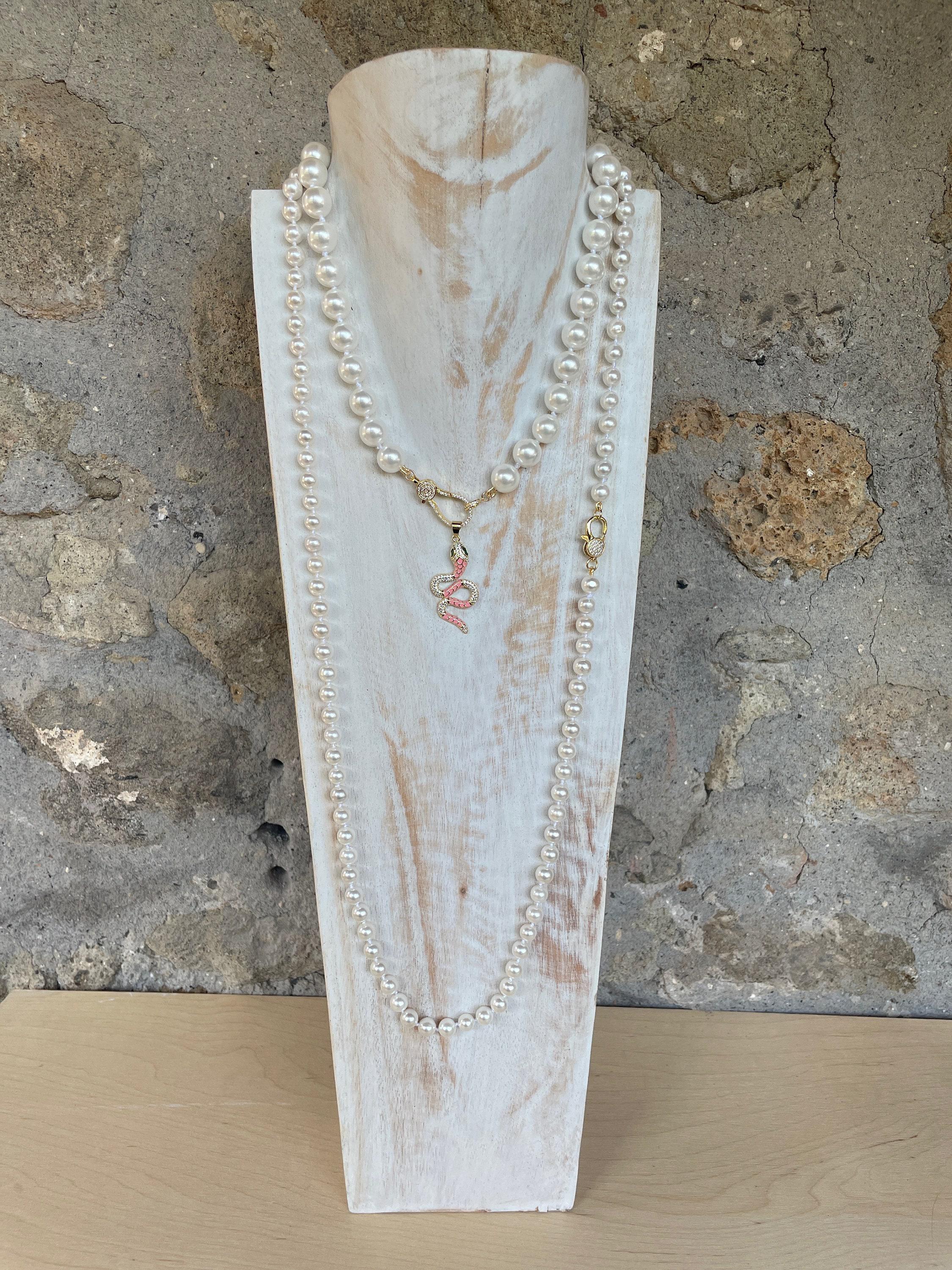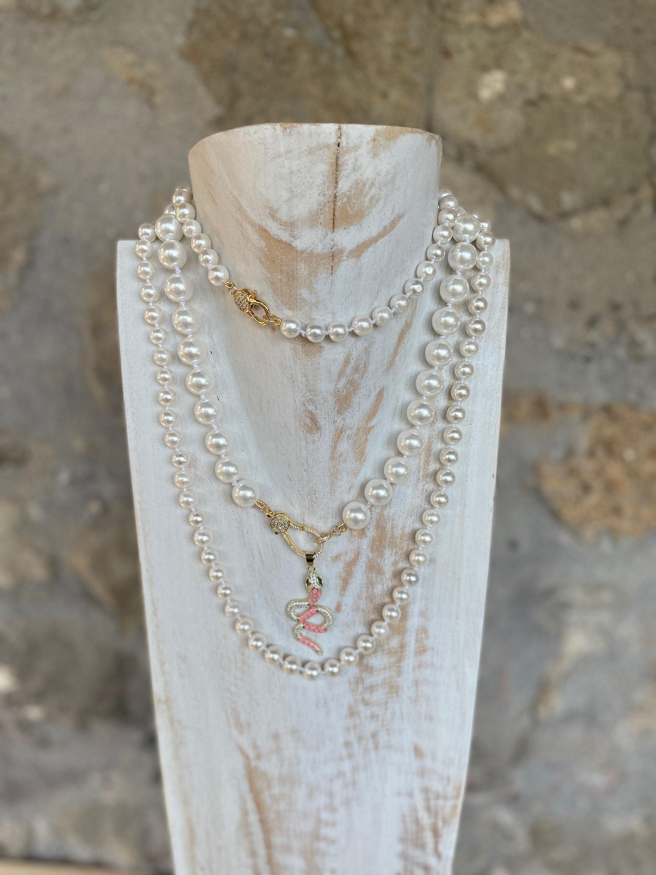 Lo stesso girocollo è disponibile con perle di Maiorca più piccole (8 mm) non annodate a mano che potrete trovare in altre inserzioni.