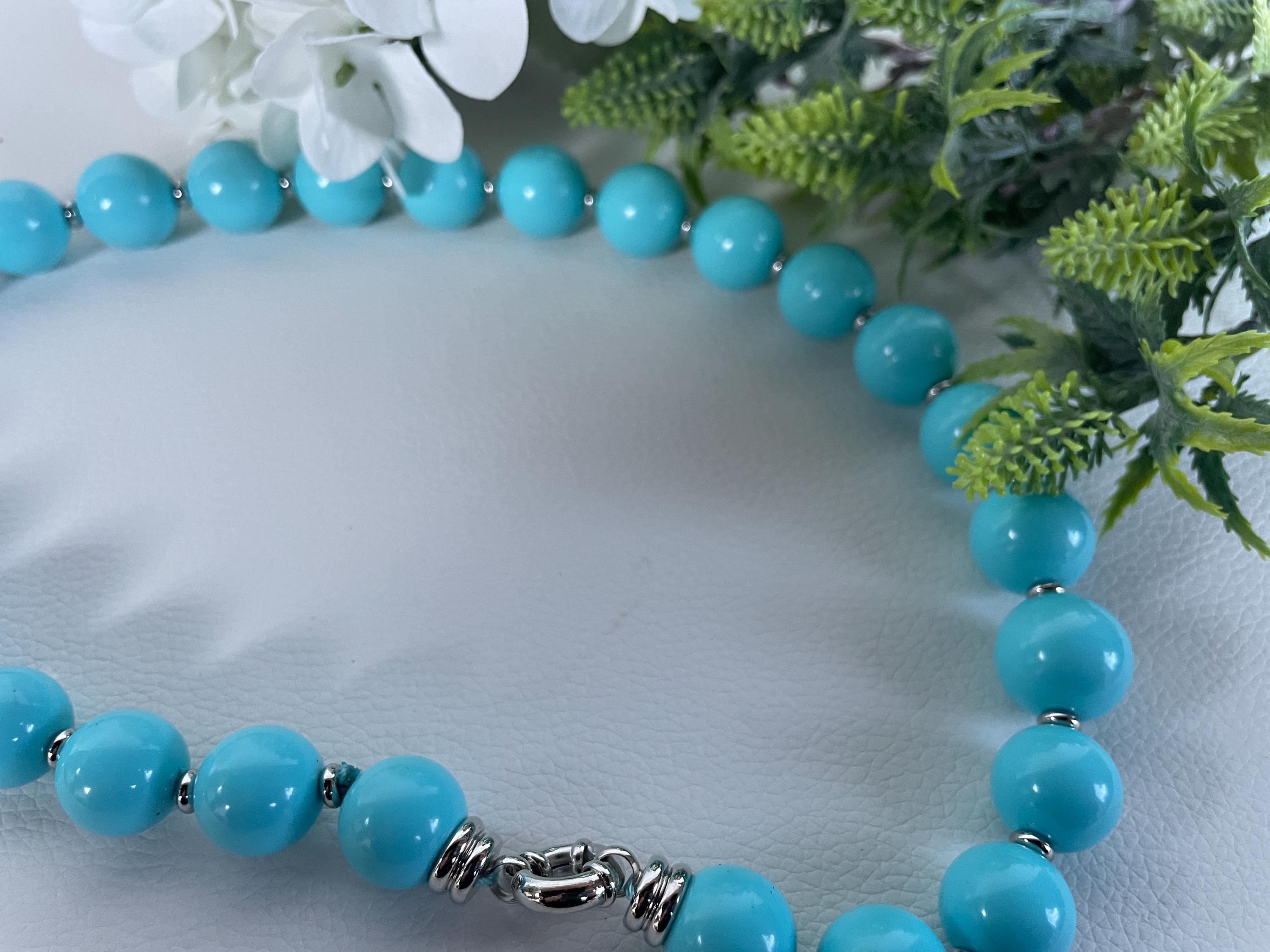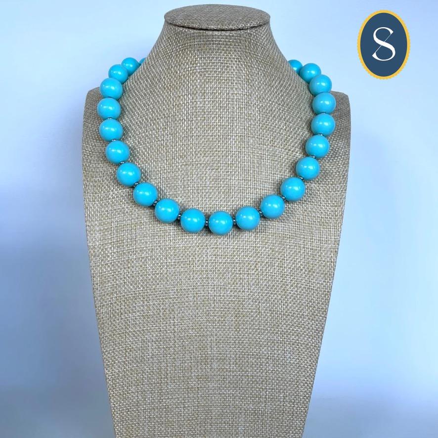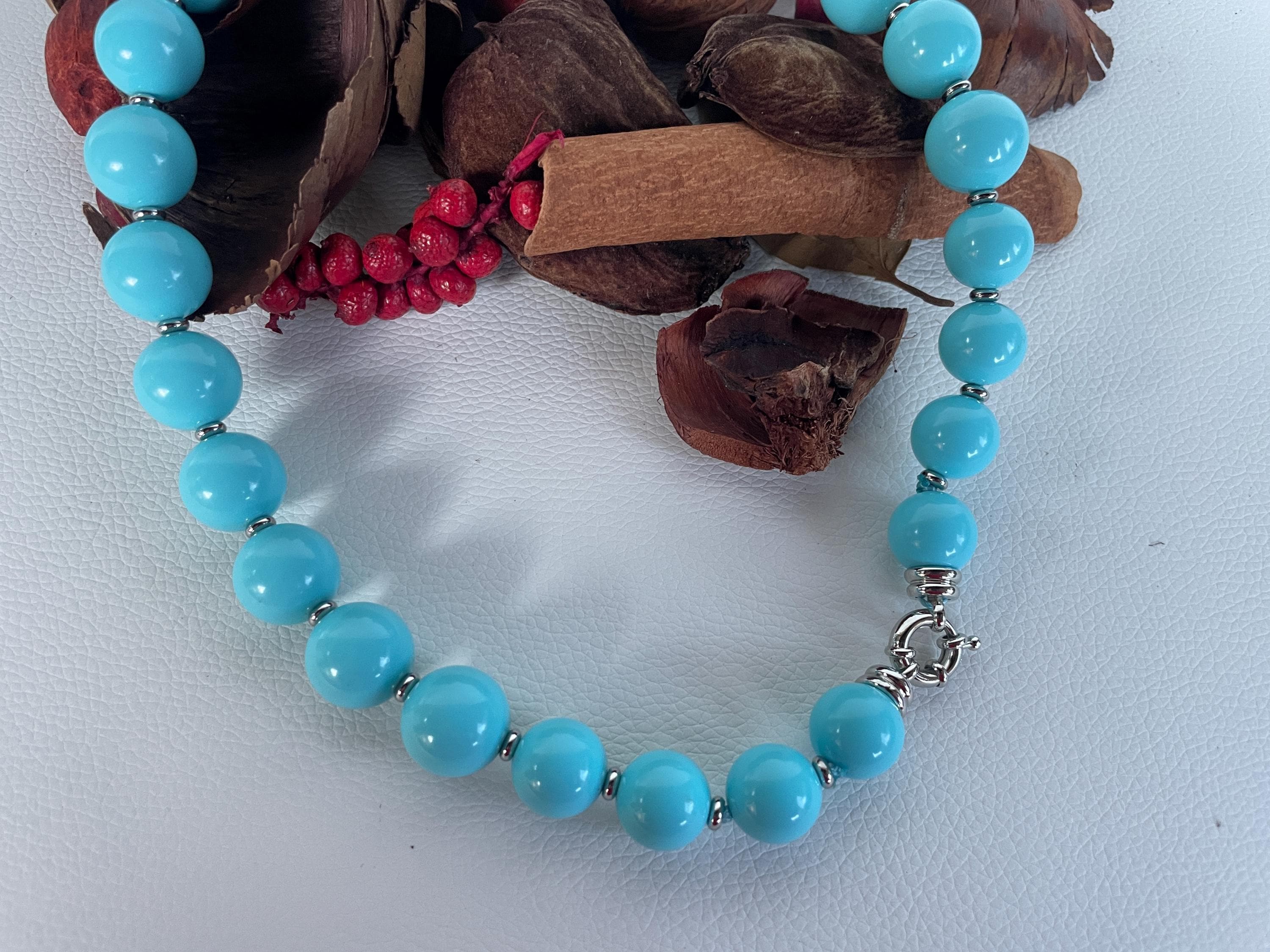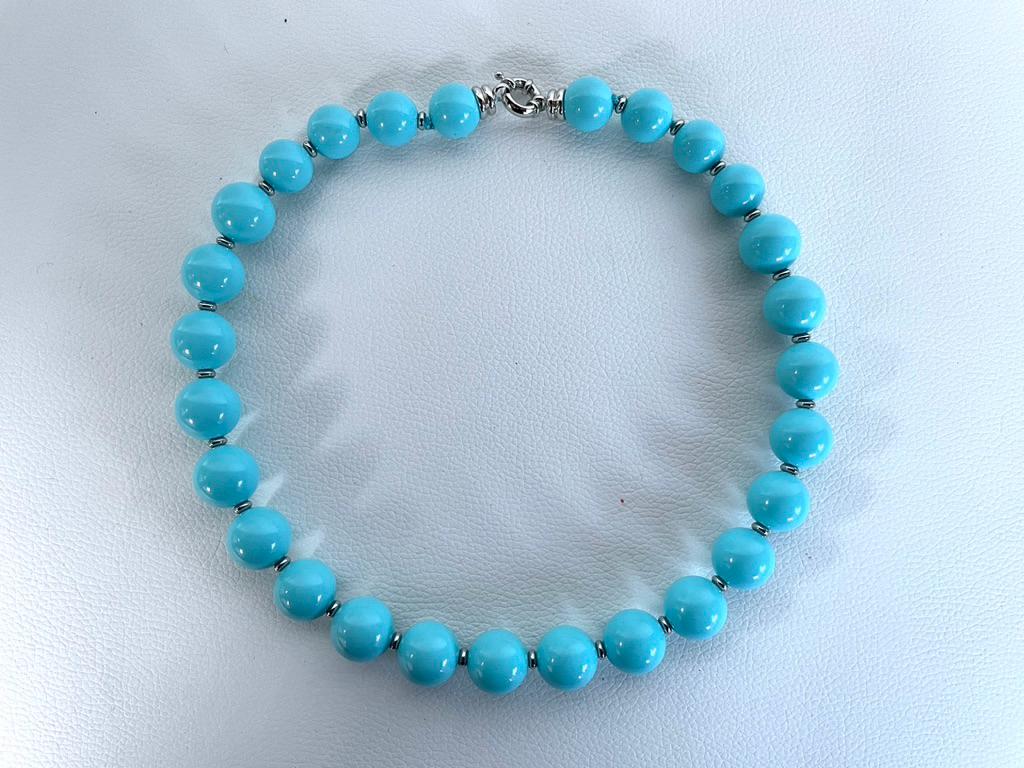 Collana girocollo elegante e intramontabile con filo di grandi perle di pasta di Turchese (mm 14).