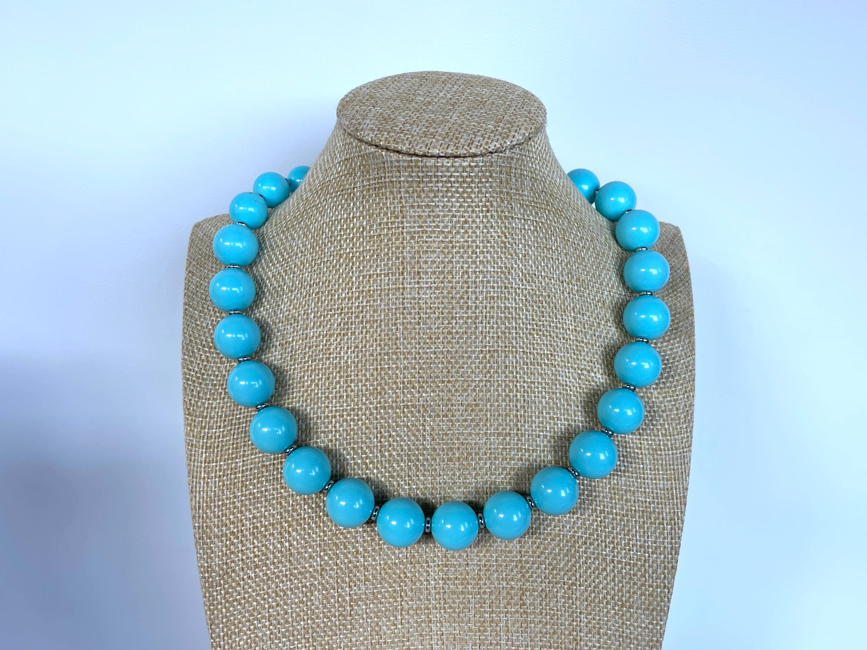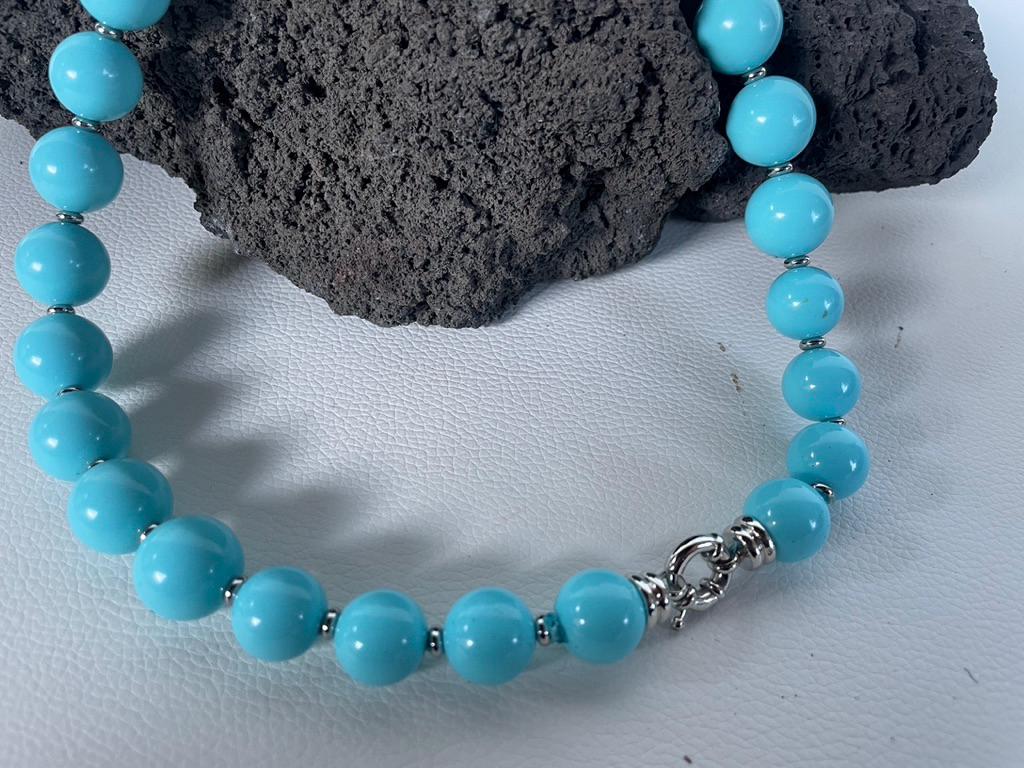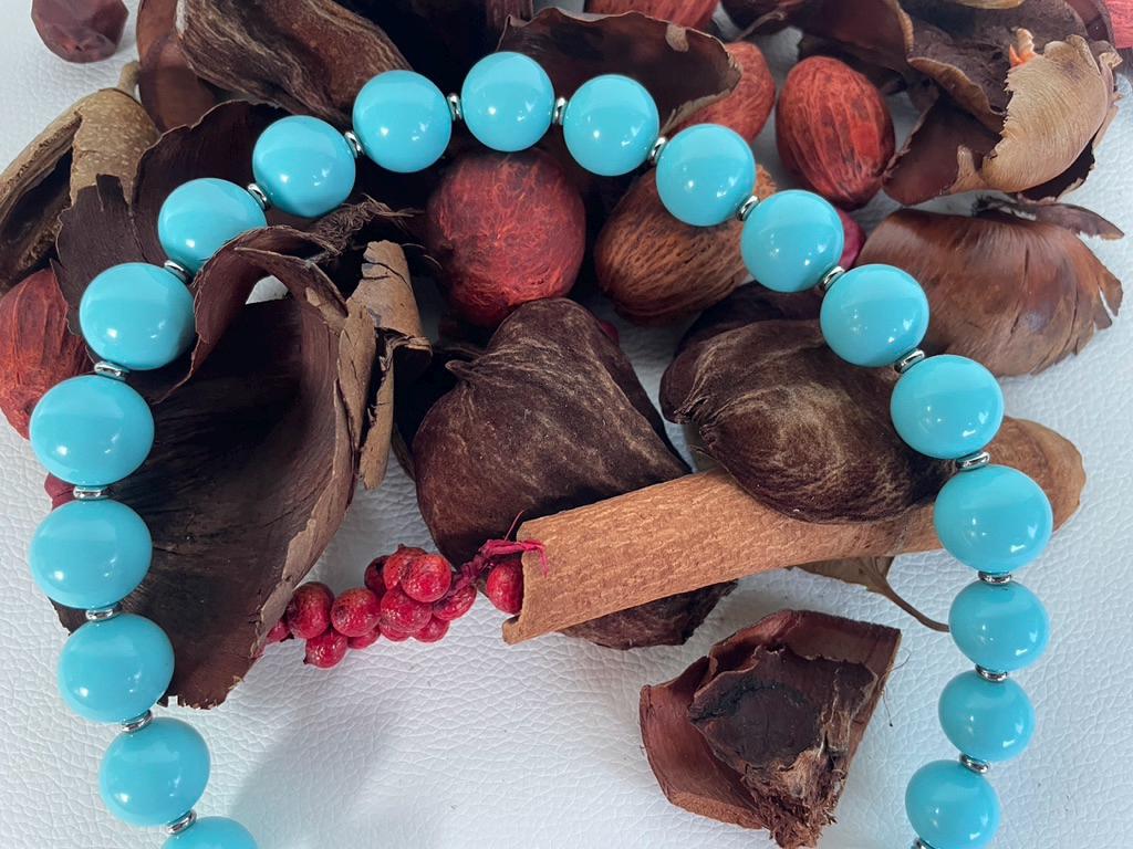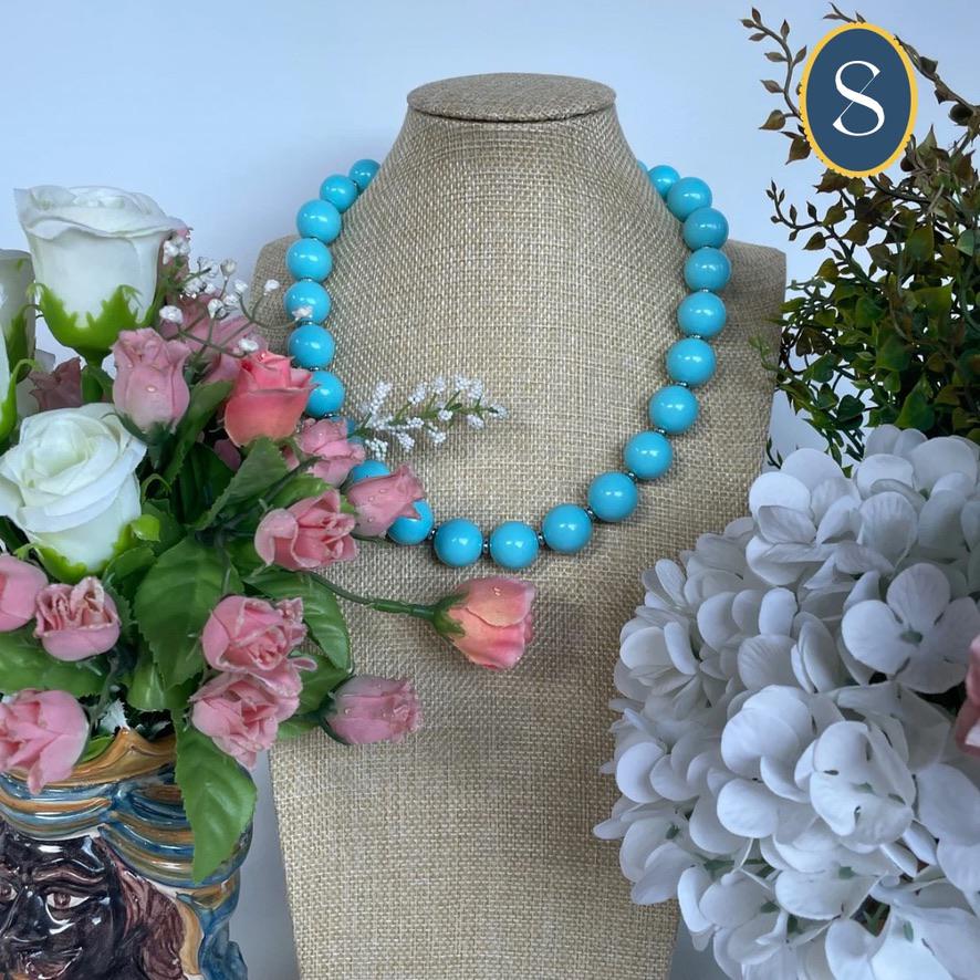 Collana girocollo elegante e intramontabile con filo di grandi perle di pasta di Turchese (mm 14).