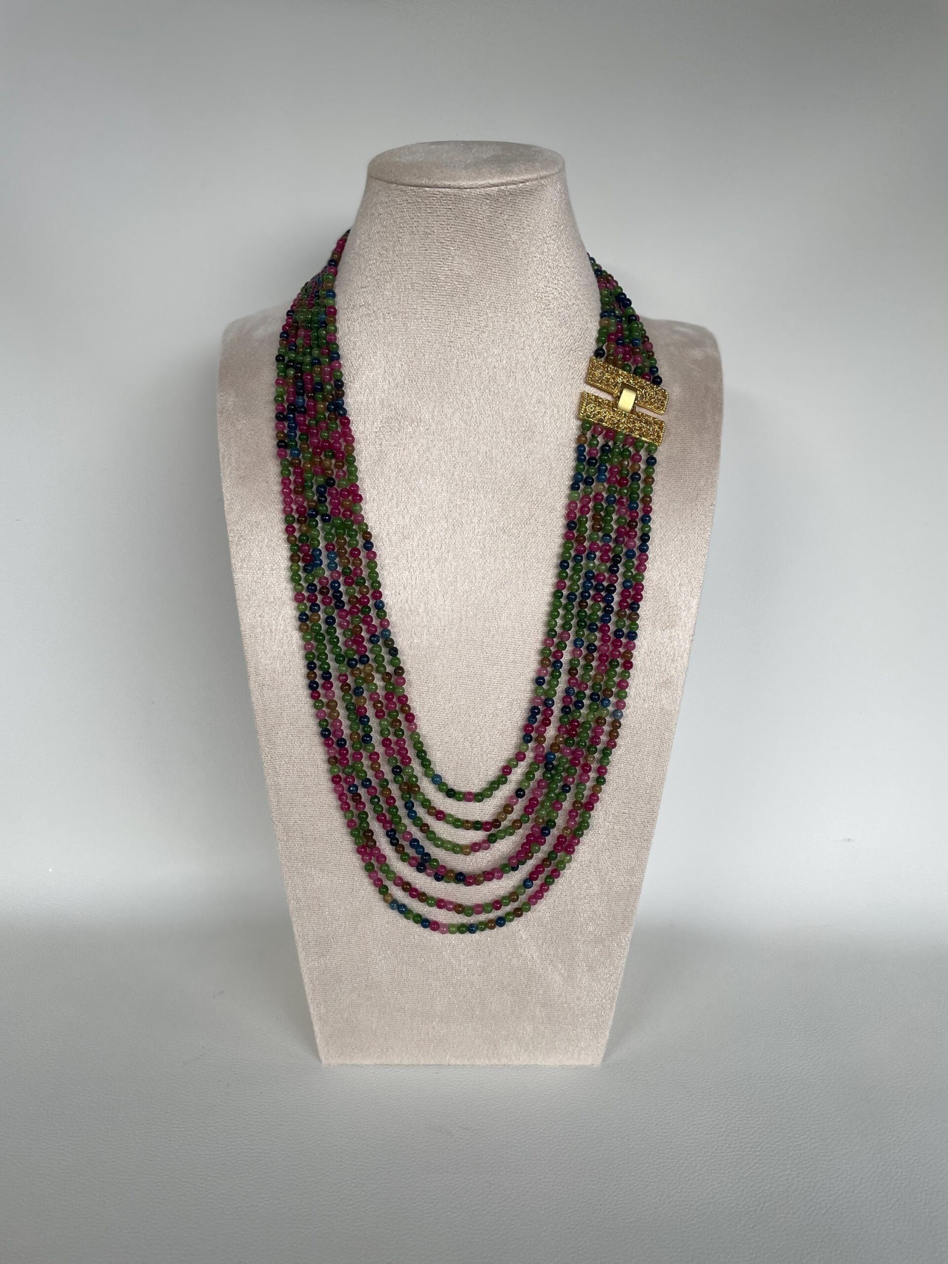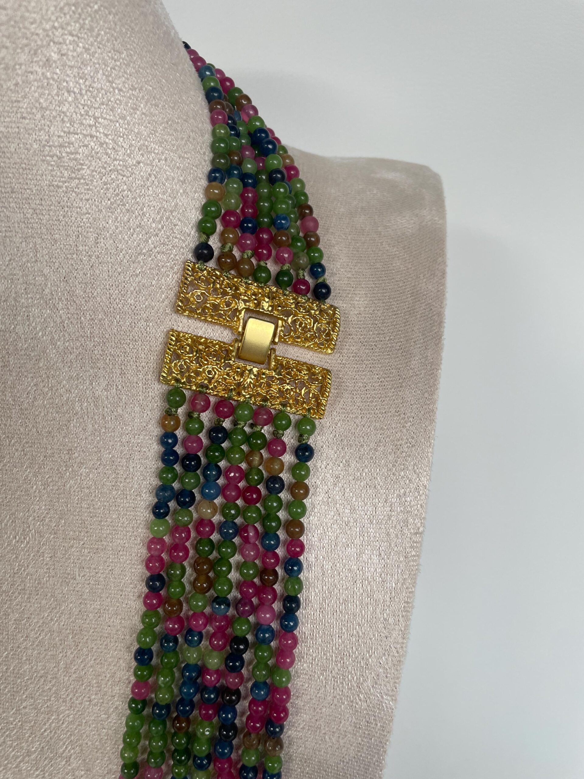 Collana lunga, collana multifilo, collana Giada multicolor, collana elegante, regalo per lei.