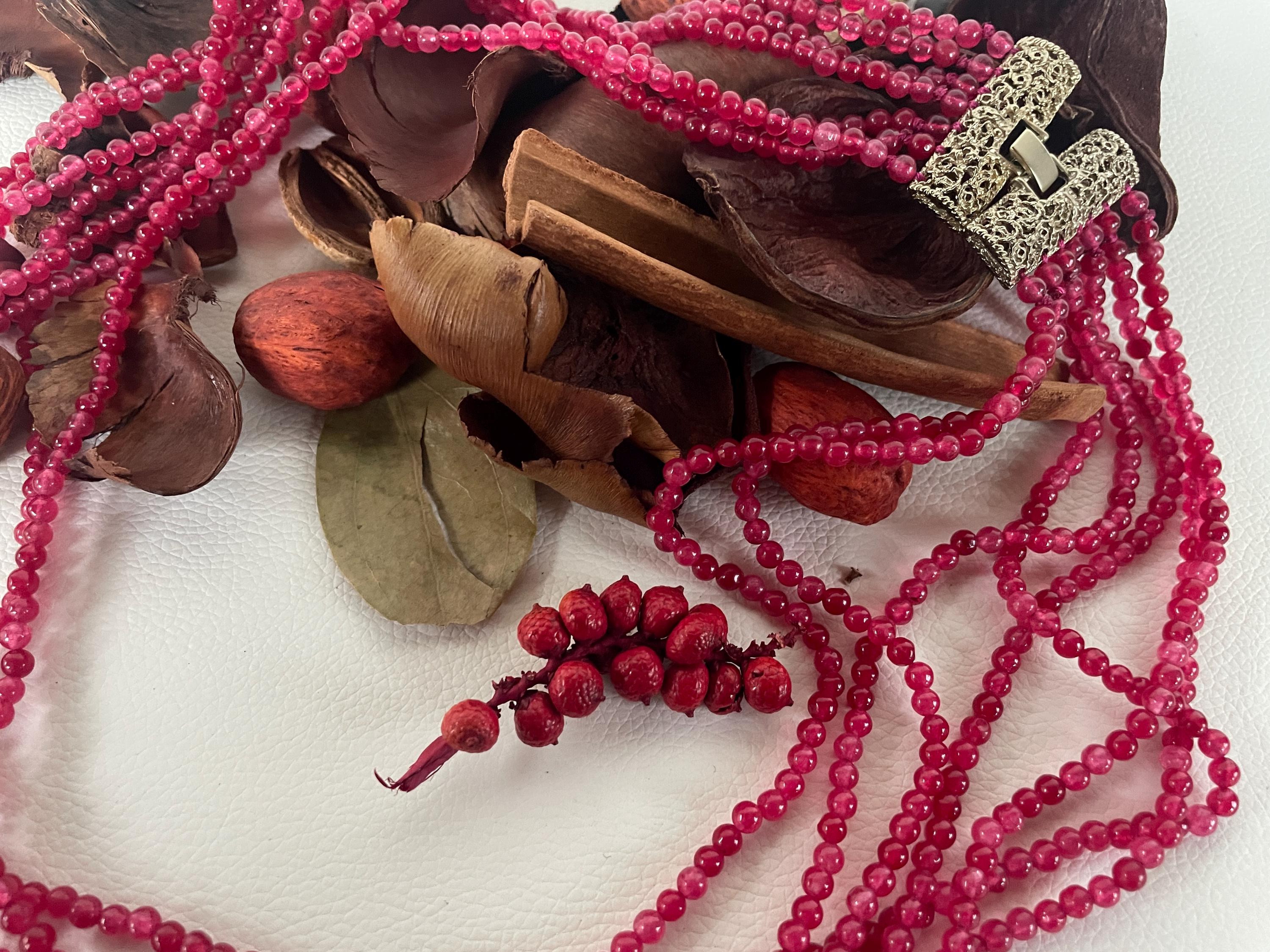 Collana stupefacente di Giada Rosa che è possibile realizzare anche con altre pietre.