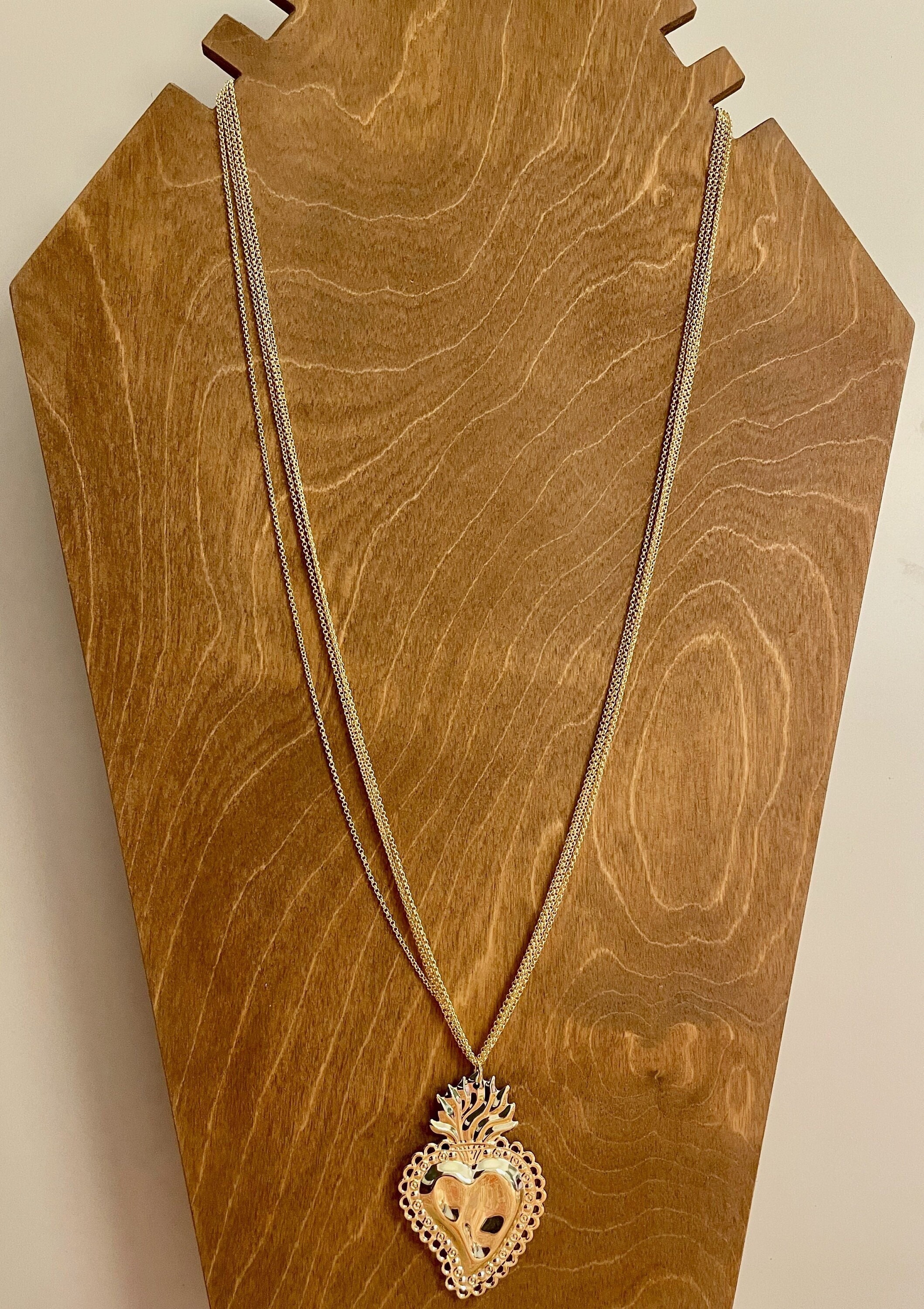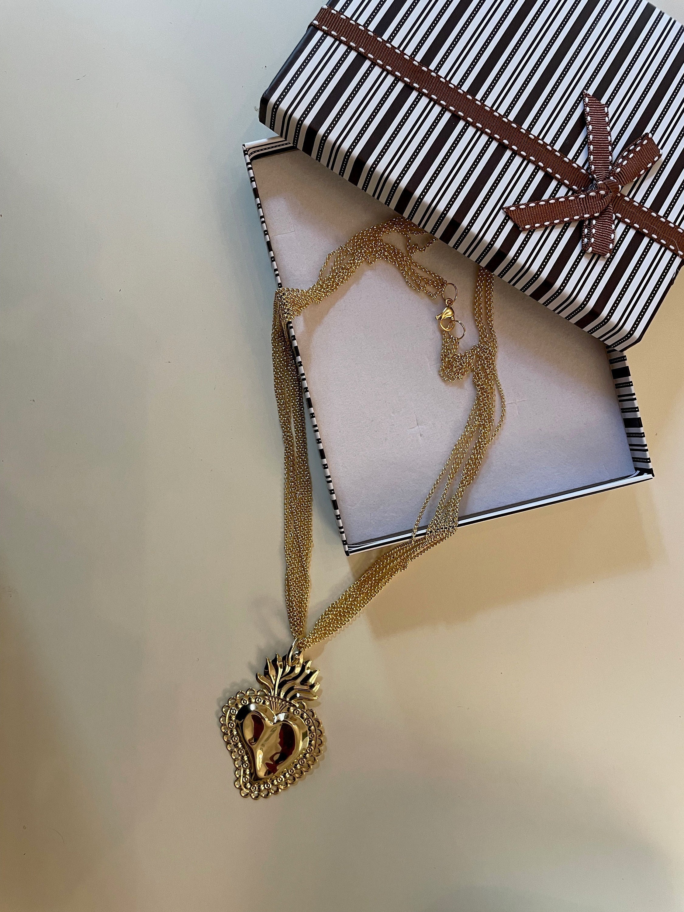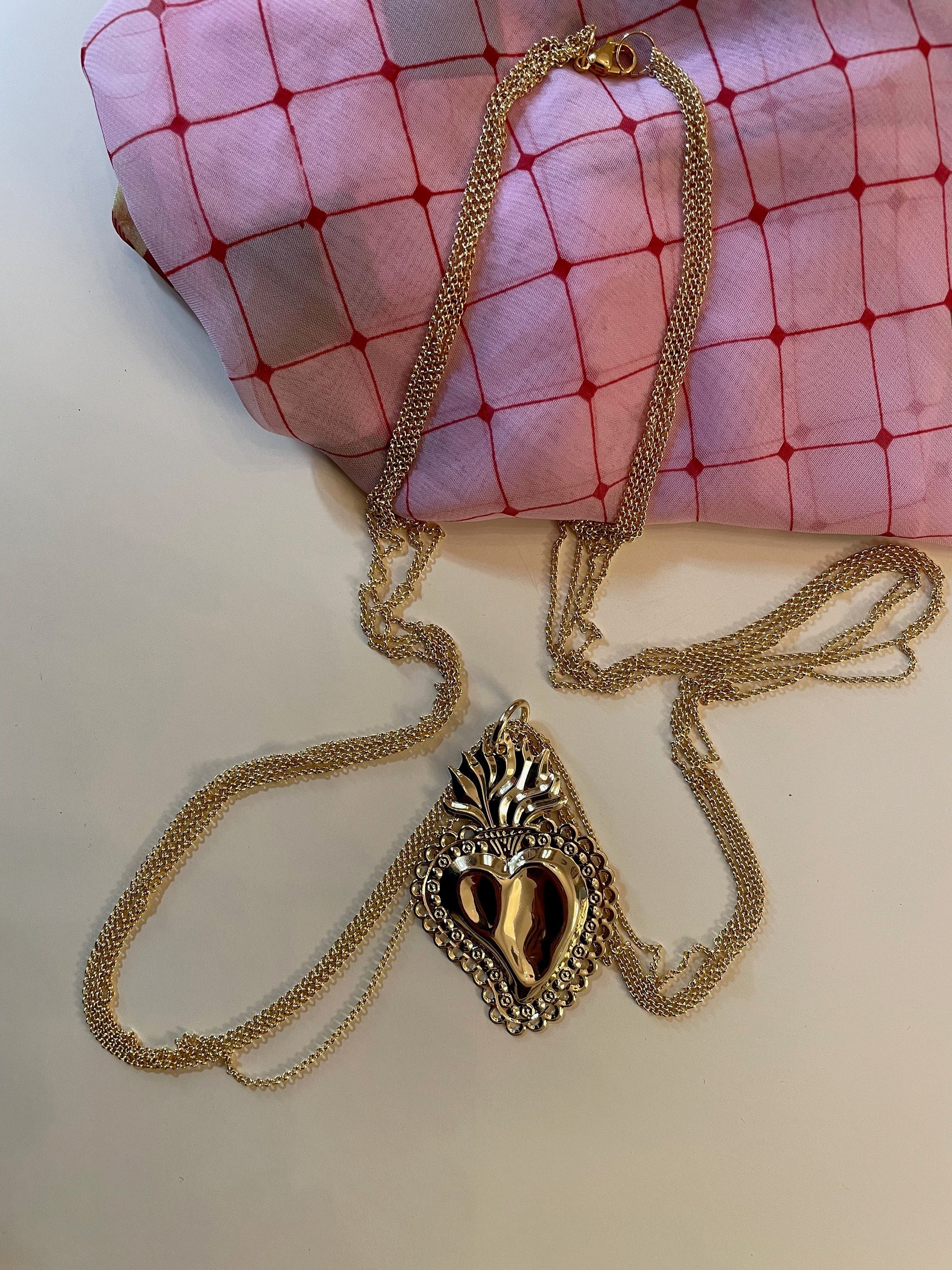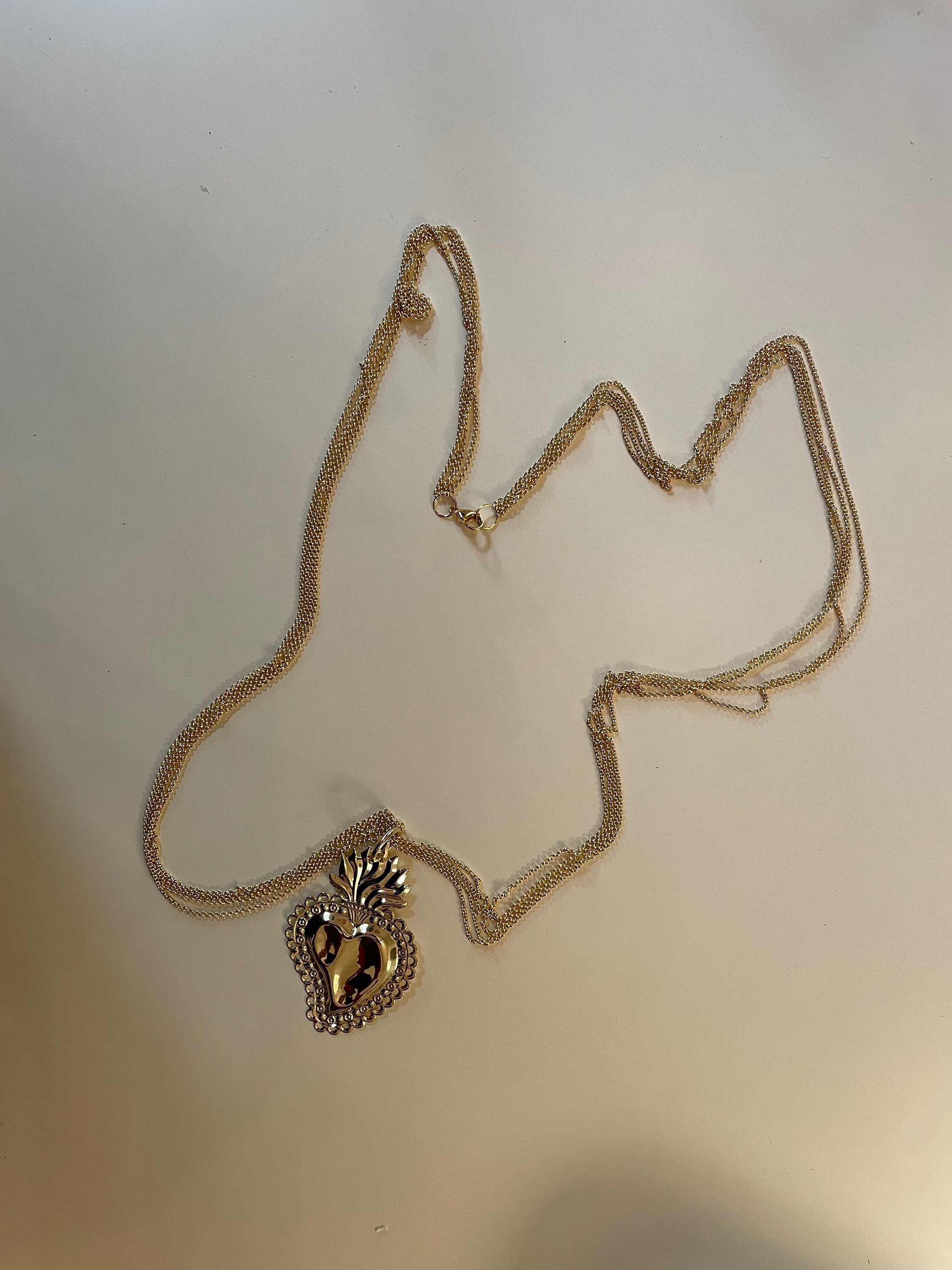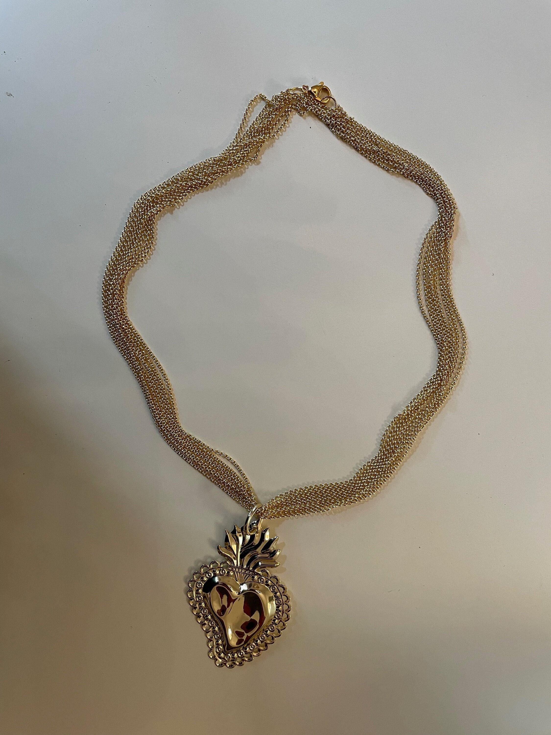 Realizzata con quattro fili di maglia sottilissima di ottone e ciondolo raffigurante un Cuore Sacro.