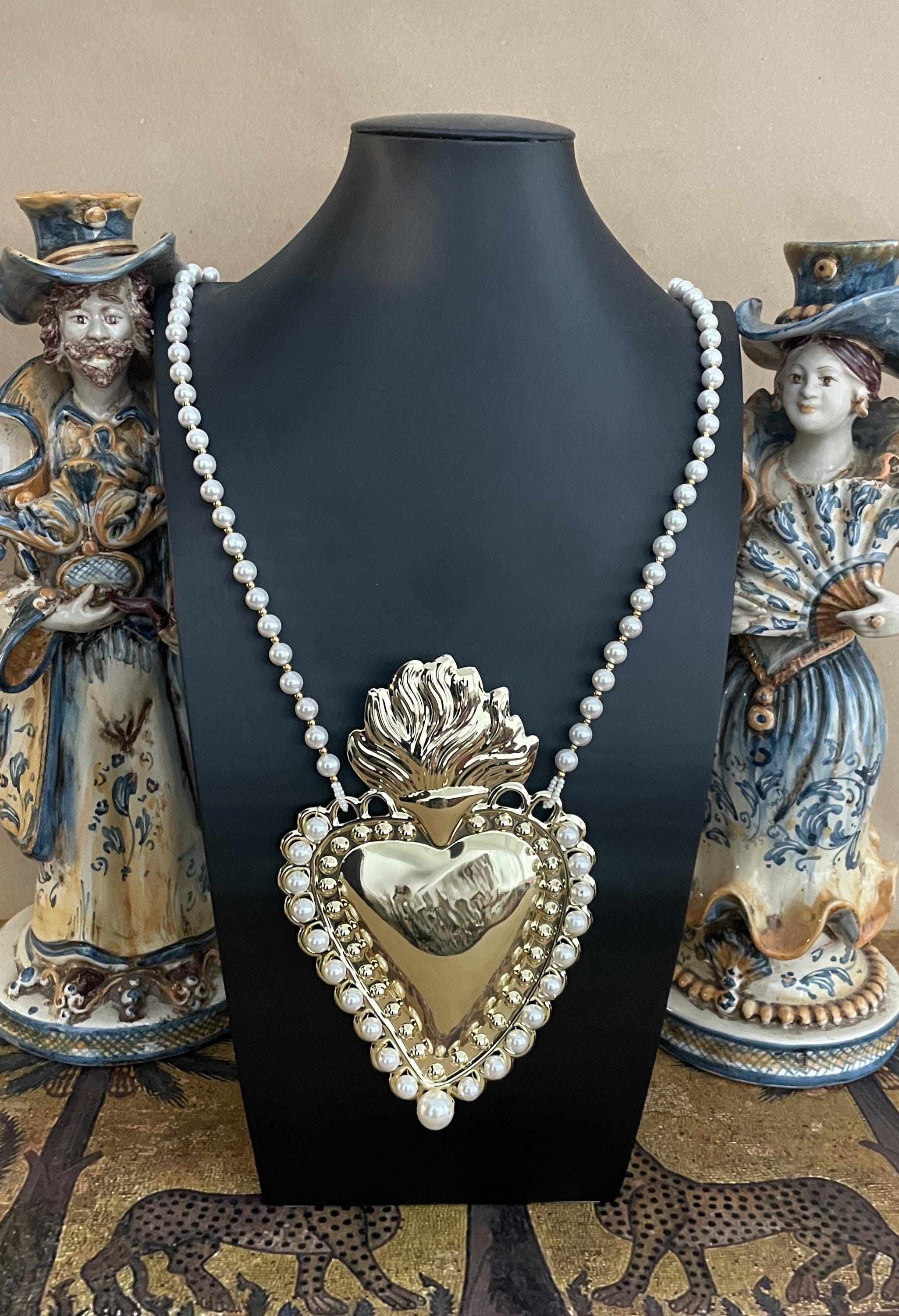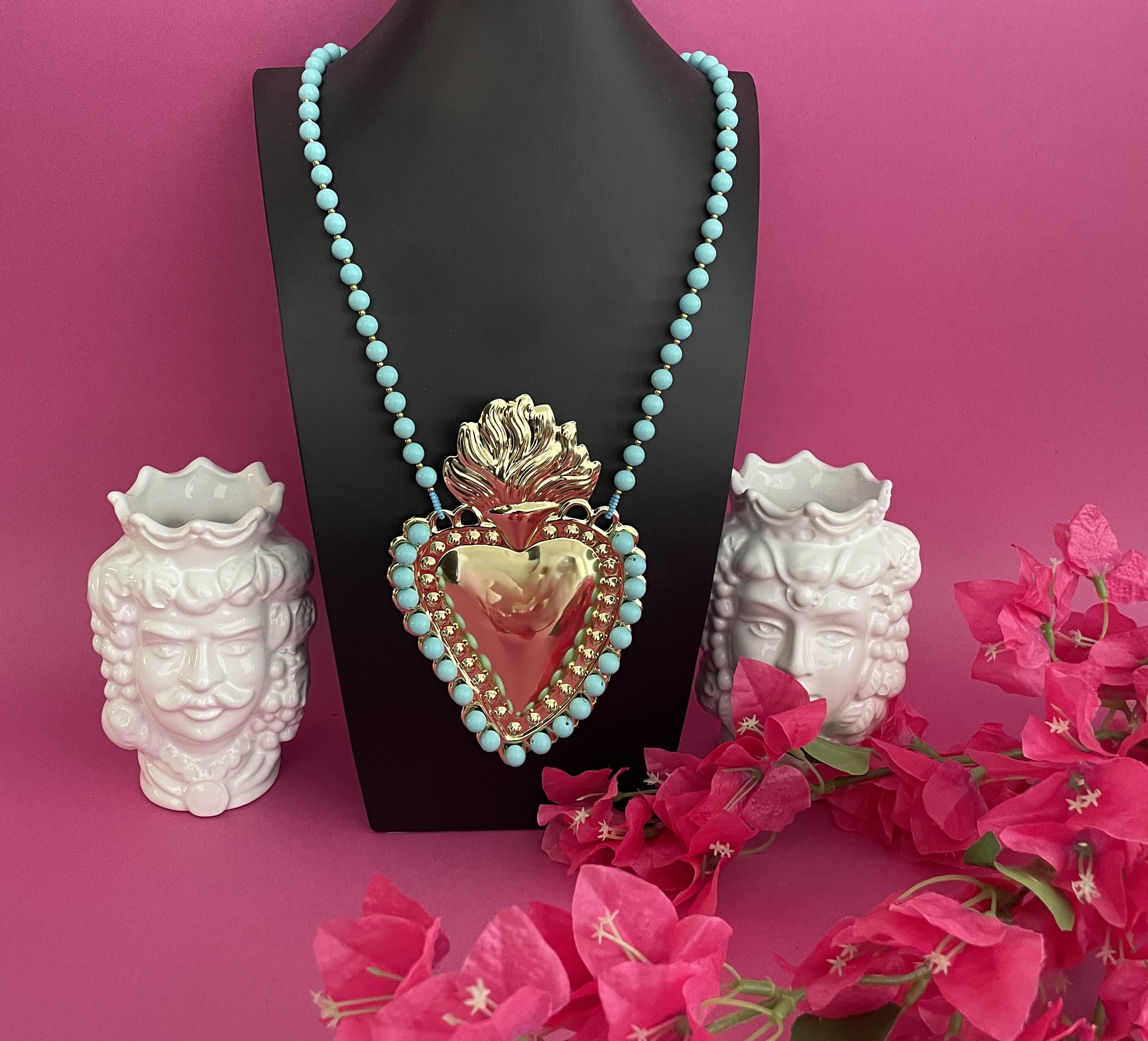 Una collana che raffigura in versione Pop un’icona fortemente simbolica nella tradizione cristiana: il Cuore Sacro.