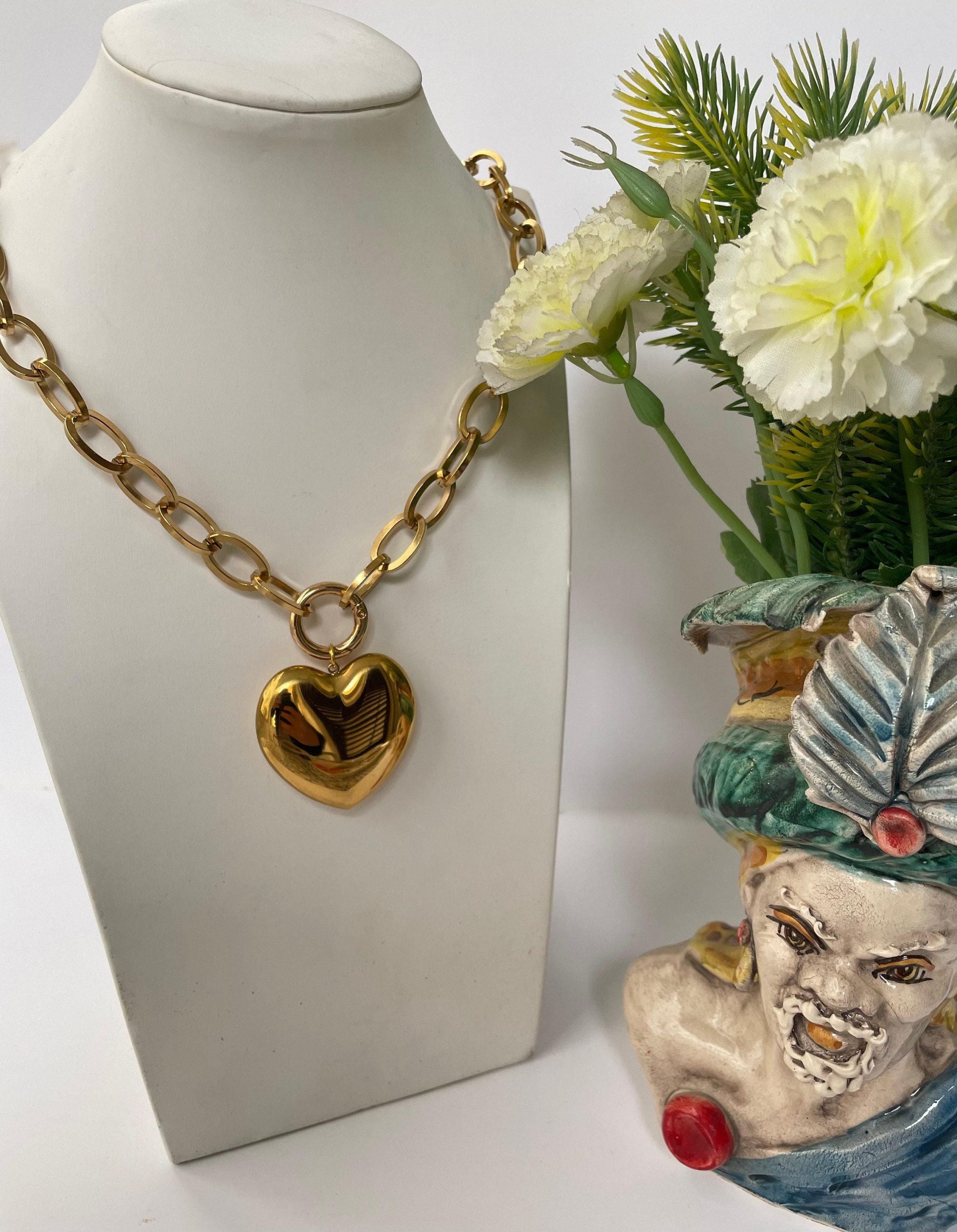 La collana è completata da un grande ciondolo centrale oversize a forma di grande Cuore gonfio!