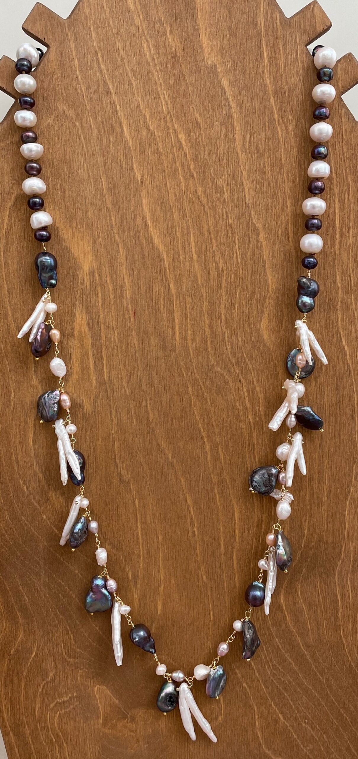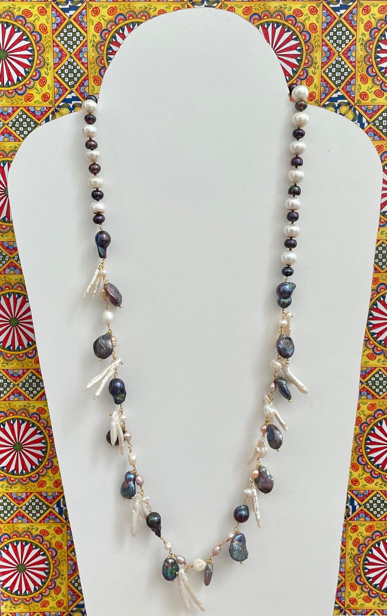 Collana perle barocche bianche e grigie, perle naturali, collana lunga. regalo per lei.