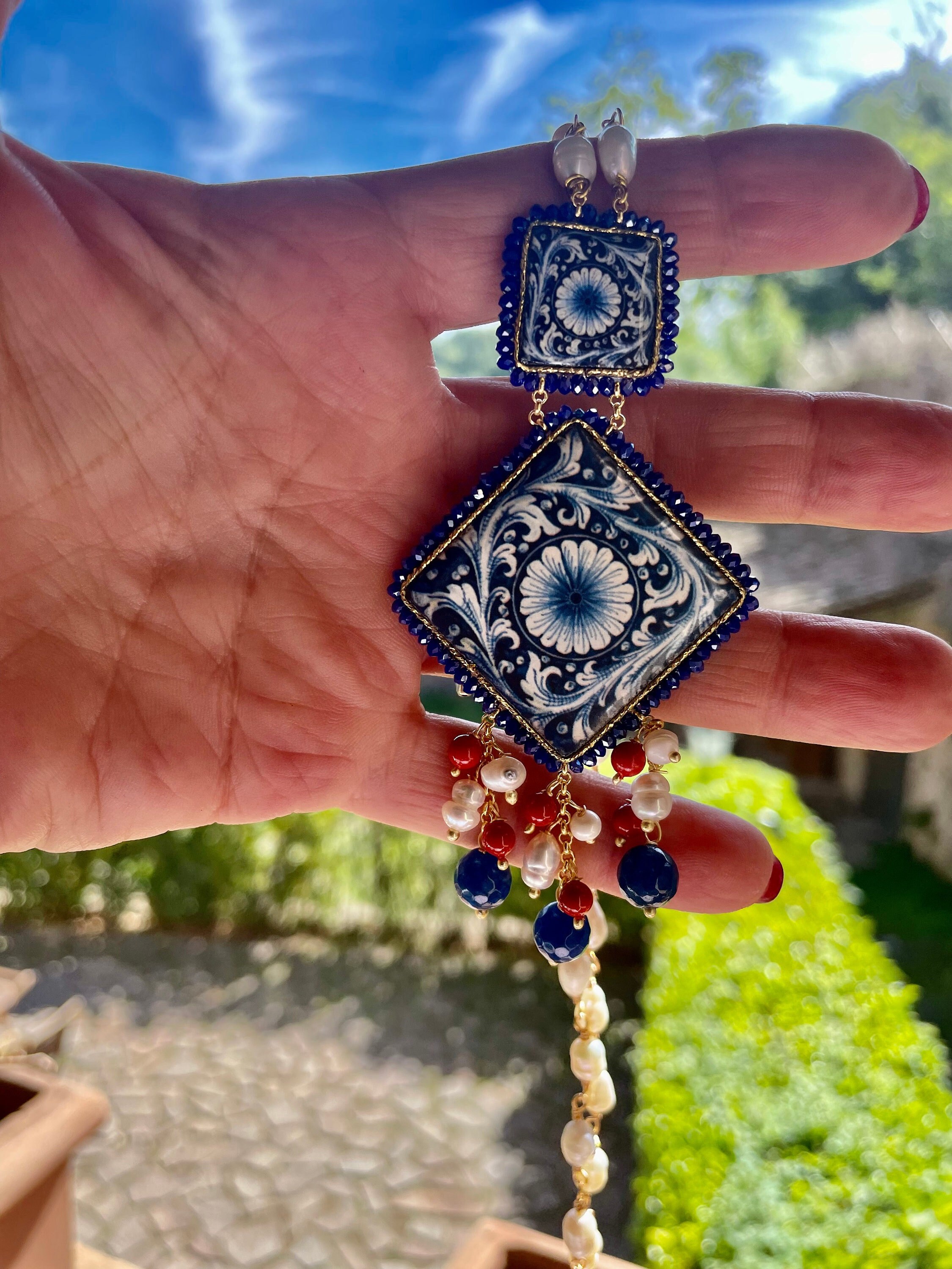 Può essere abbinata agli orecchini visibili in foto e acquistabili sulla sezione orecchini con mattonelle al seguente link: https://sikeliacraft.com/product-category/orecchini-eccellenza-dello-artigianato-siciliano/orecchini-con-mattonelle/