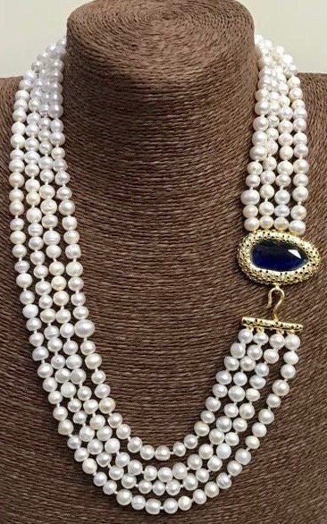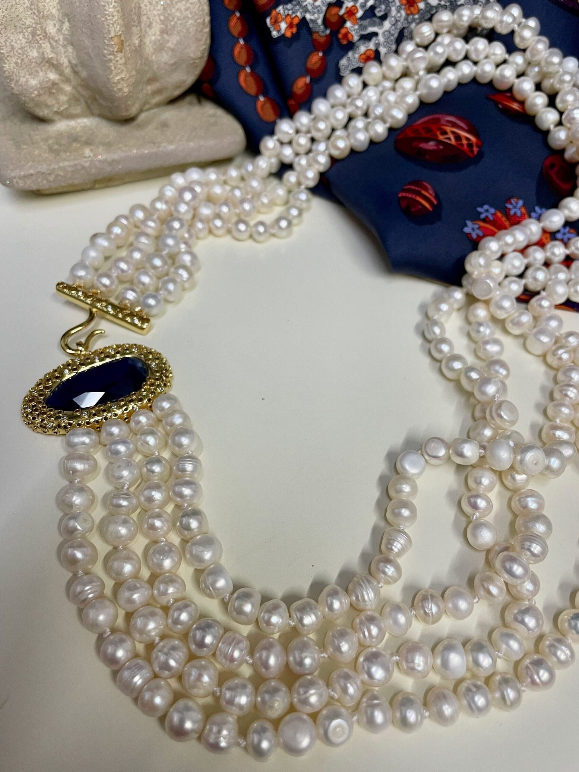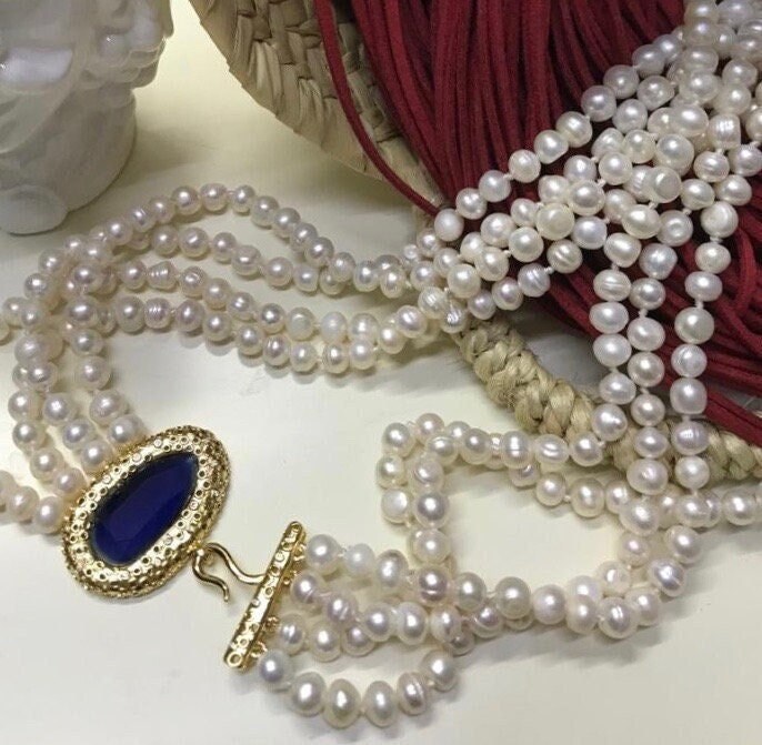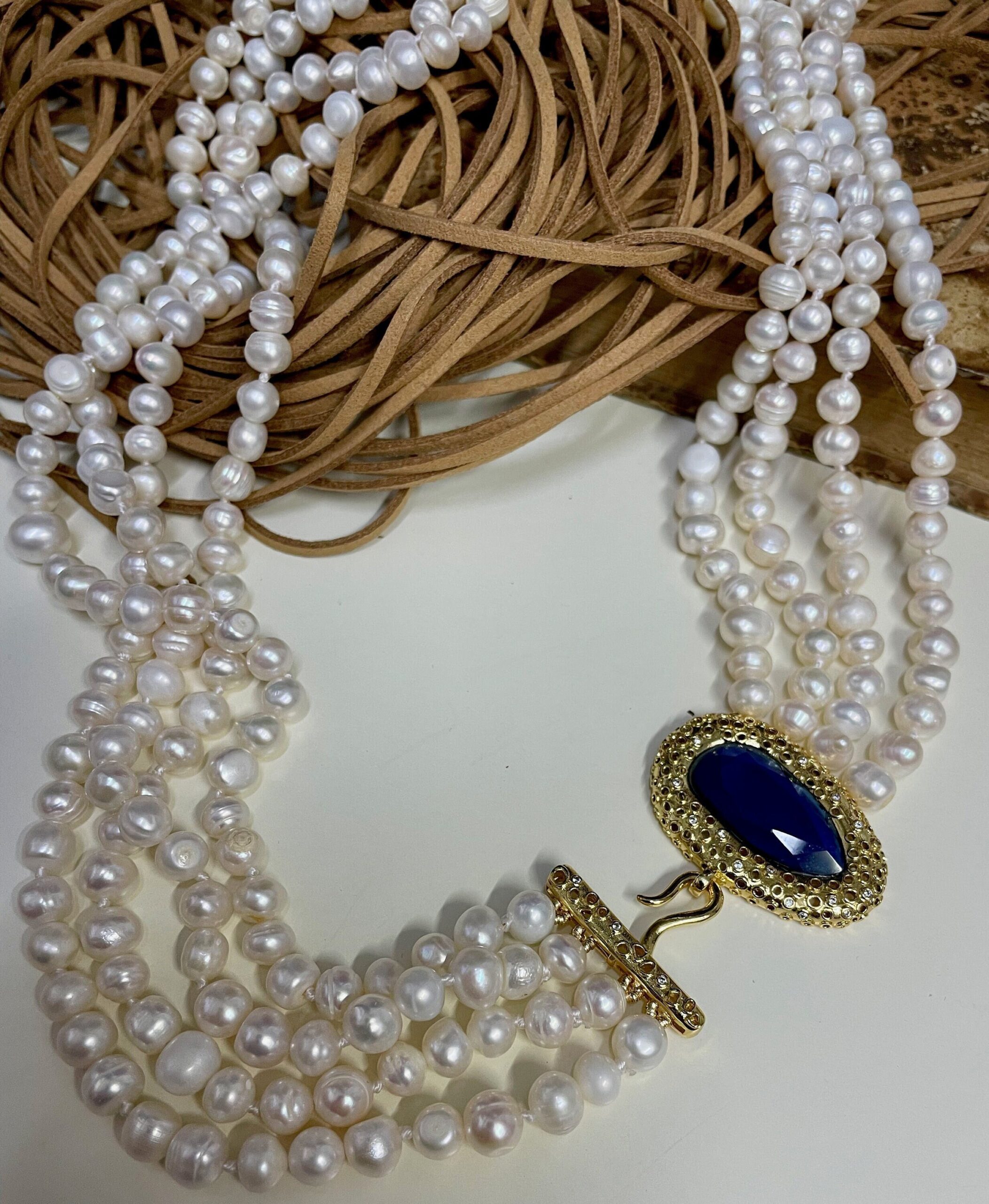 Realizzata con quattro fili di perle di fiume, singolarmente annodate.