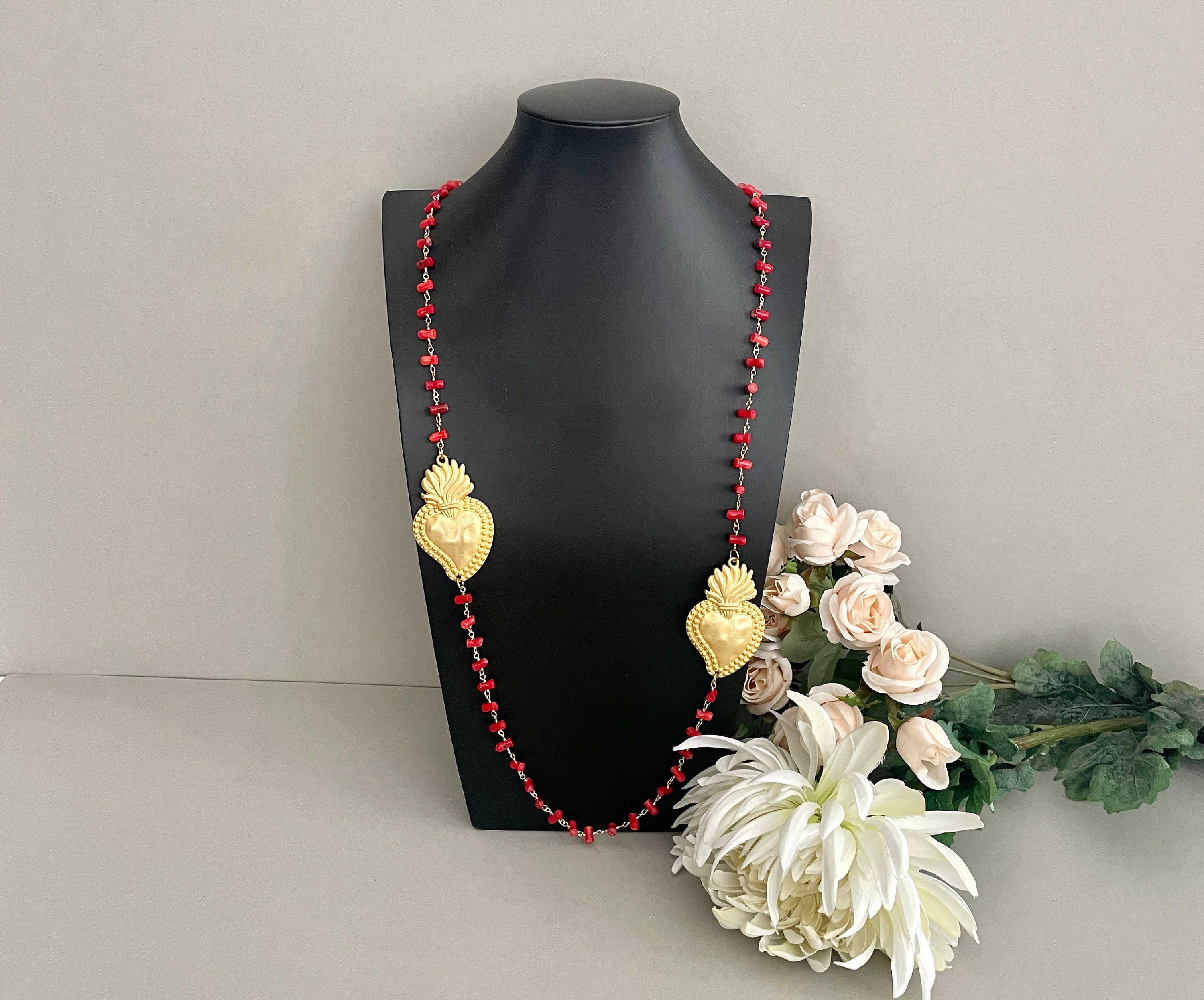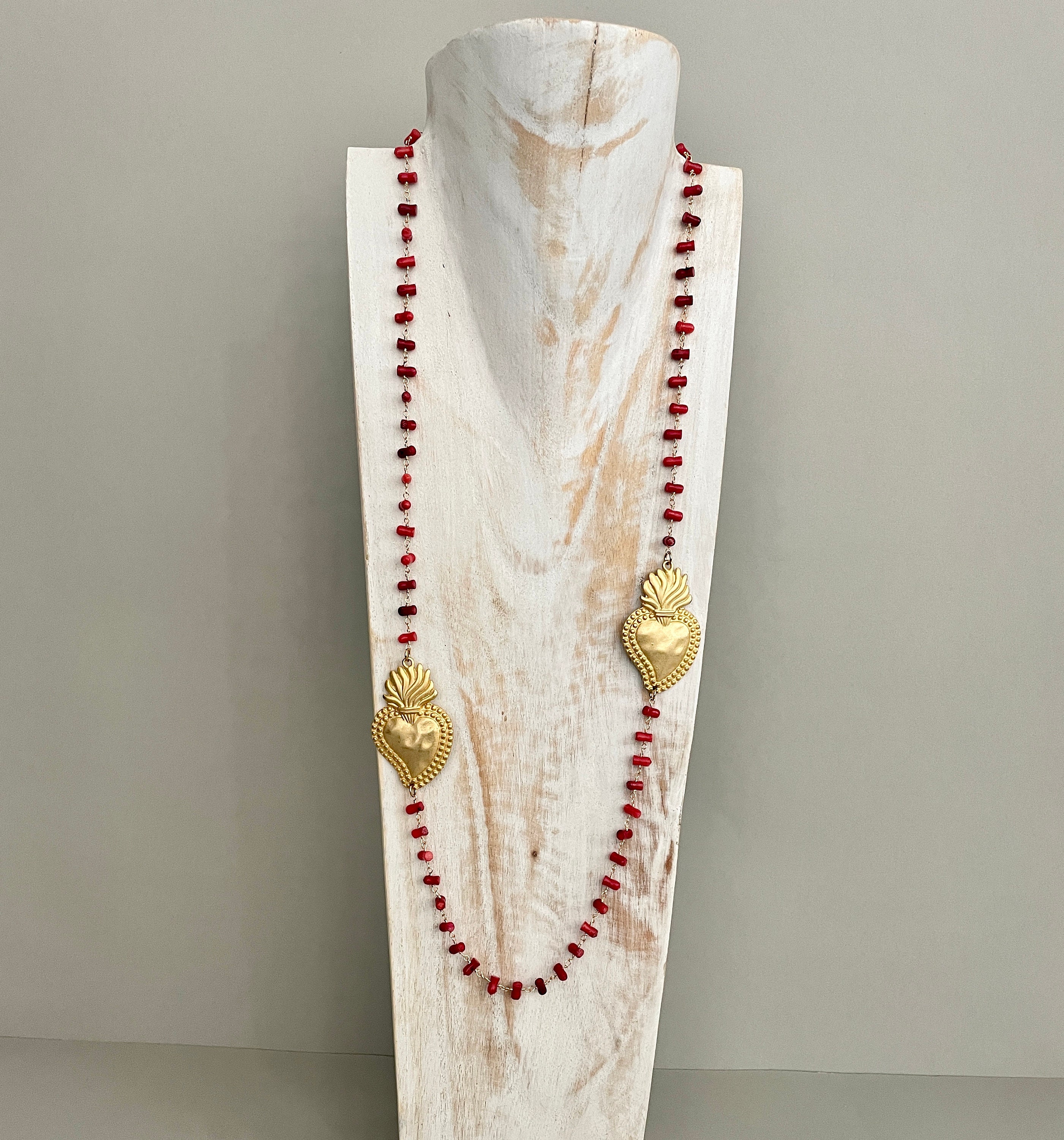 Realizzata con catena di tipo Rosario con pezzi di corallo bambù.