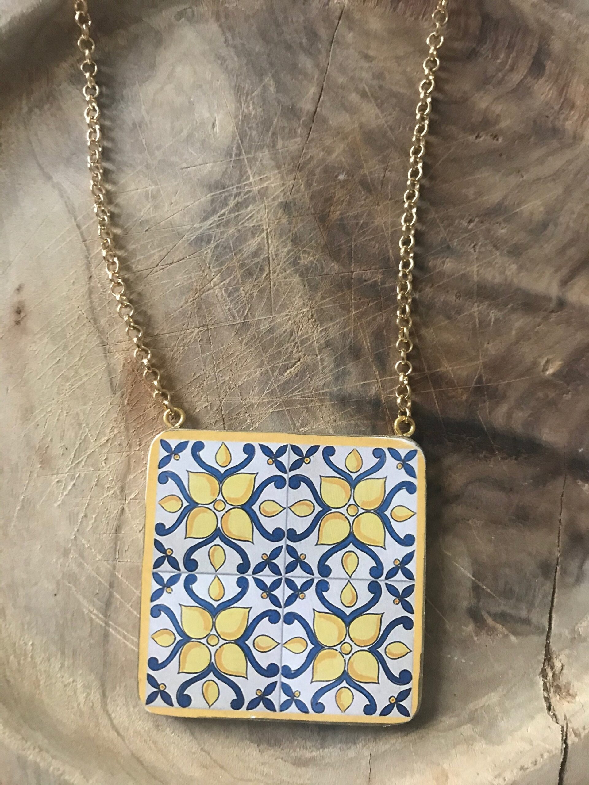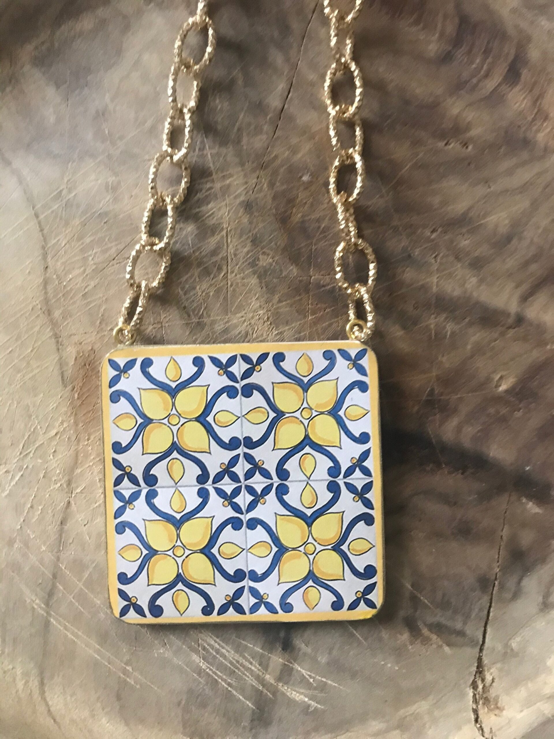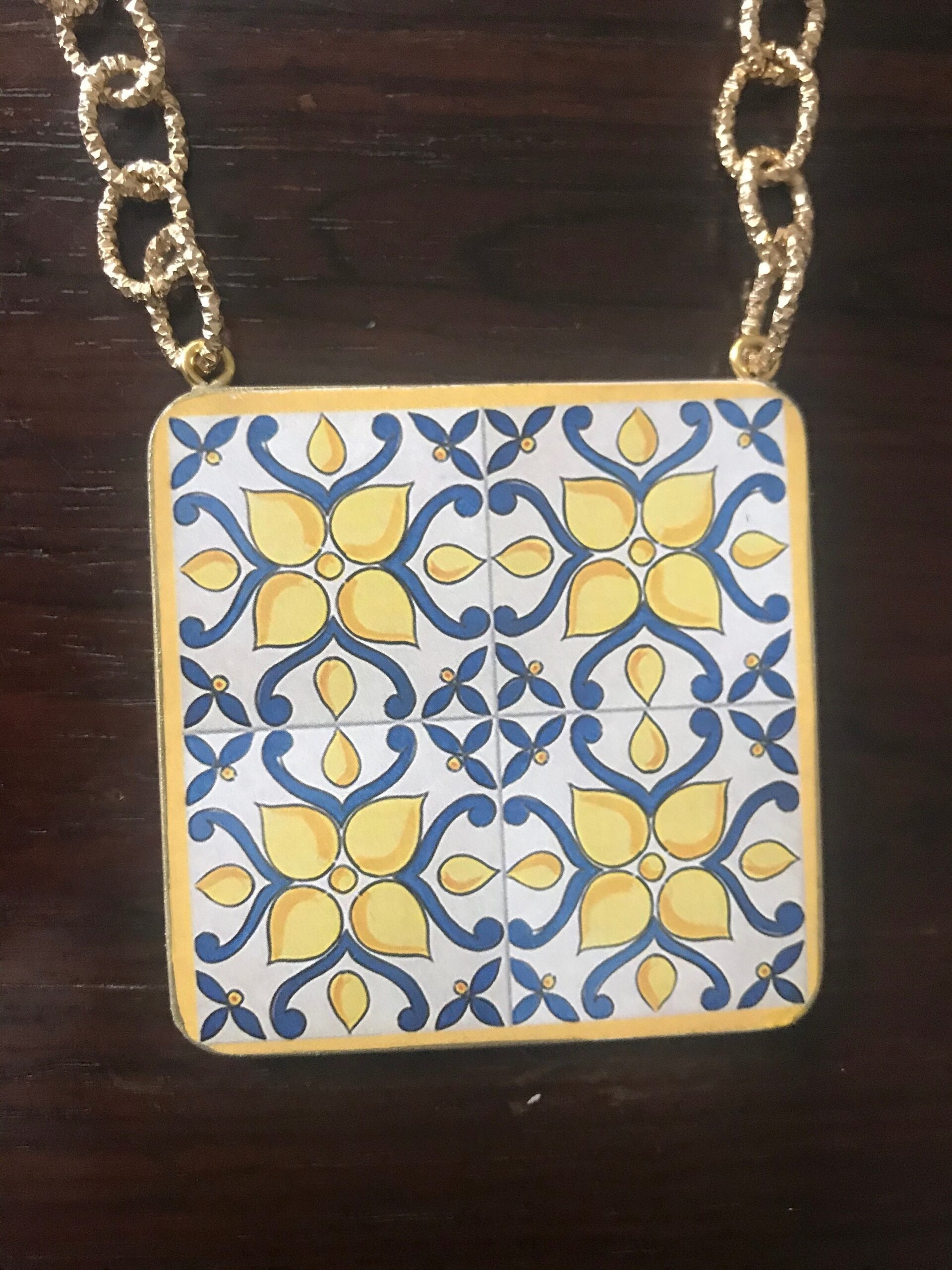 Composta da ciondolo double-face raffigurante due maioliche siciliane.