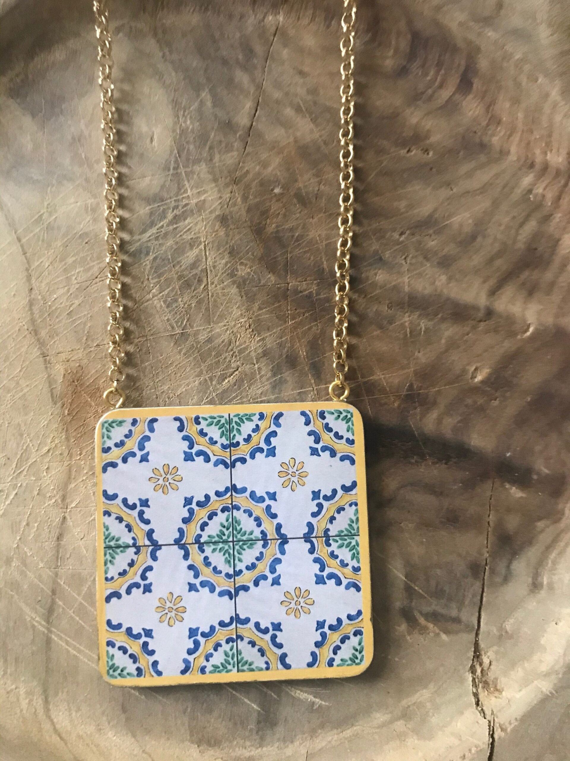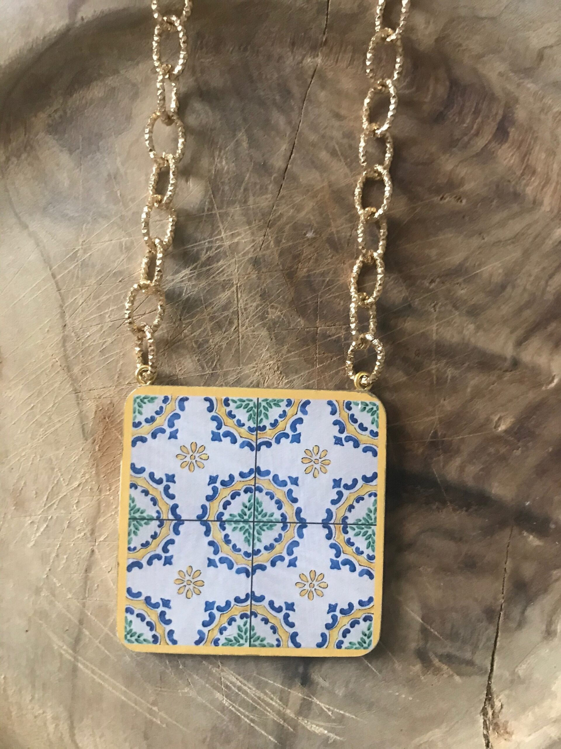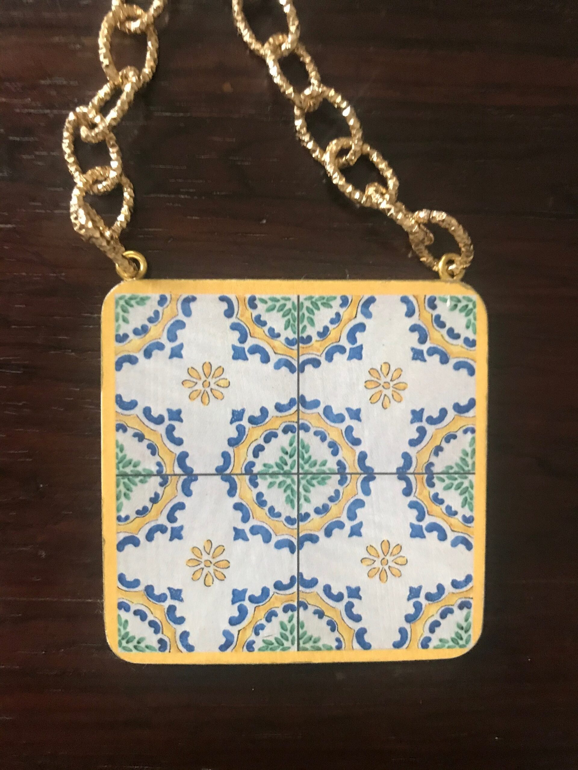 Composta da ciondolo double-face raffigurante due maioliche siciliane.