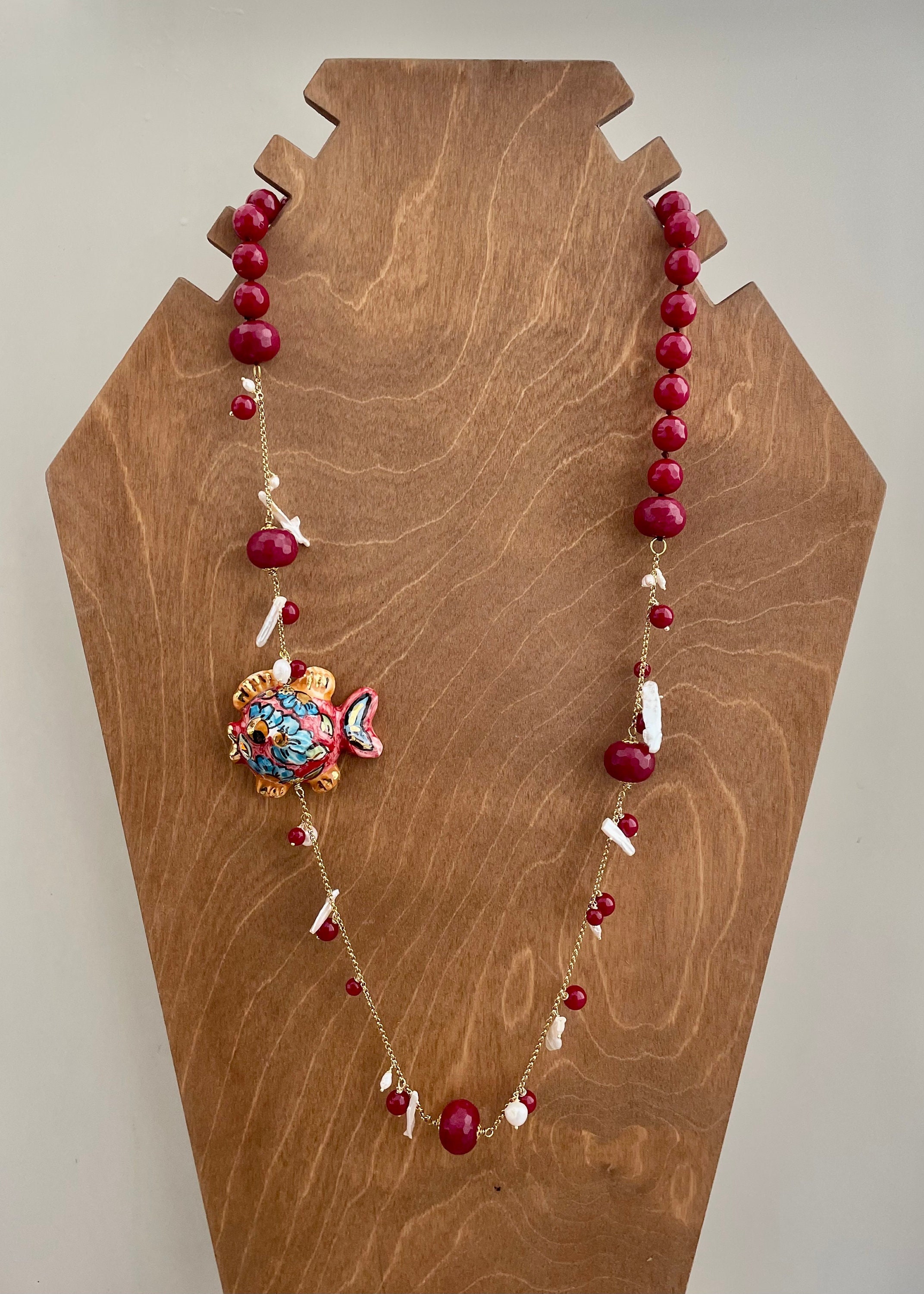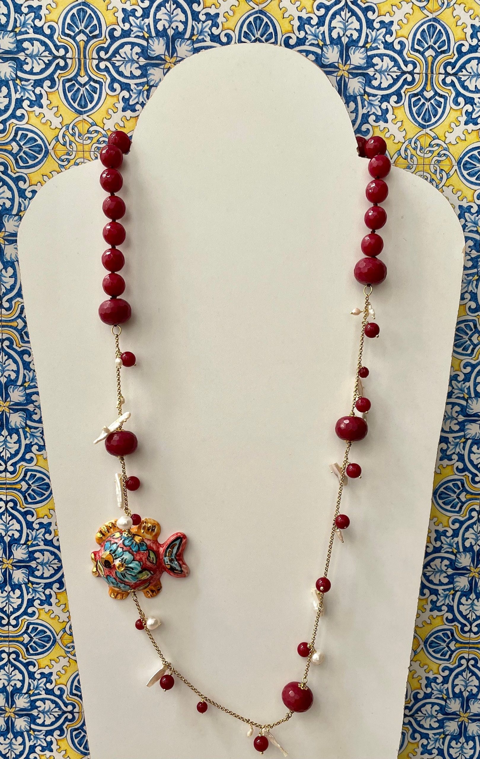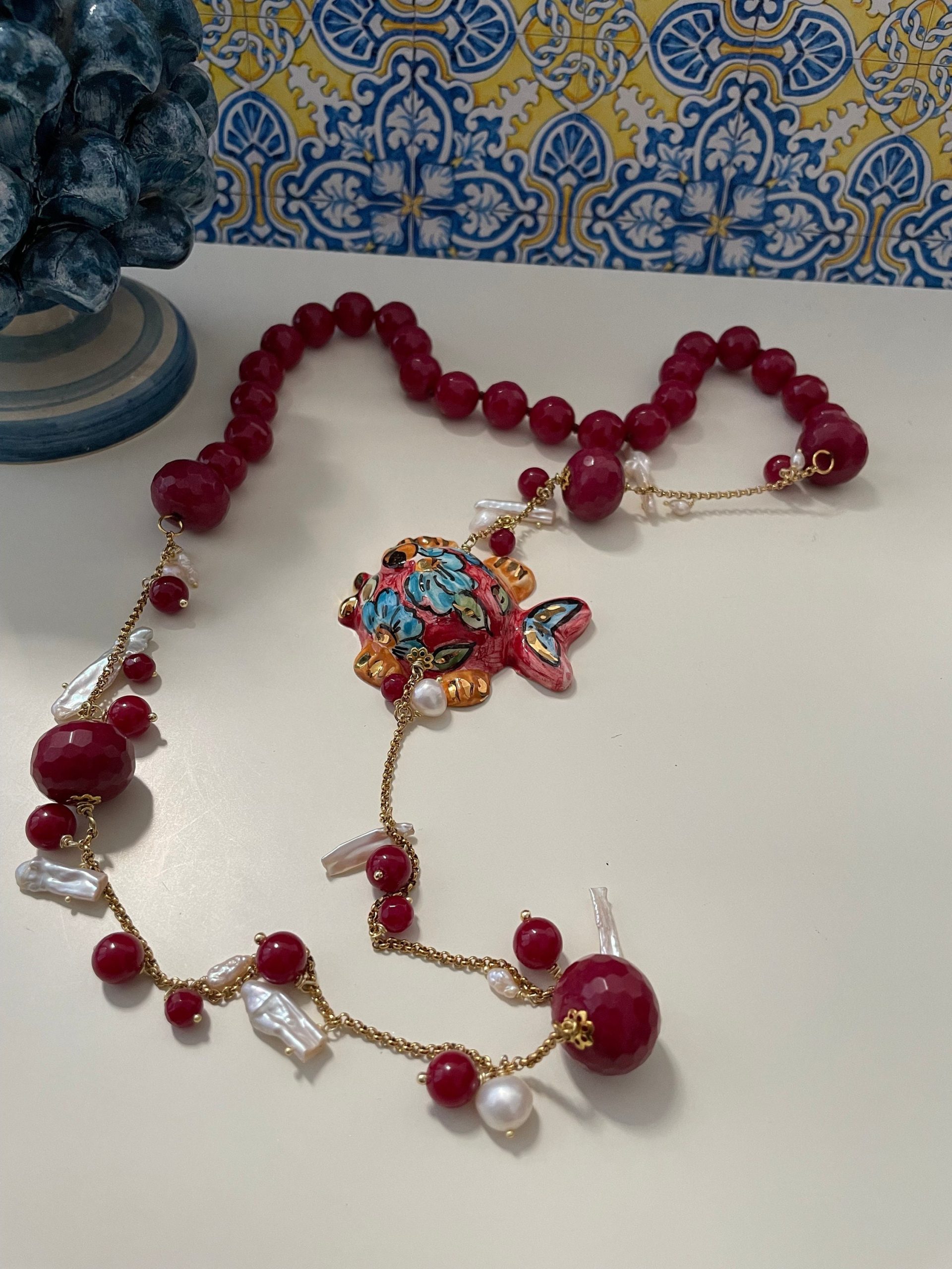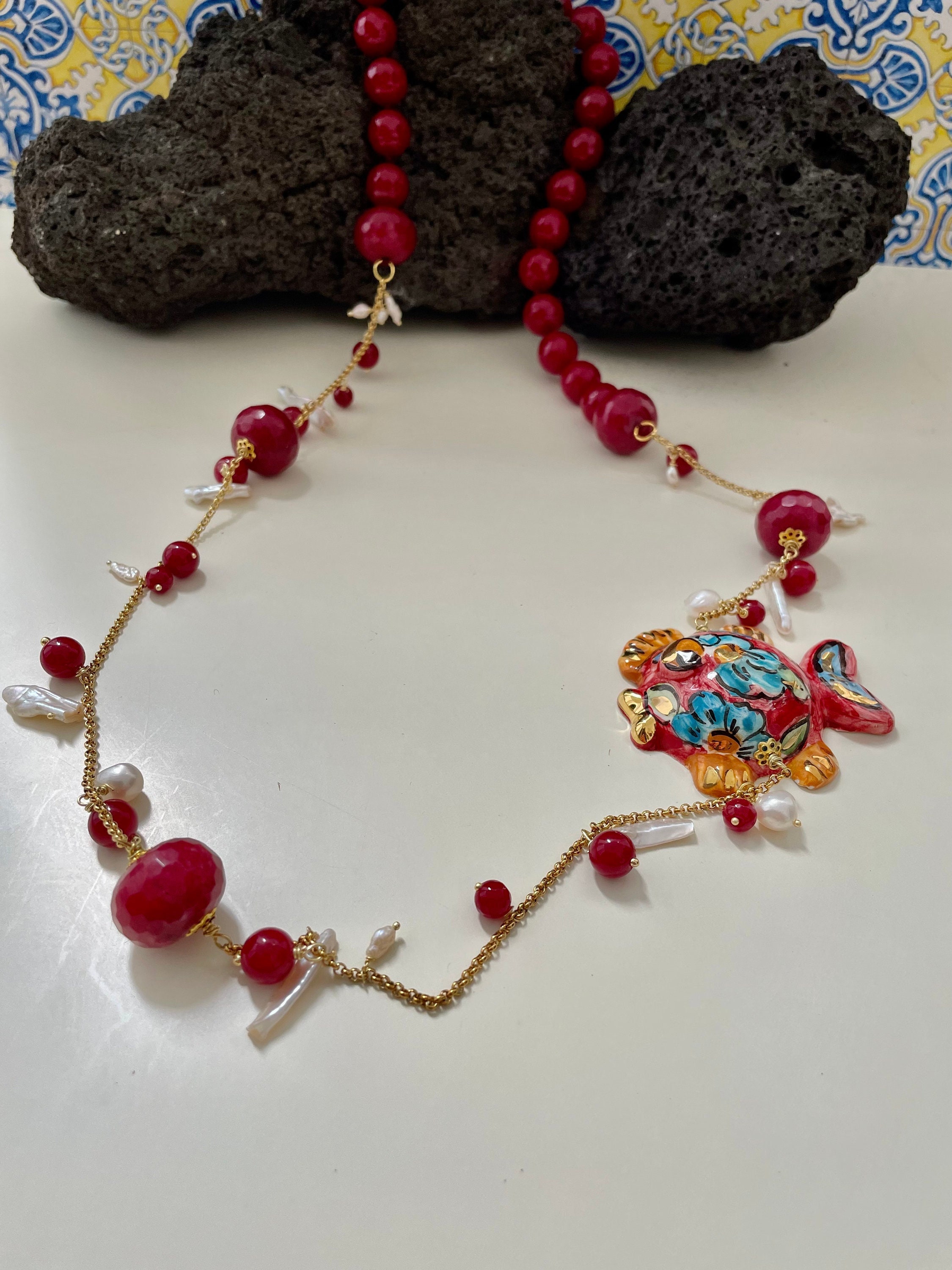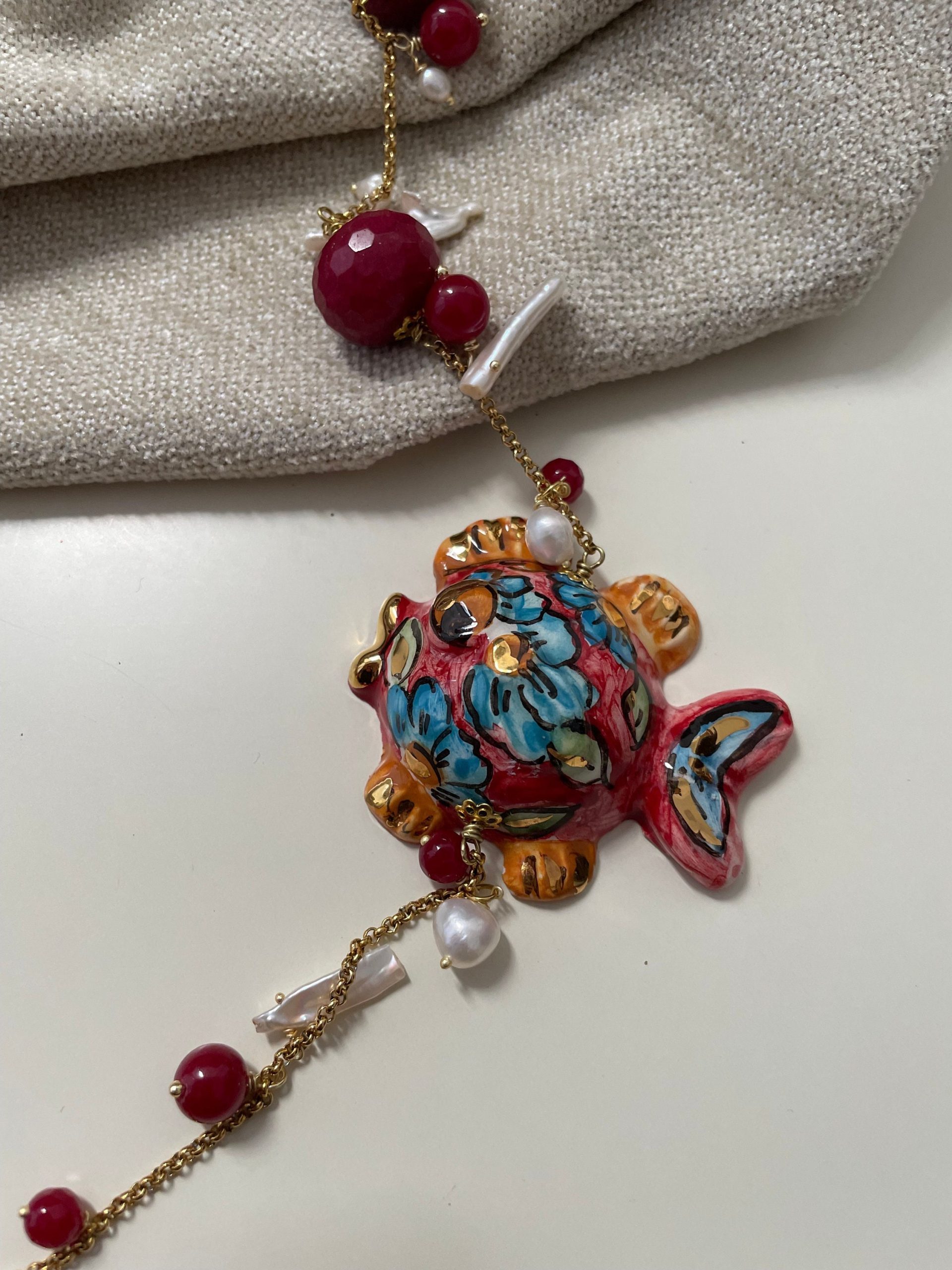 Completa il gioiello vivace un Pesce in ceramica di Caltagirone dipinta a mano.