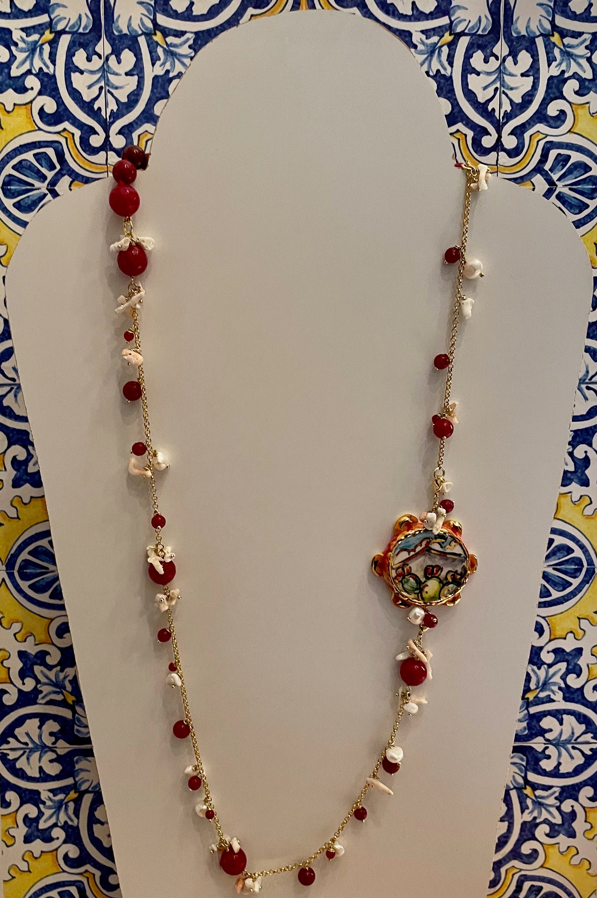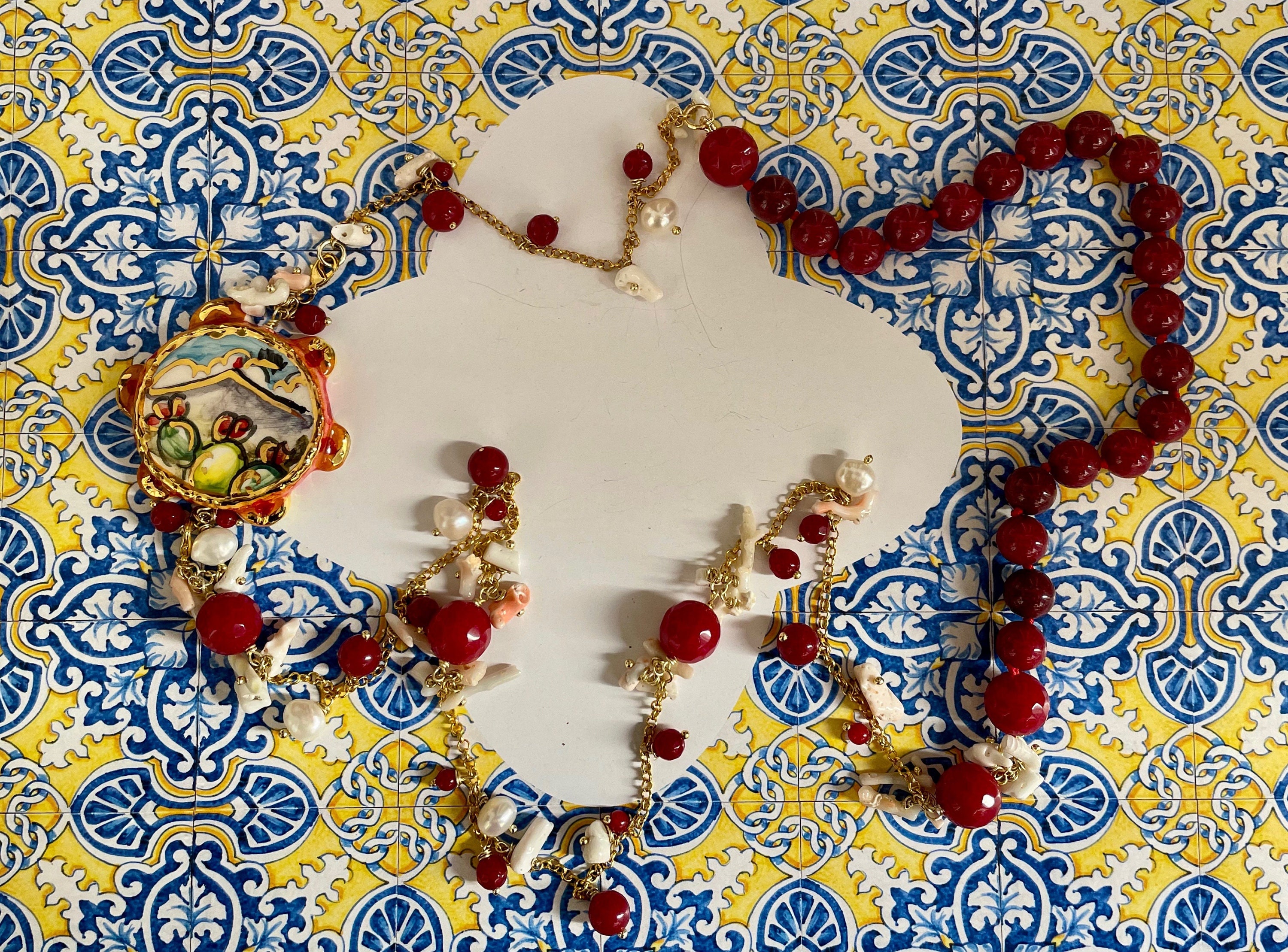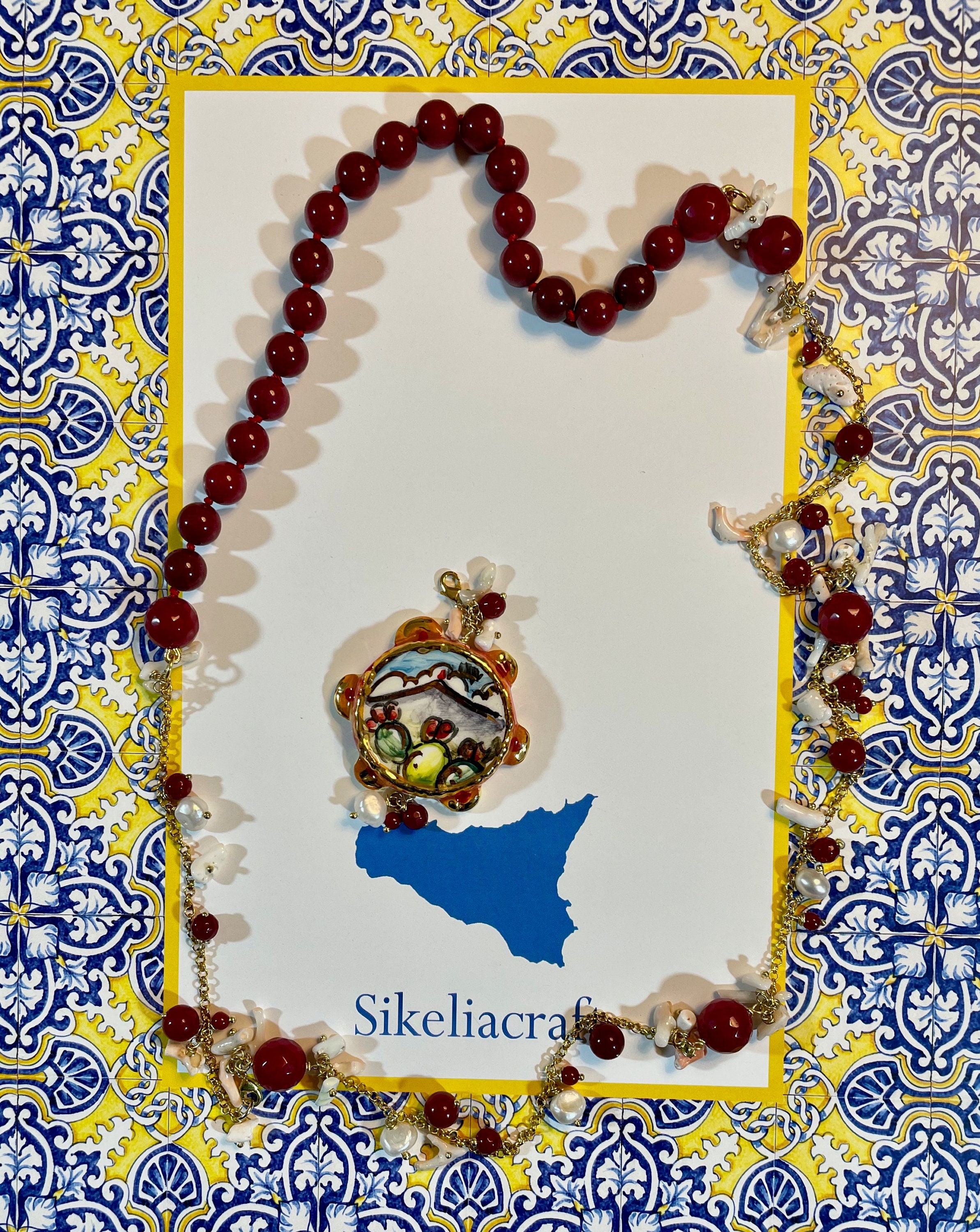 Completa il tutto un Tamburello siciliano in ceramica di Caltagirone, dipinta a mano, simbolo di tradizione e artigianalità.