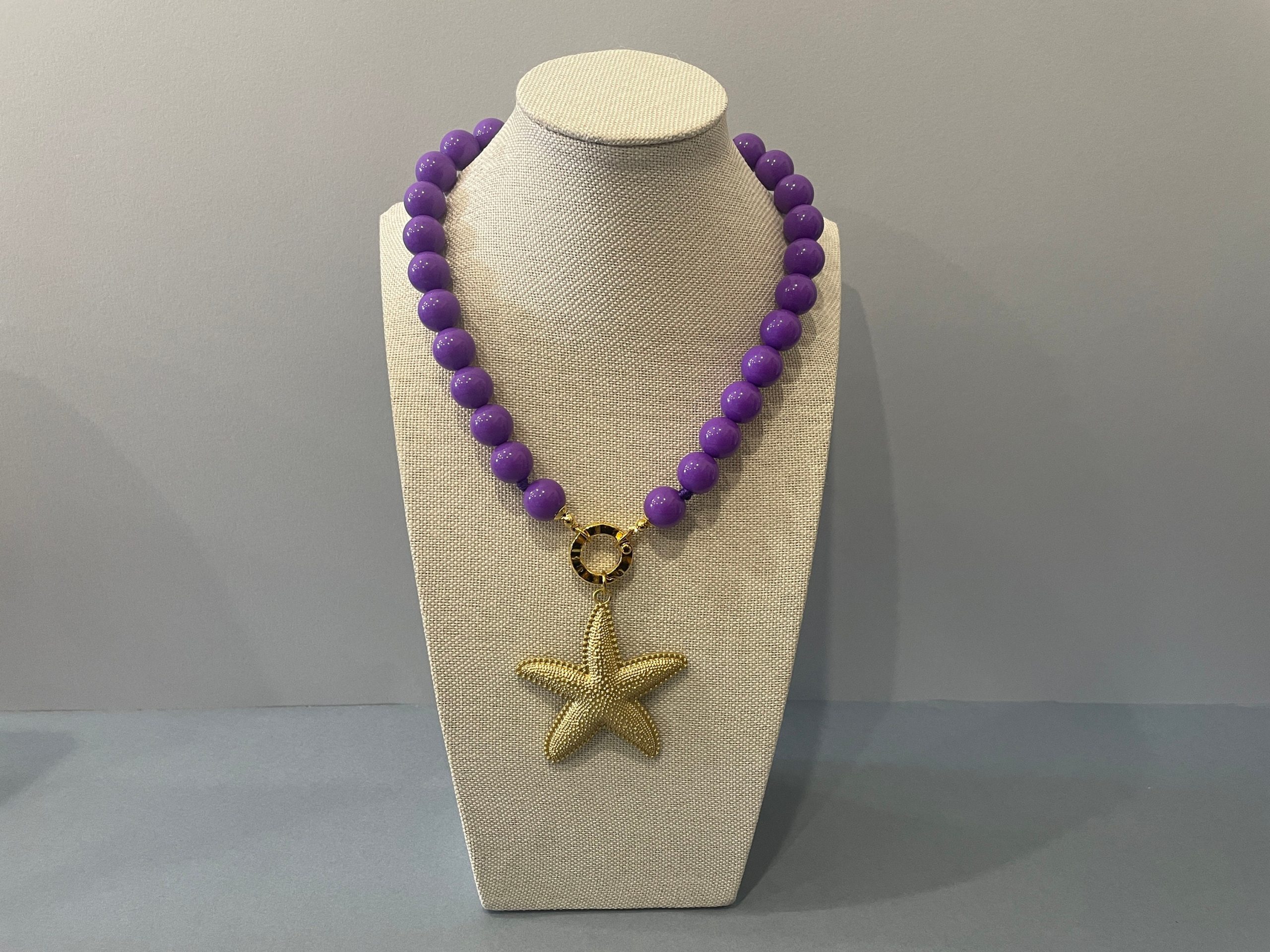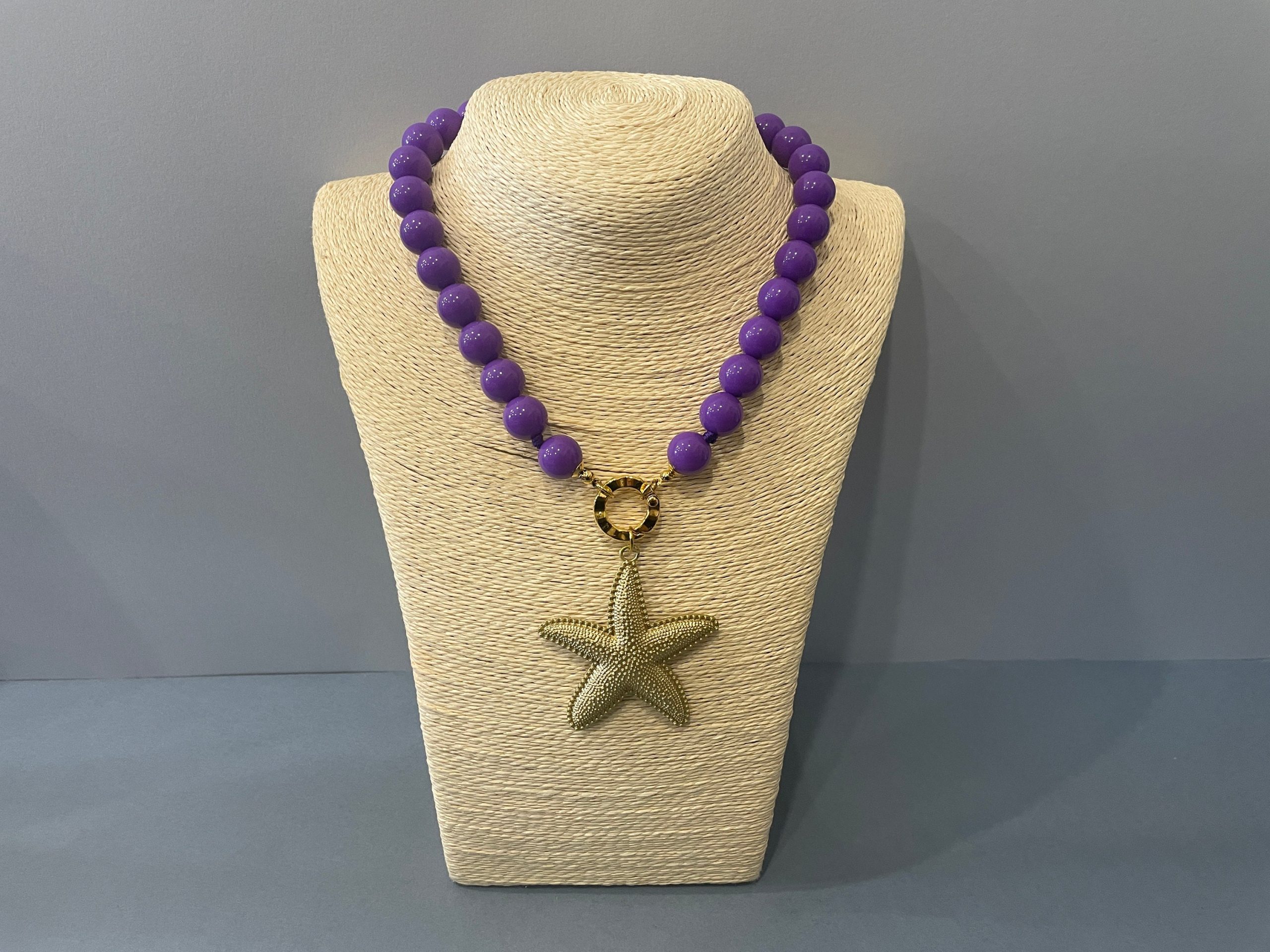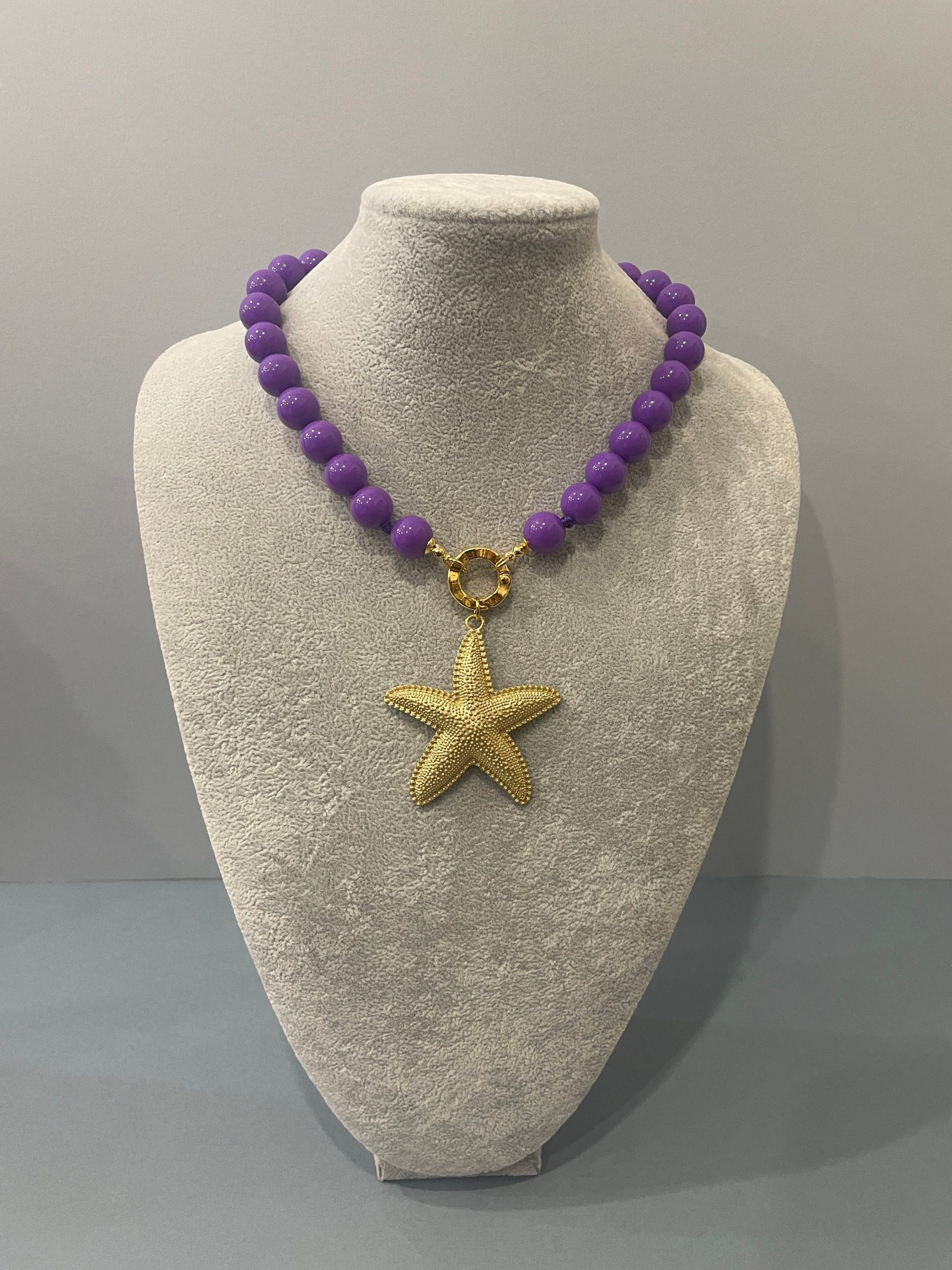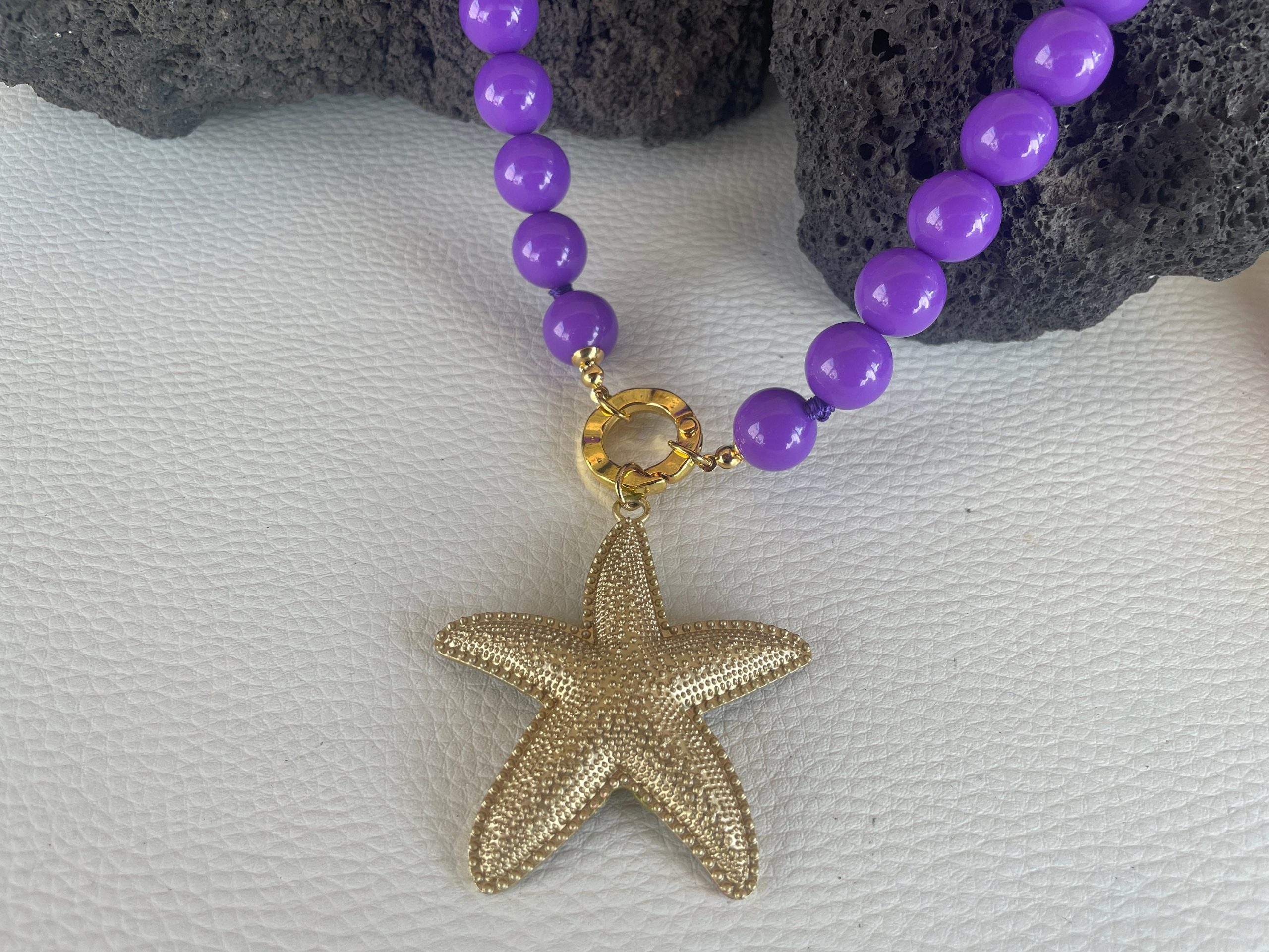 Chiusura gioiello in acciaio inox, placcato oro 14k, e pendente centrale con una grande stella marina di Zama oro.