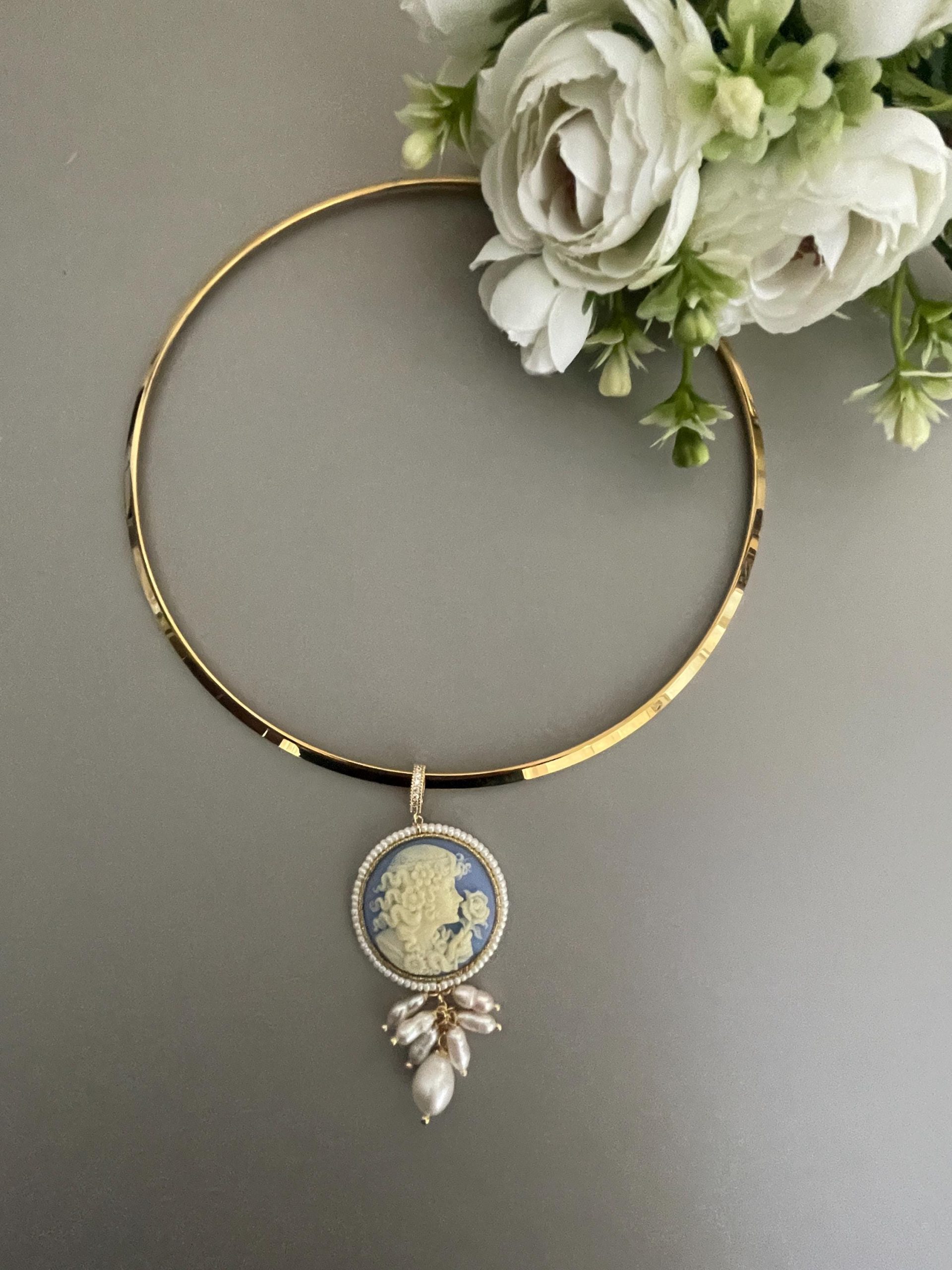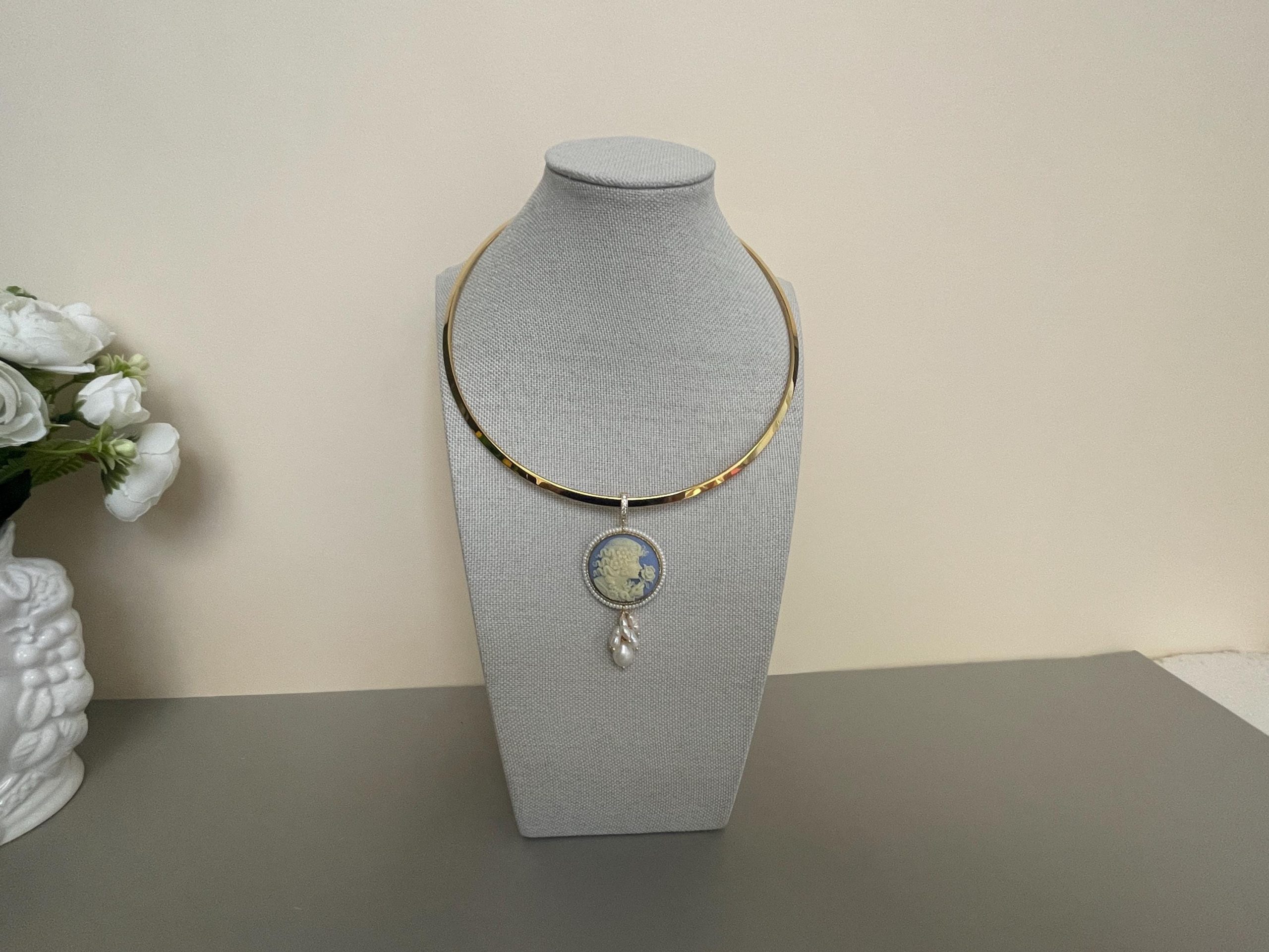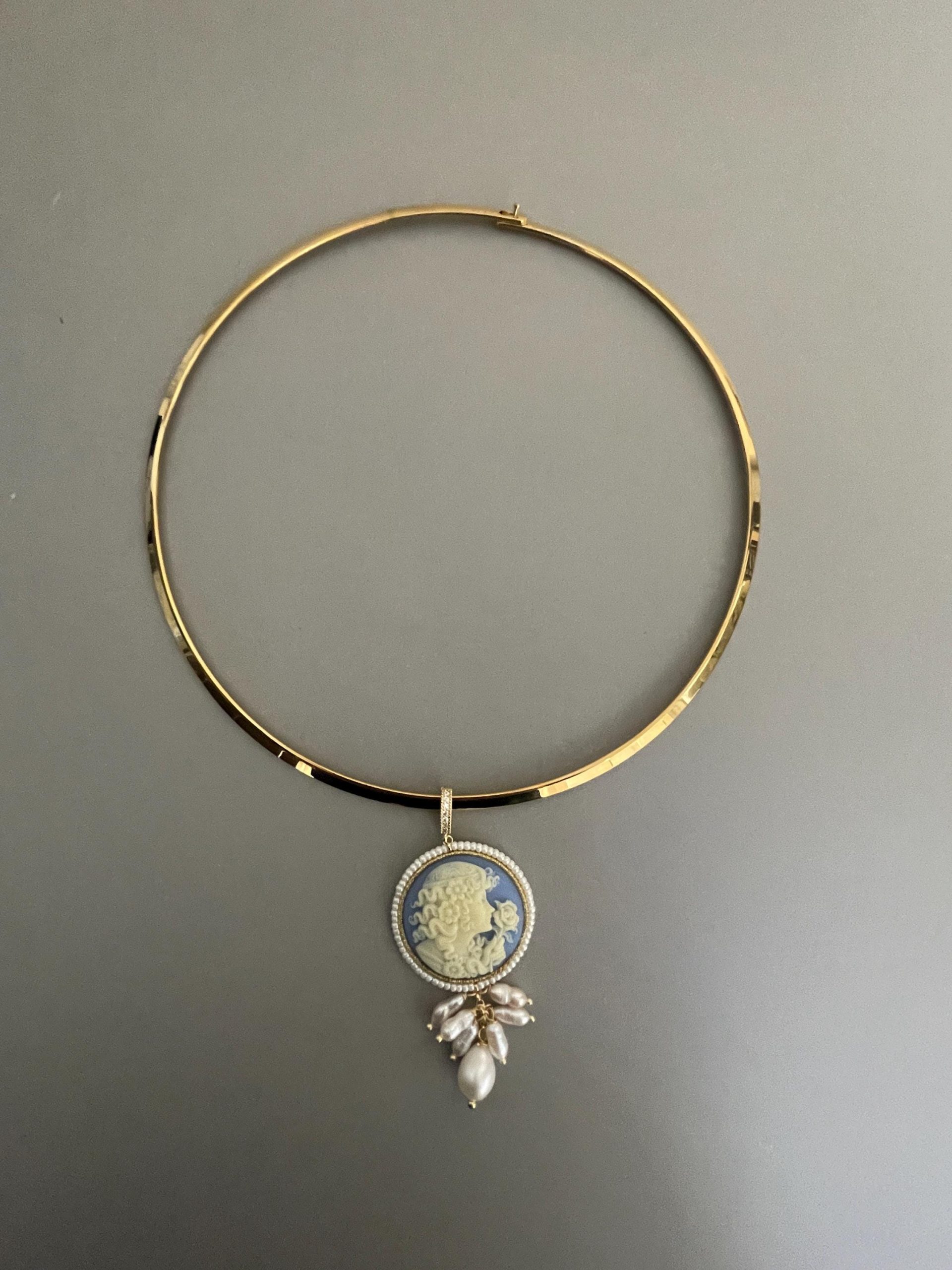 Collana rigida classica con un bel Cammeo che pende dal cerchio rigido.