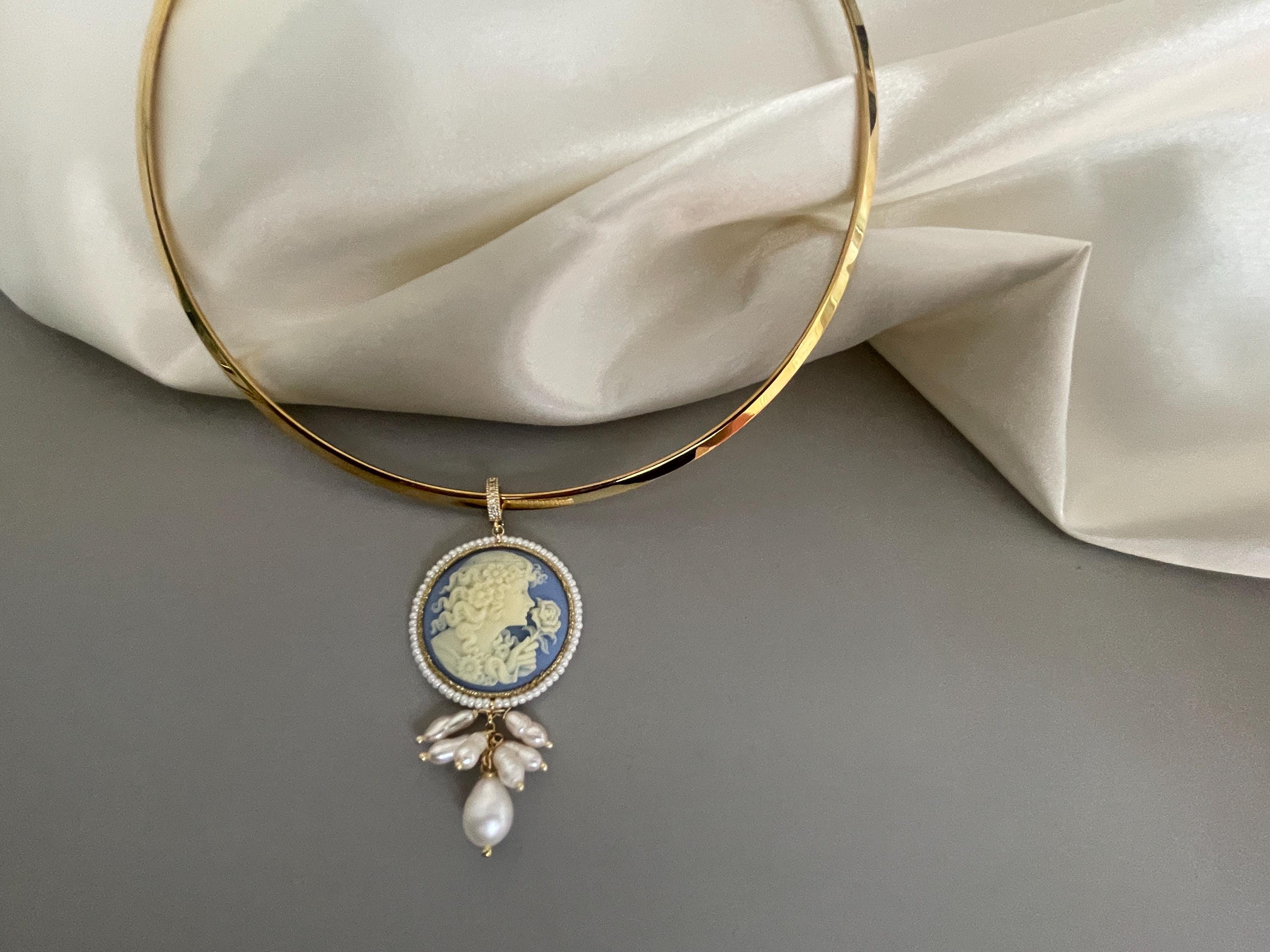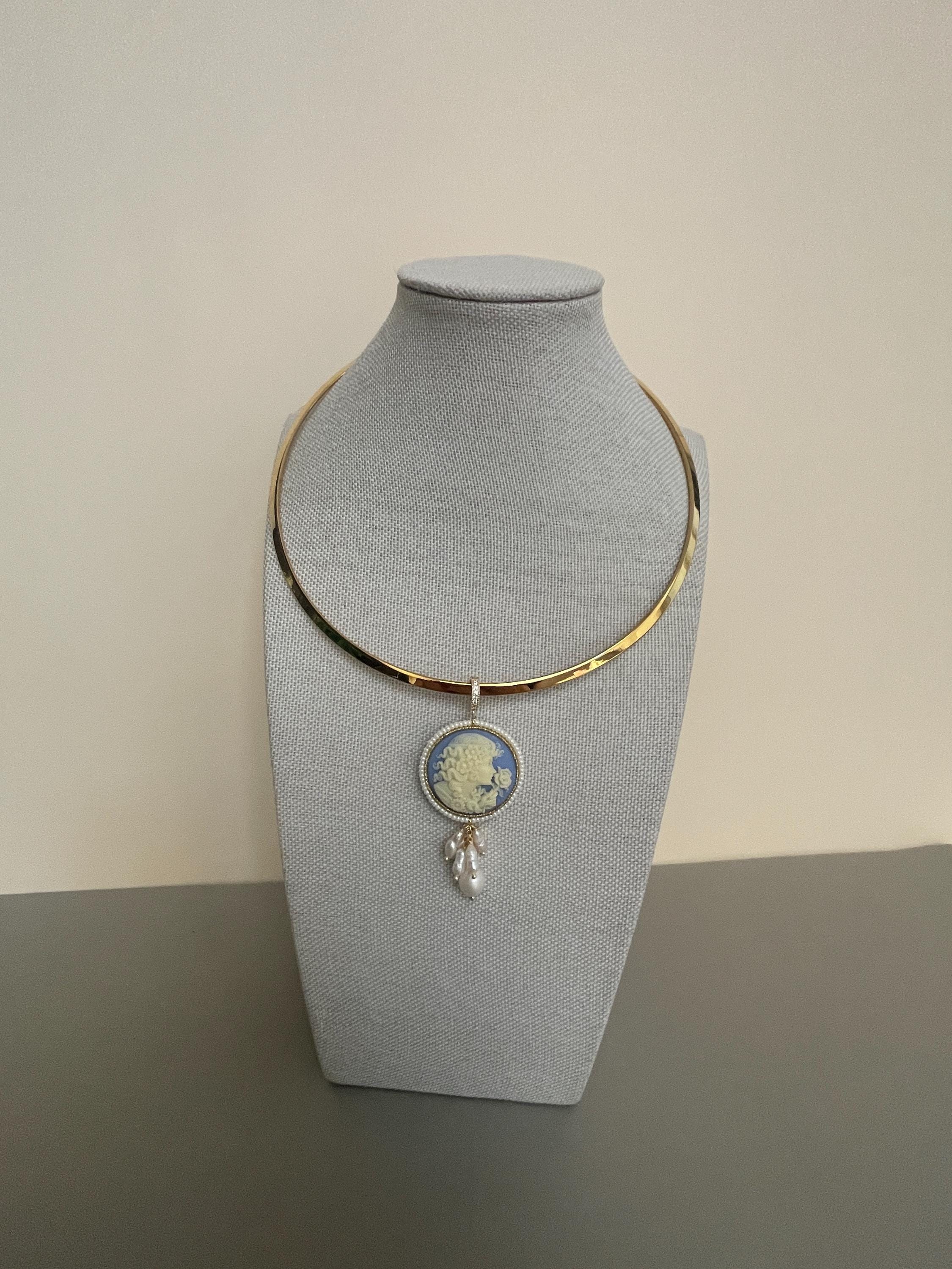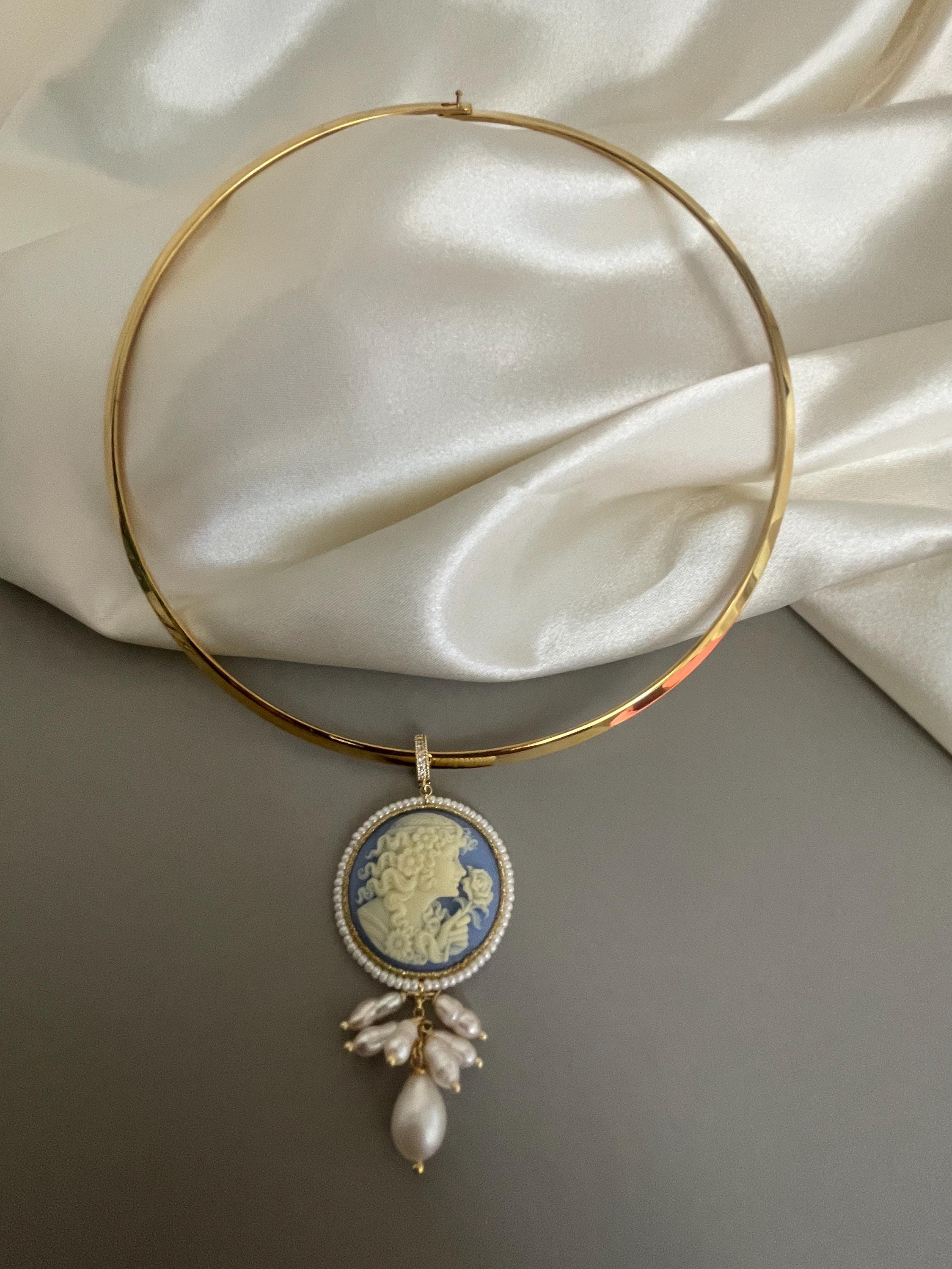 Collana rigida classica con un bel Cammeo che pende dal cerchio rigido.
