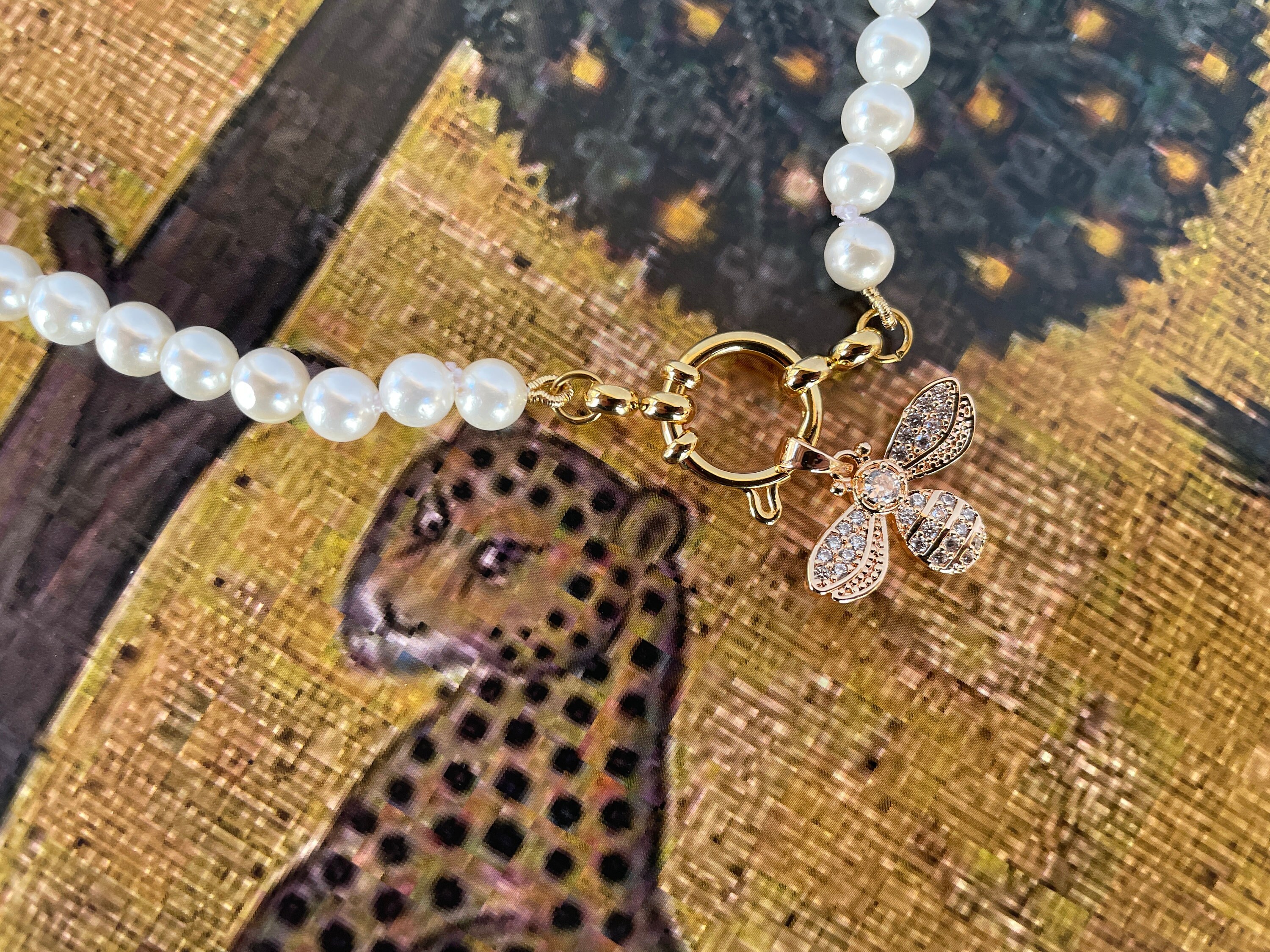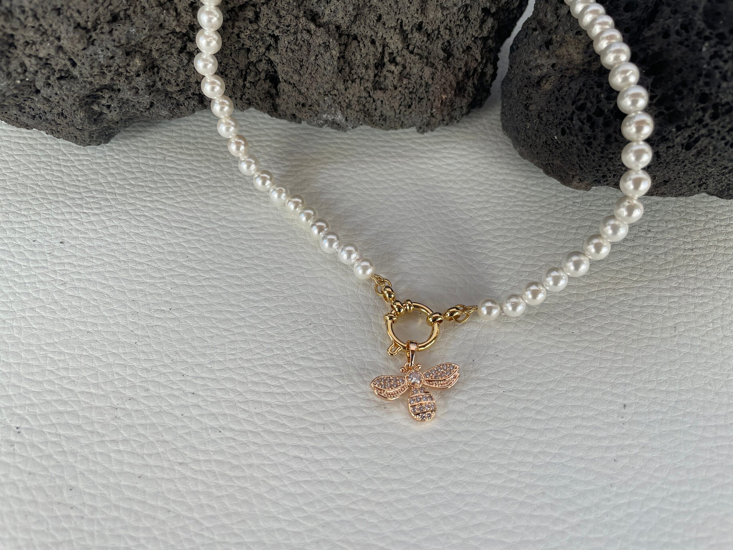 Filo di perle Maiorca e chiusura a molla ad anello in acciaio inox, placcato oro 14k.