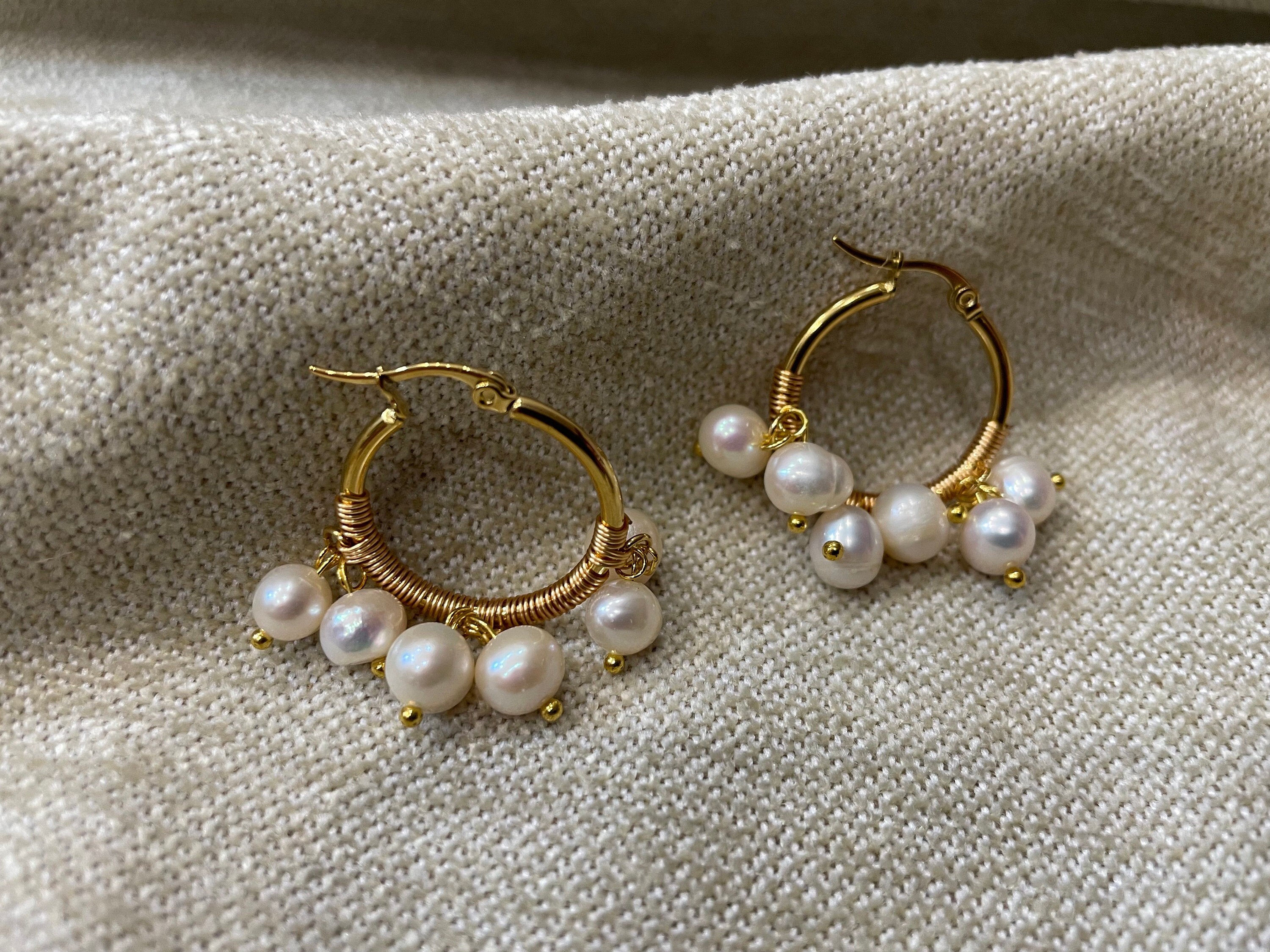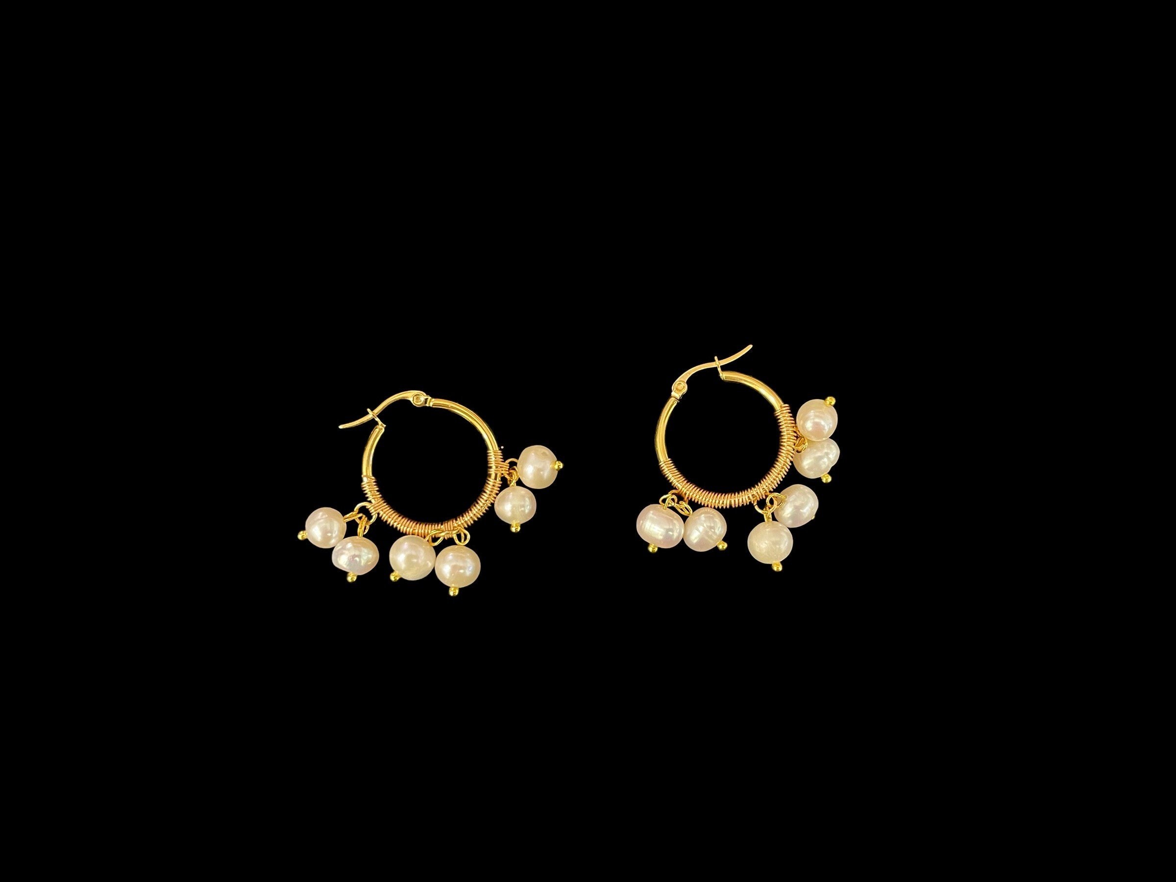 Orecchini con chiusura a scatto e pendenti 6 belle perle di fiume.