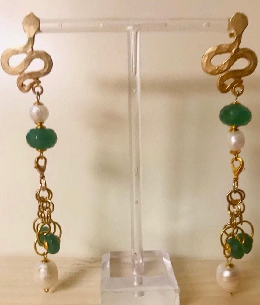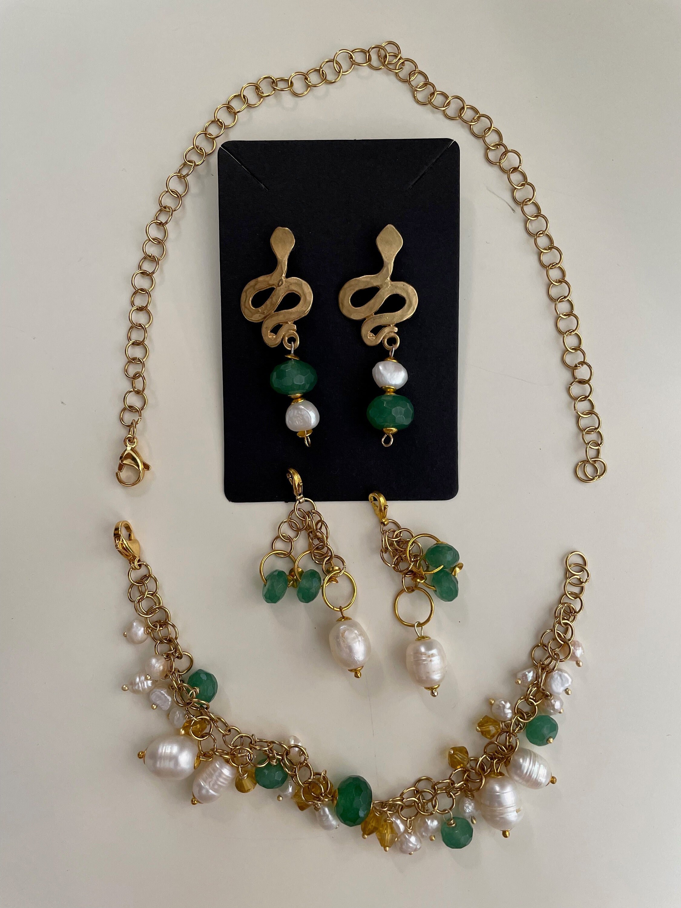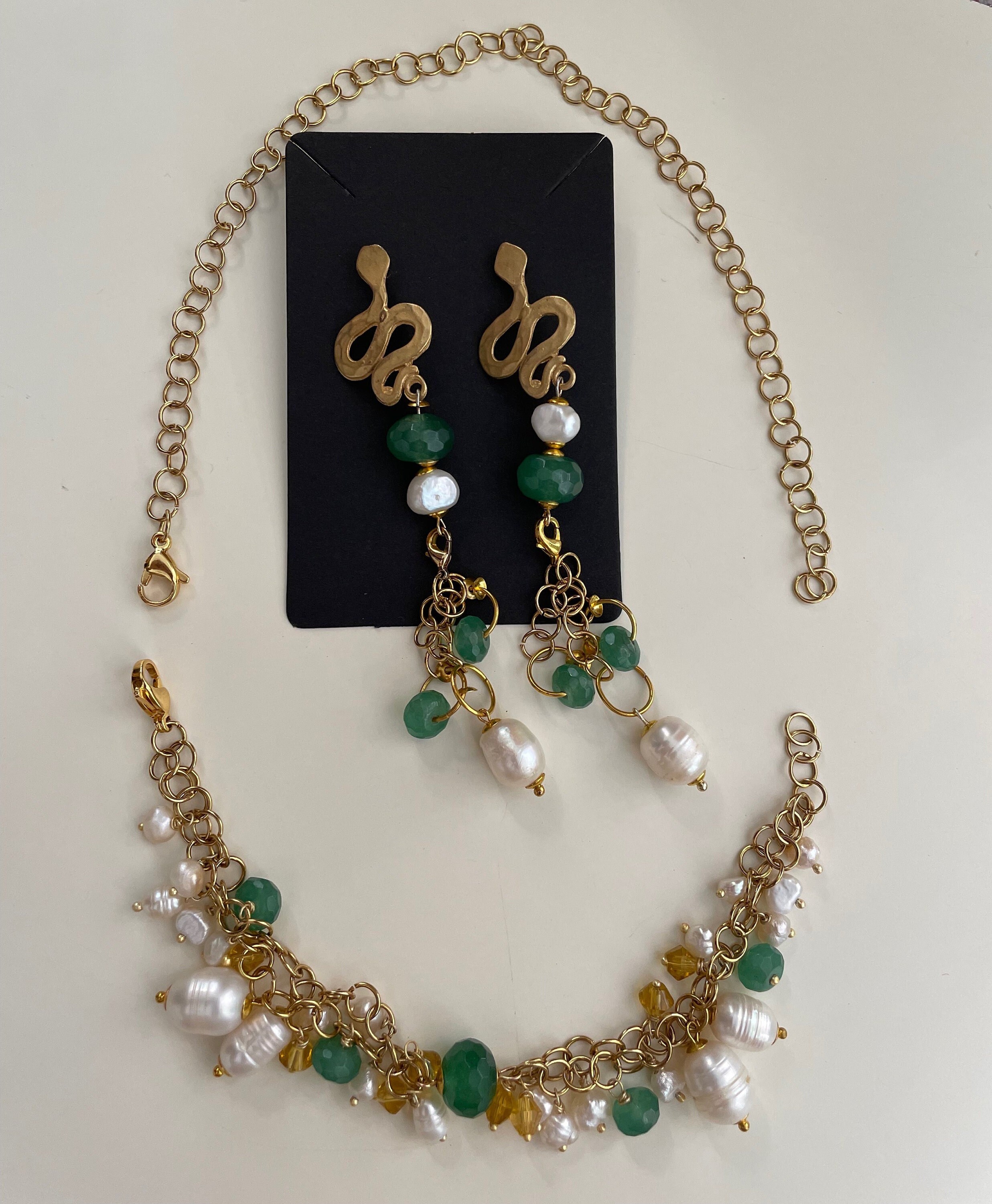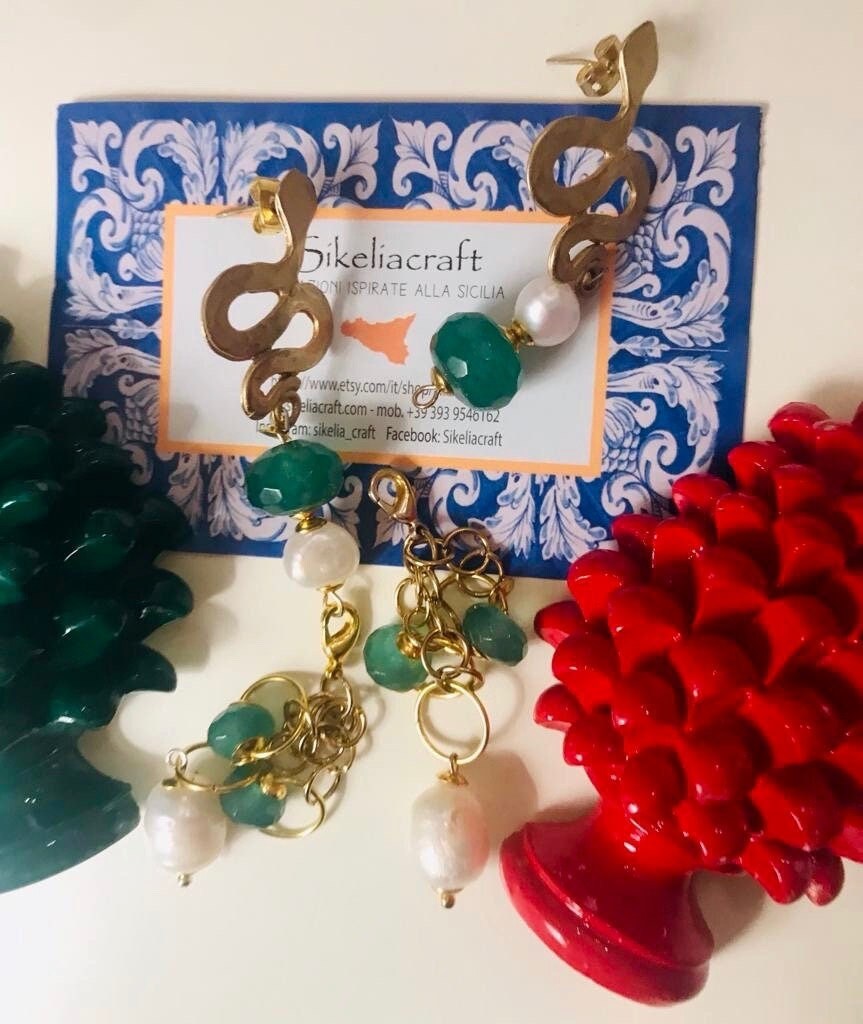 Realizzati con perle di agata verde grandi e piccole, piccole perle d’acqua dolce e perle barocche.