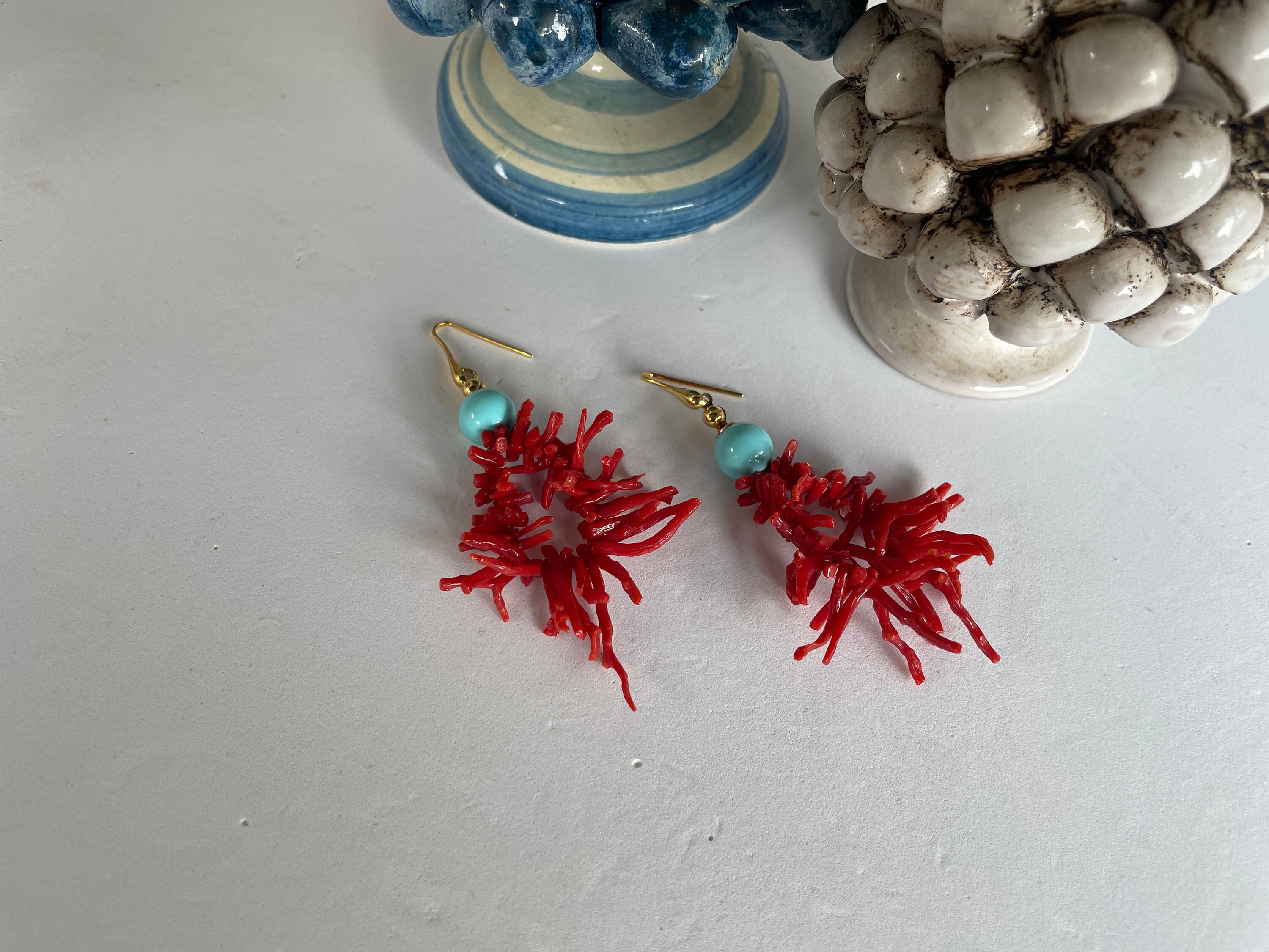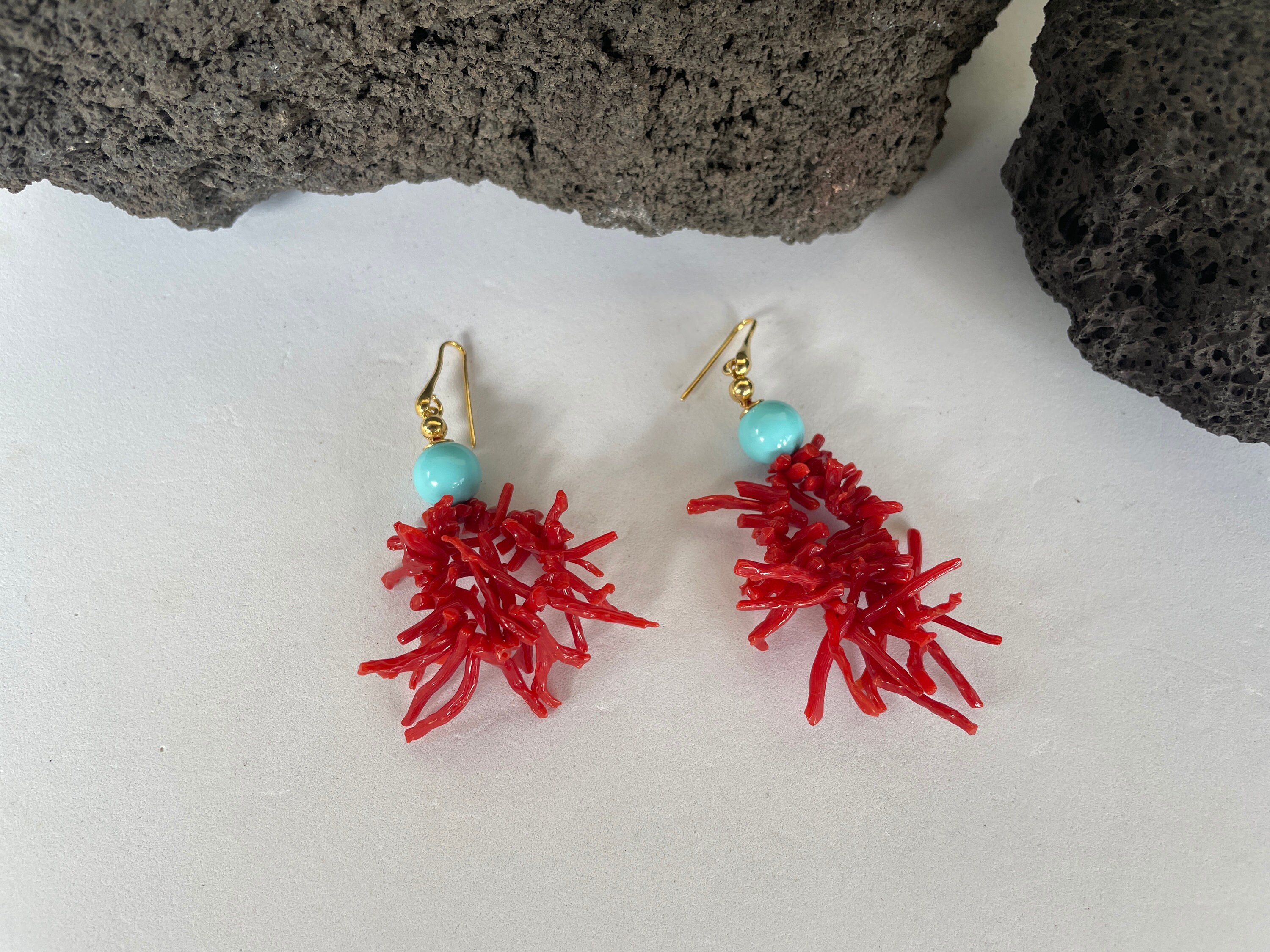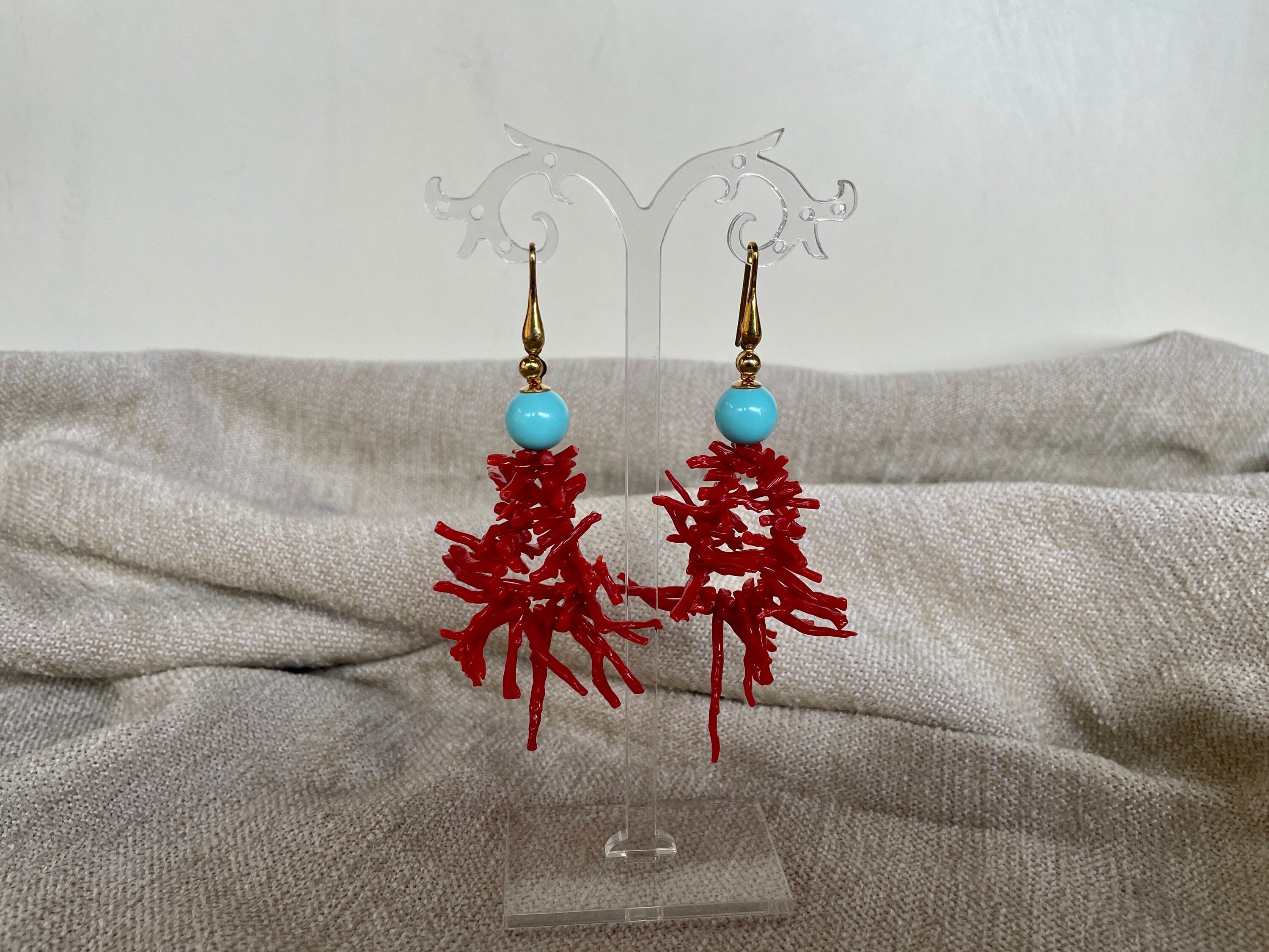 Un grande grappolo pendente fatto di rami di corallo vero rosso del Mediterraneo.