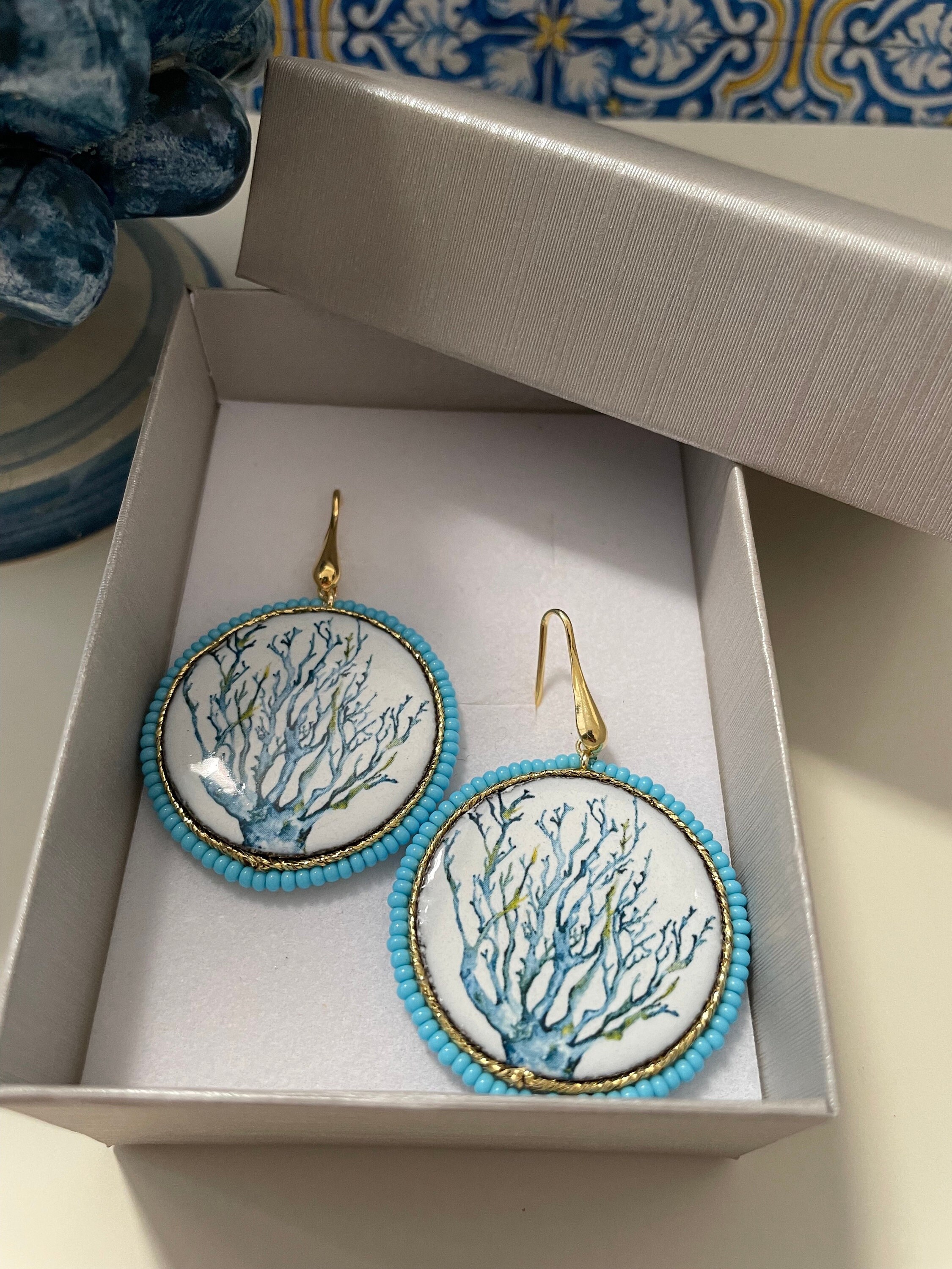 Realizzati con gancio in argento 925 placcato oro e grande mattonella tonda in ceramica di Caltagirone.