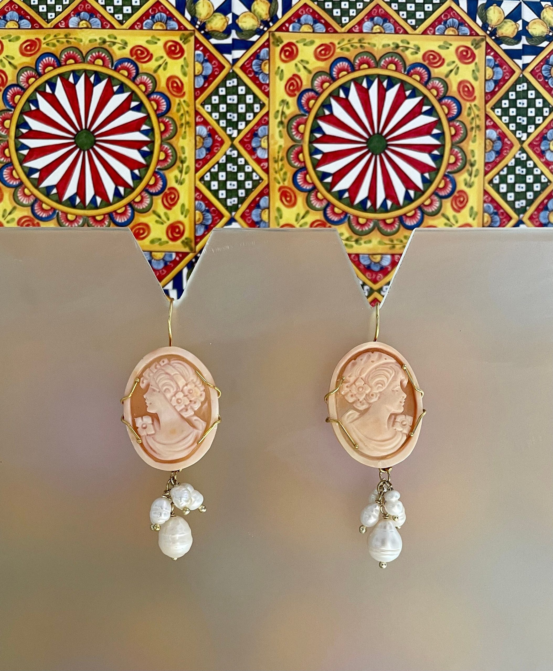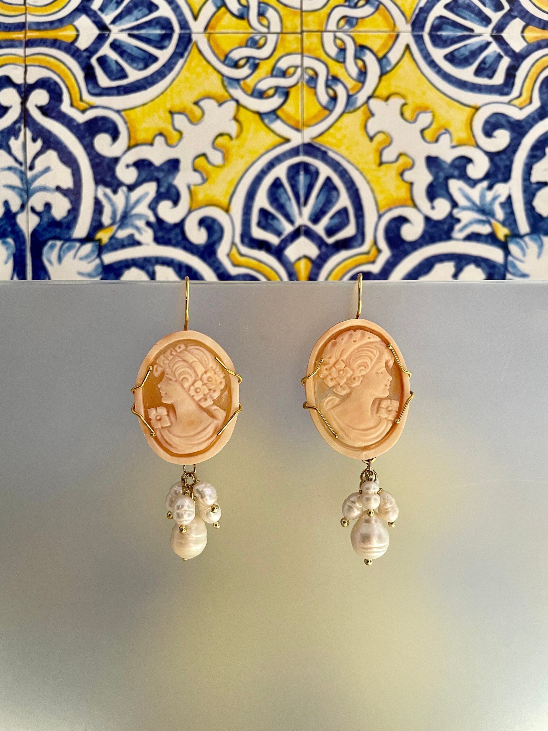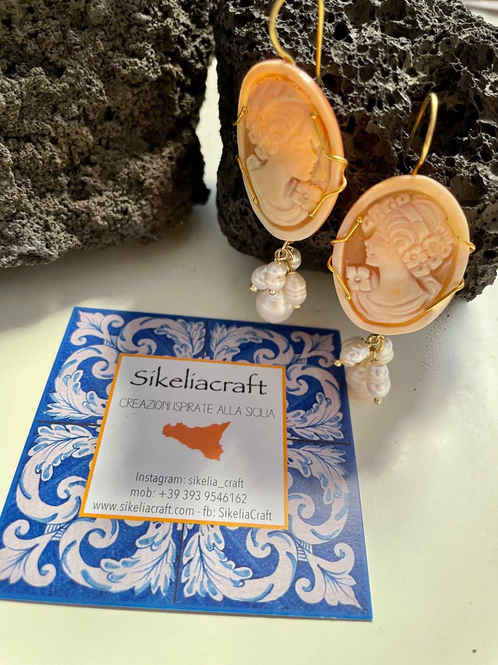 Eleganti e raffinati orecchini siciliani realizzati con splendidi Cammei ovali.