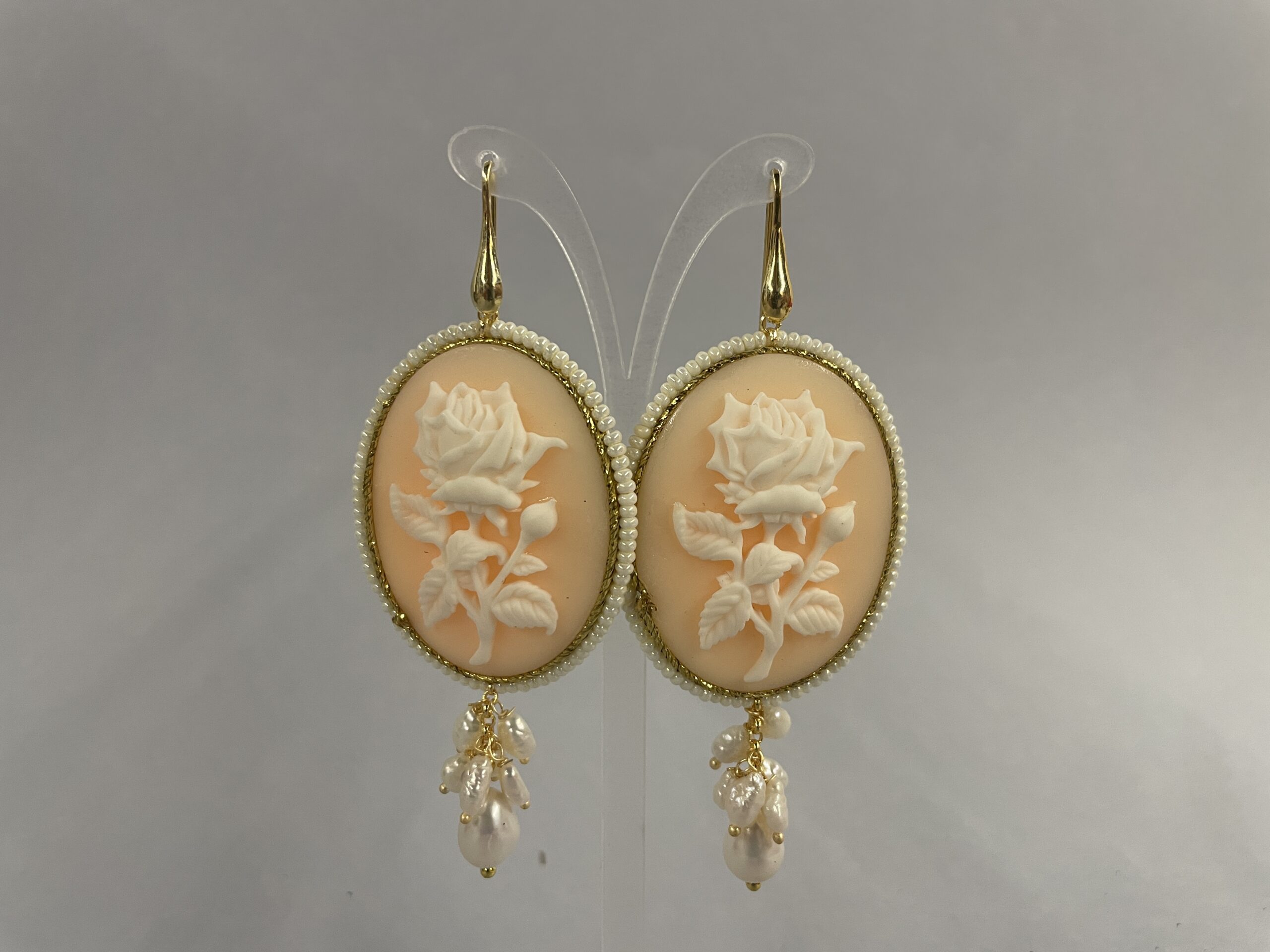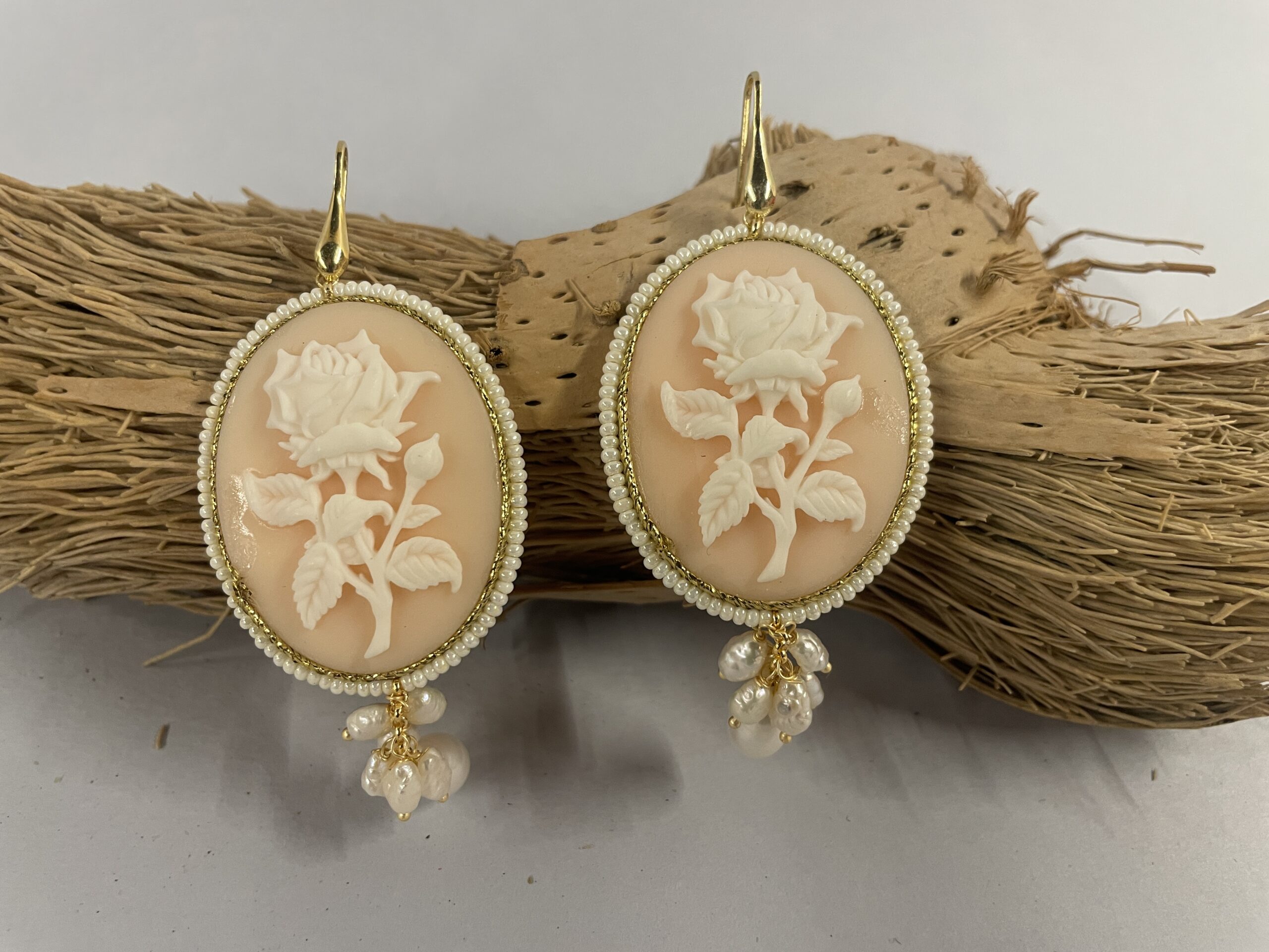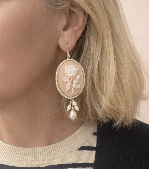Orecchini con cammeo ovale effetto fiore rosa, un gioiello elegante e femminile ispirato allo stile classico reinterpretato in chiave contemporanea.