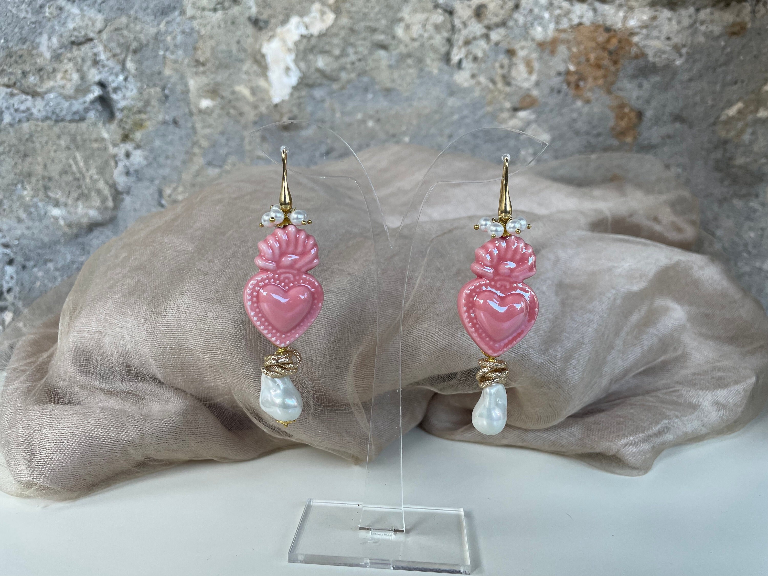 Composti da gancio in ottone e Cuore Sacro in Ceramica di Caltagirone di colore Rosa.