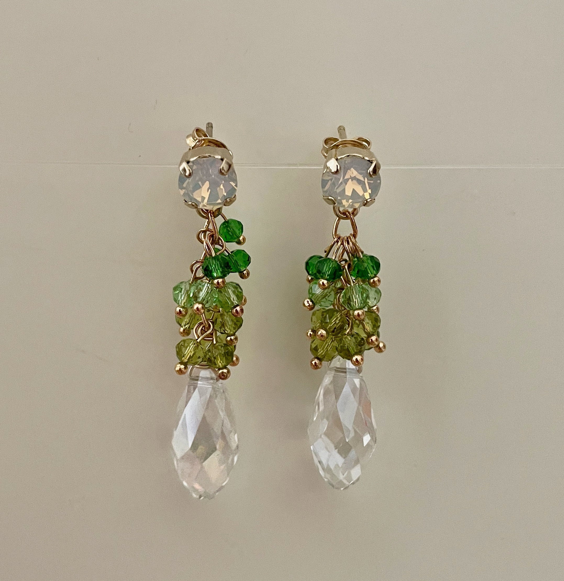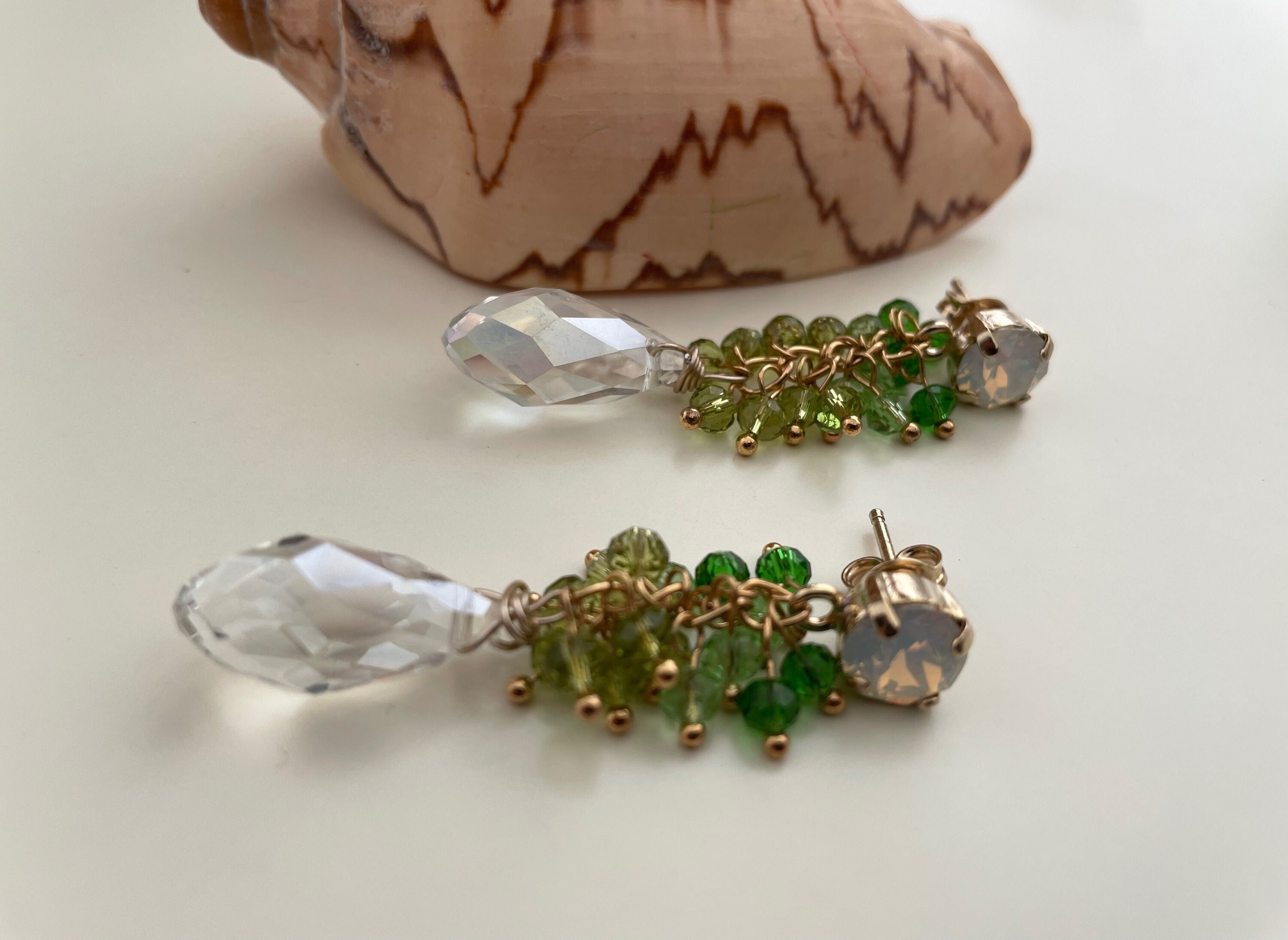 Realizzati con perno Swarovski e grappolo di perline in topazio e tormalina rosa.