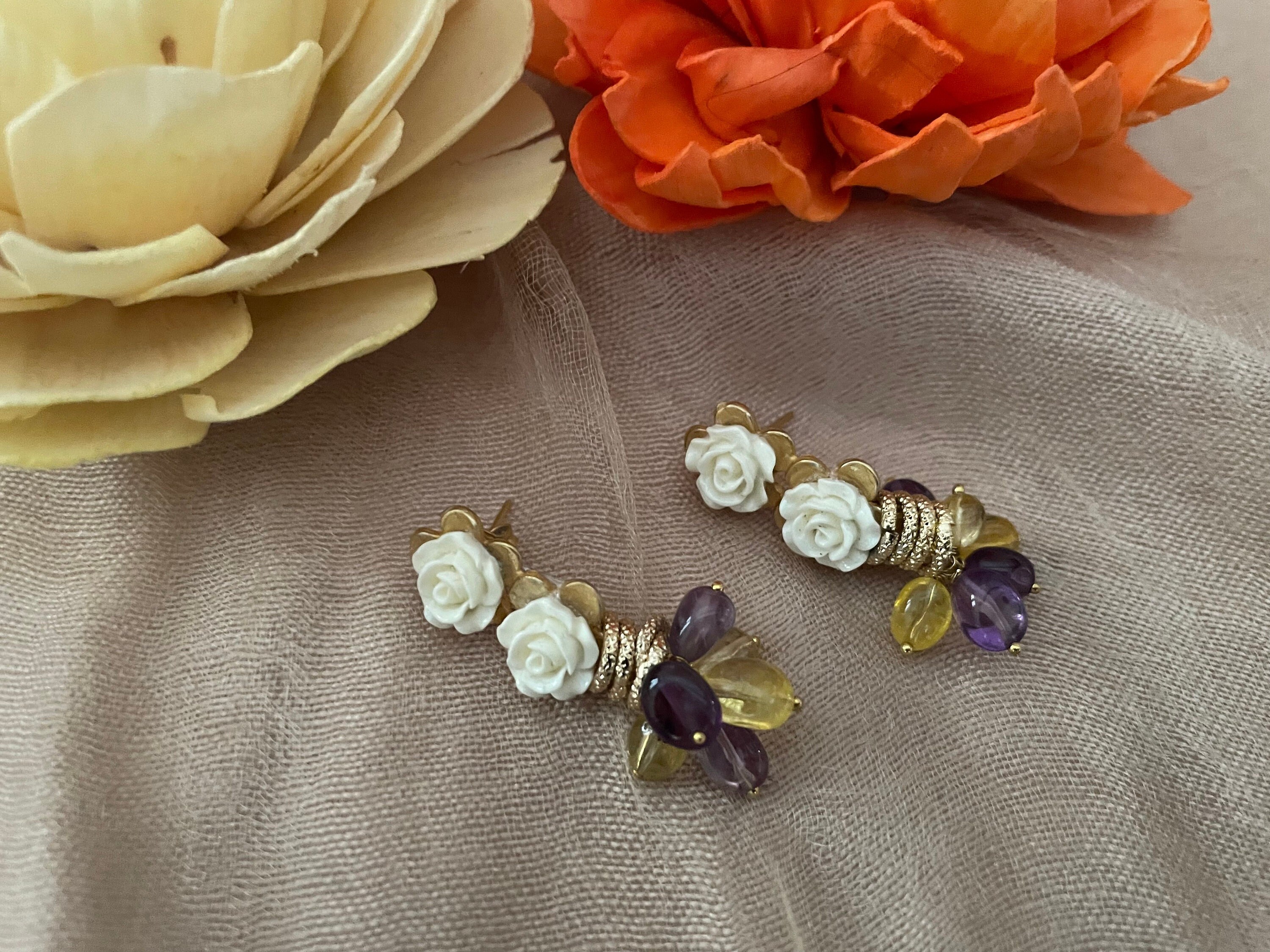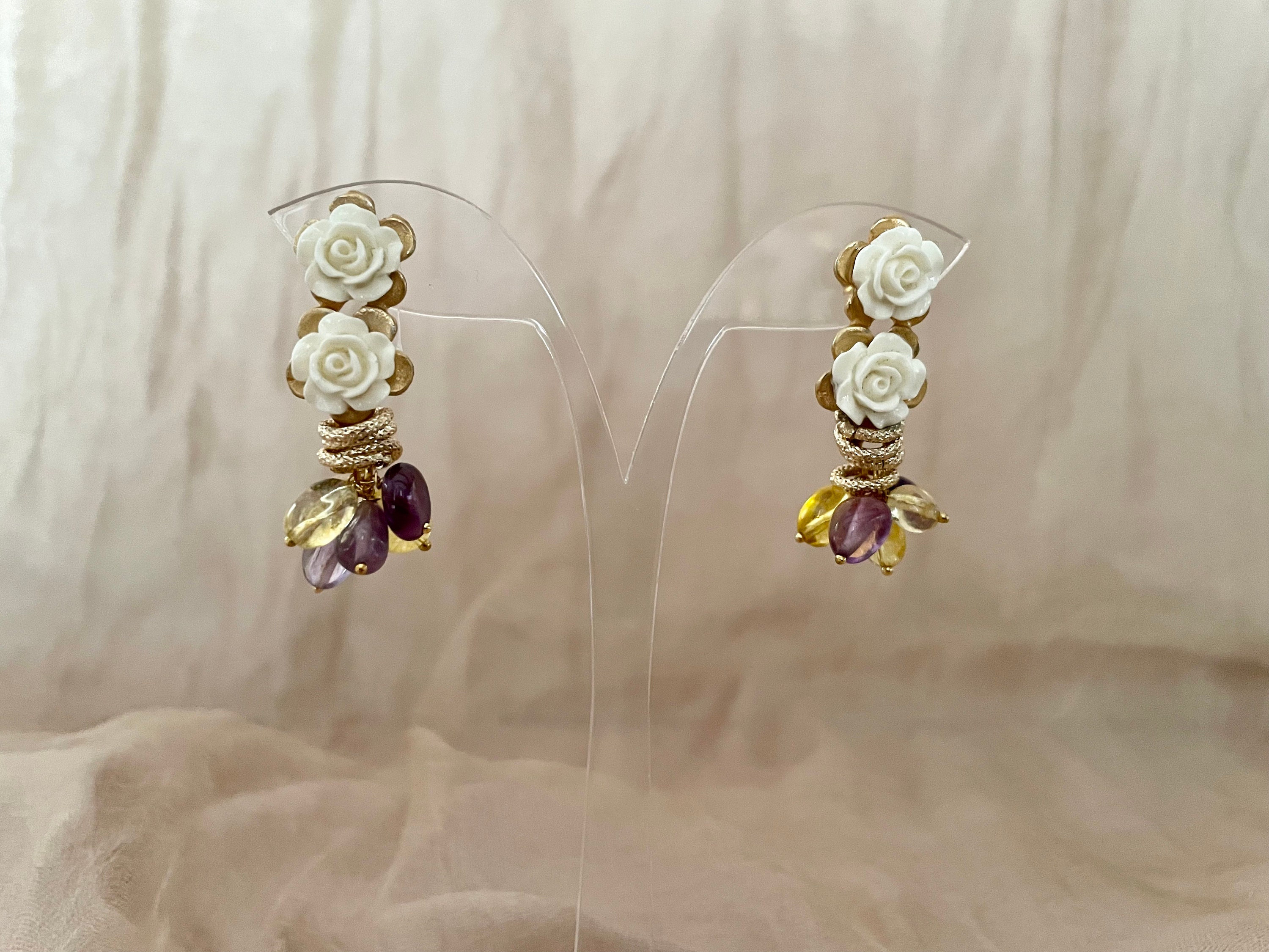 Realizzati con perno a doppio fiore in Ottone, rivestito con due rose bianche in resina.