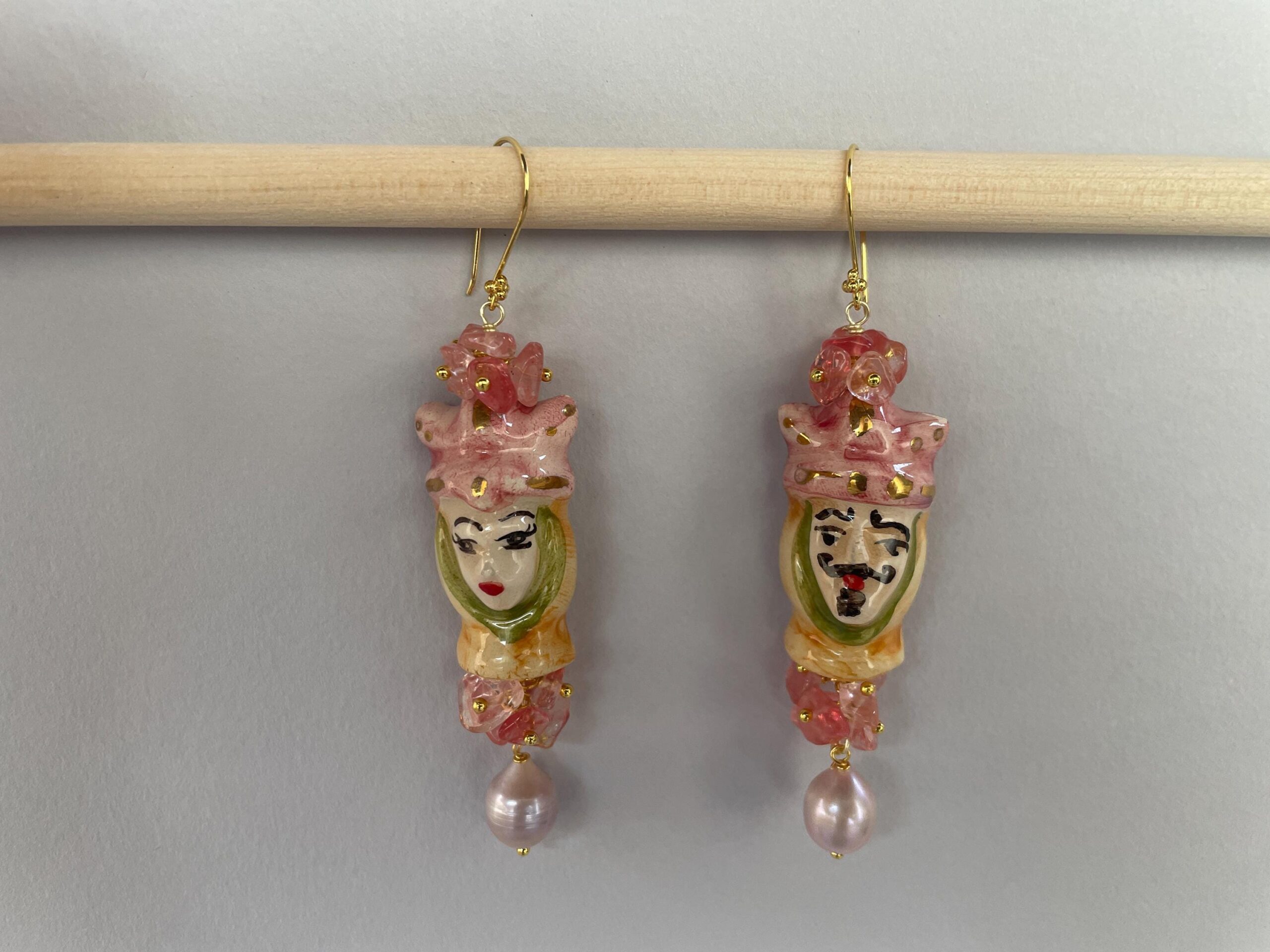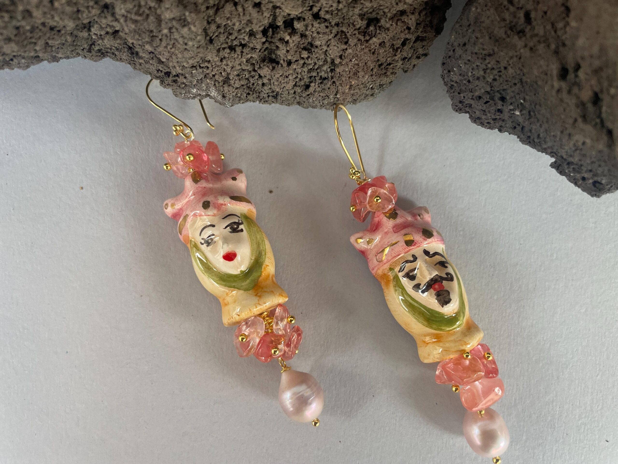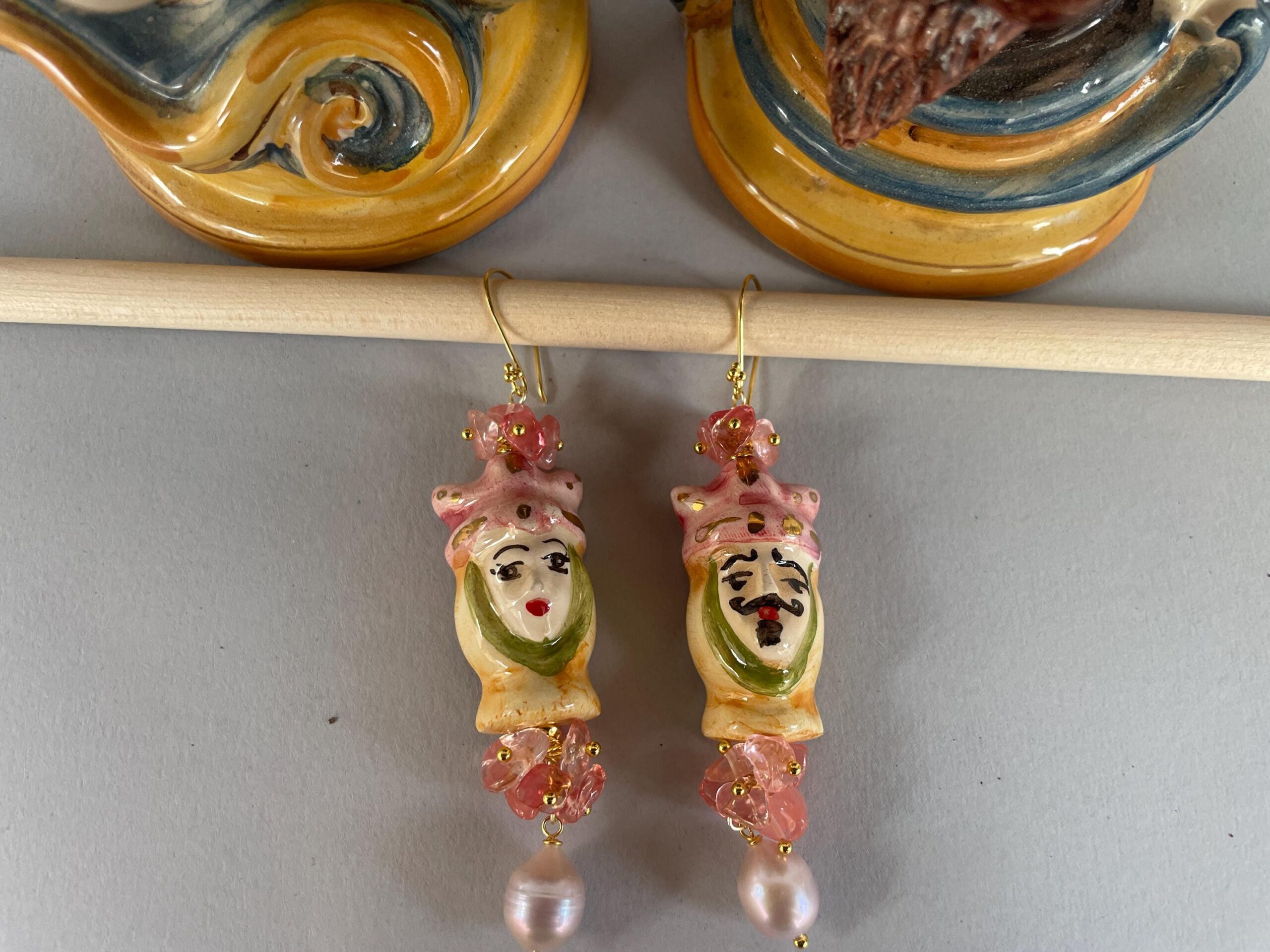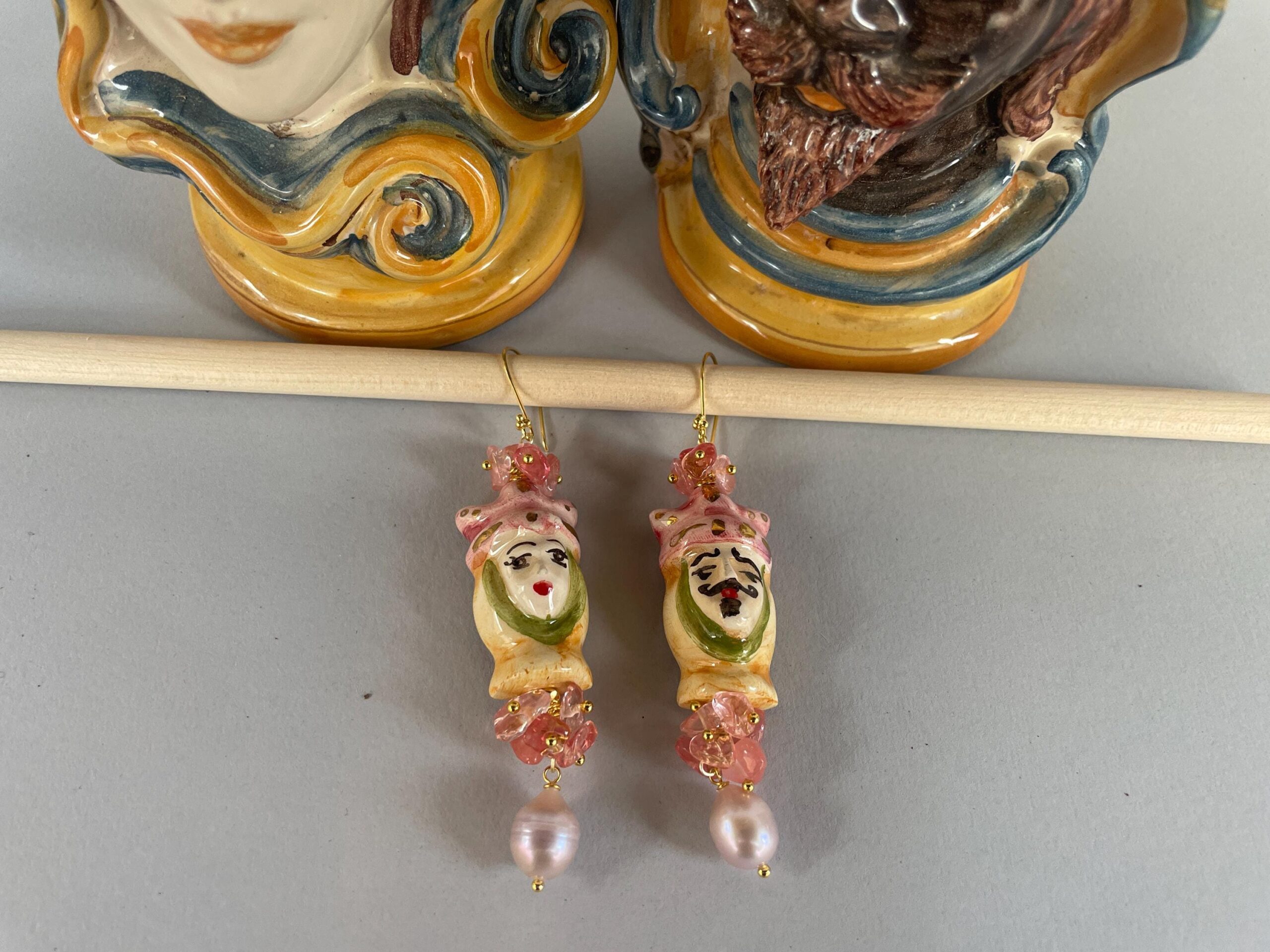 Caratteristici orecchini siciliani con una bella coppia di Teste di Mori che sono un simbolo iconico della Sicilia.