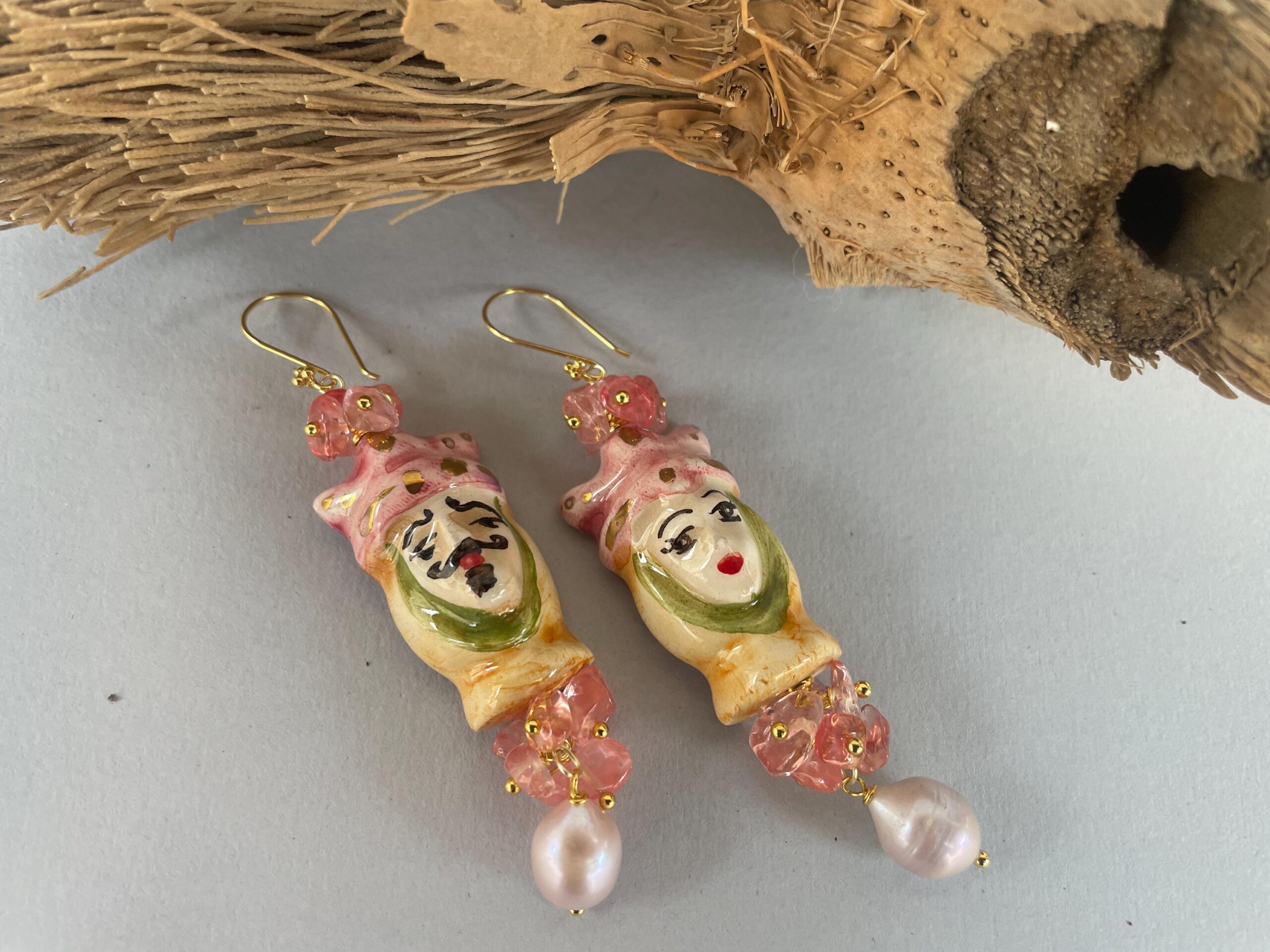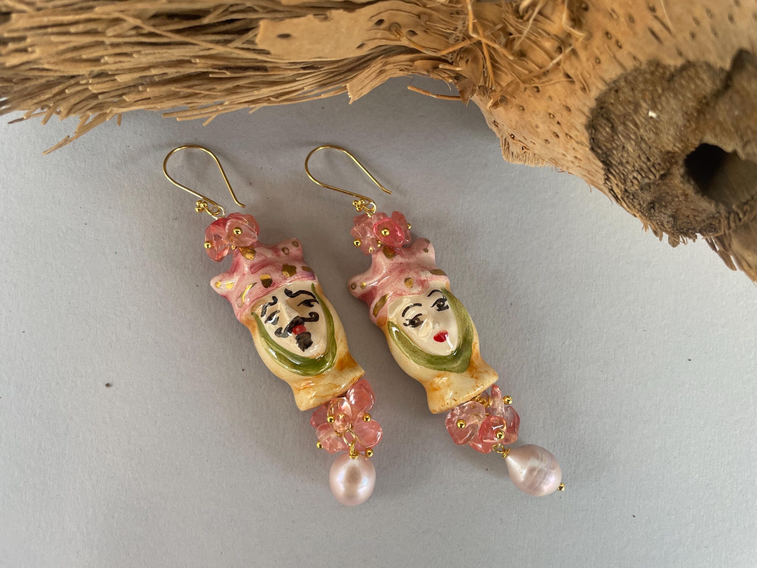 Teste di Mori di ceramica di Caltagirone dipinti a mano sui toni del rosa.