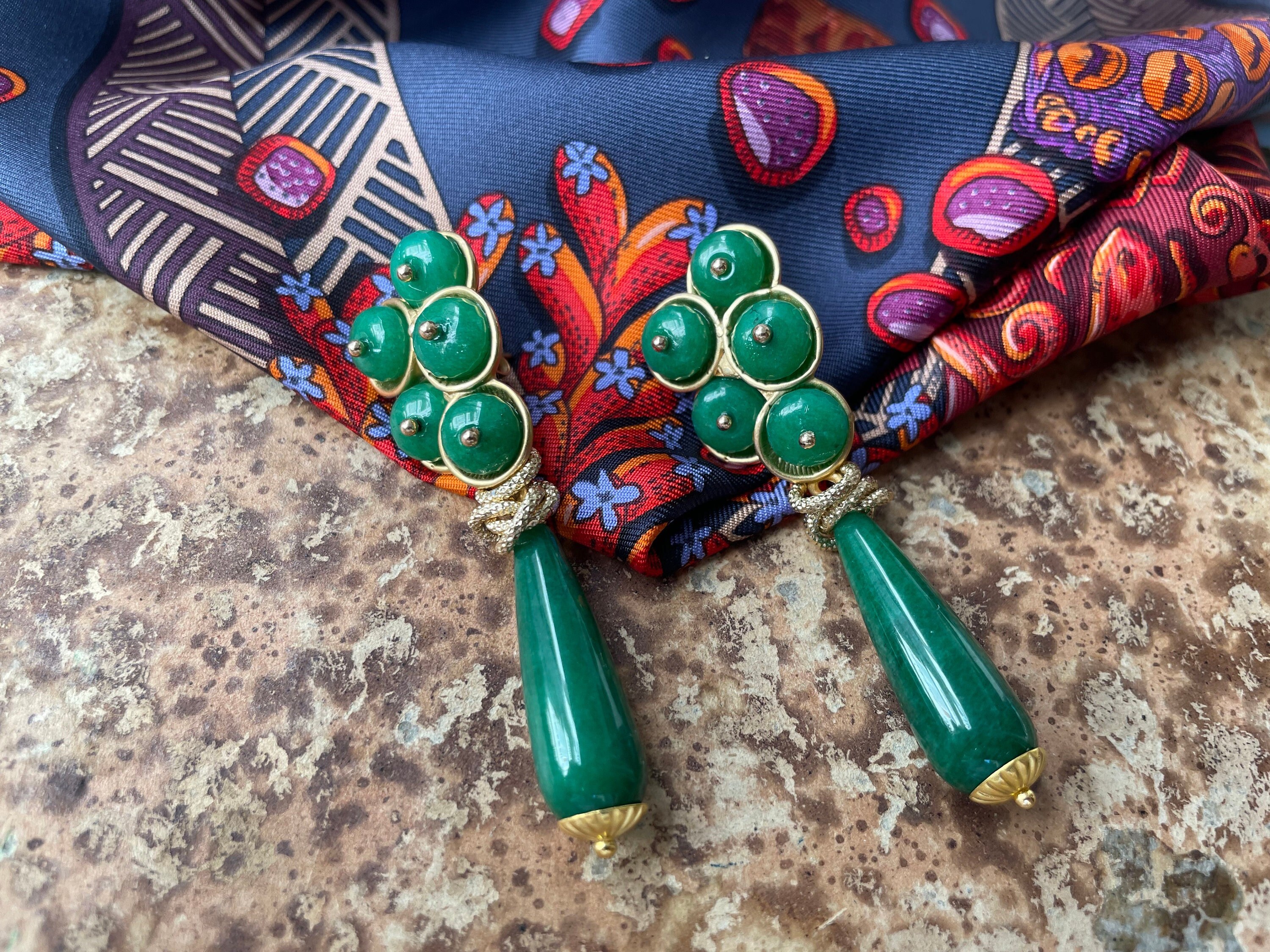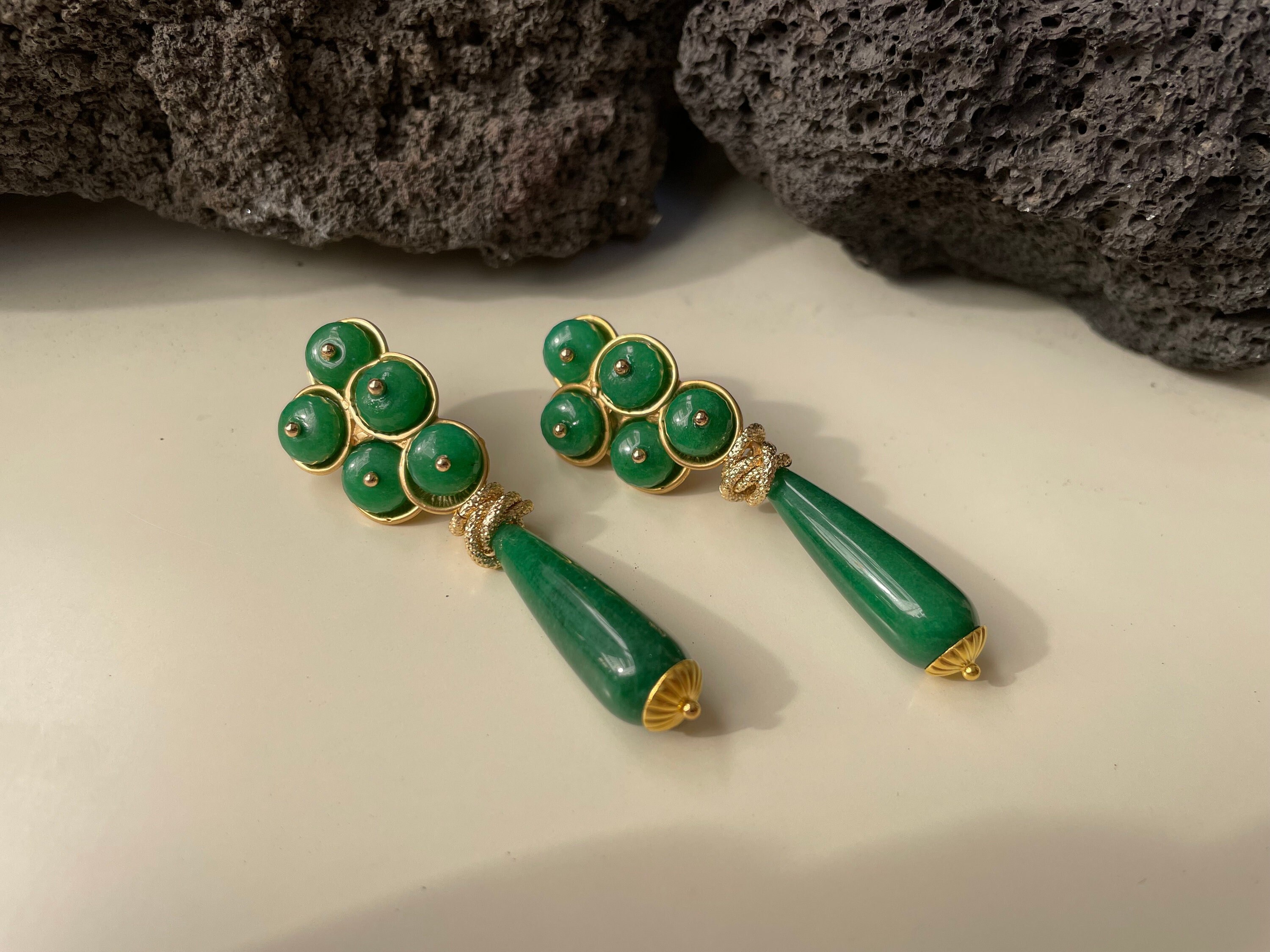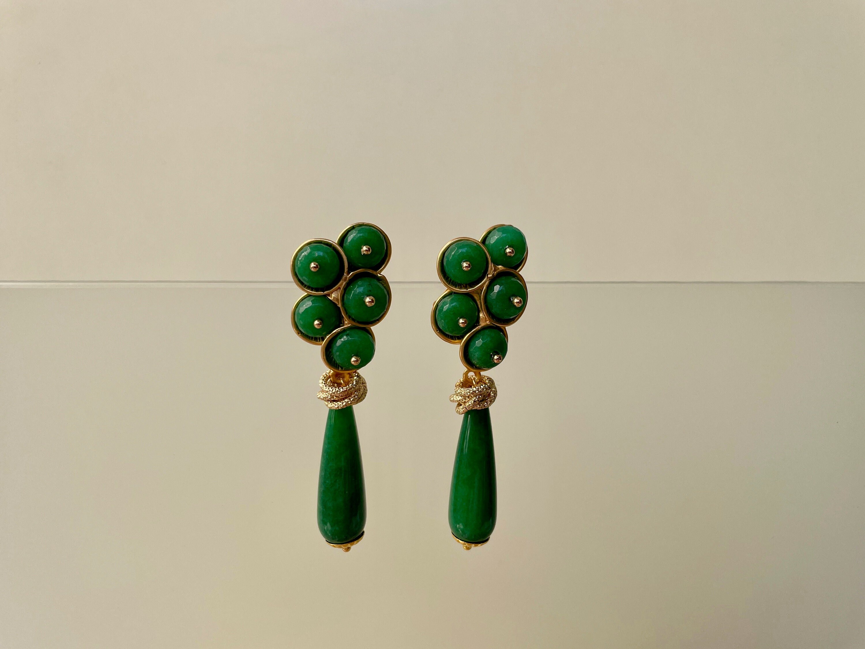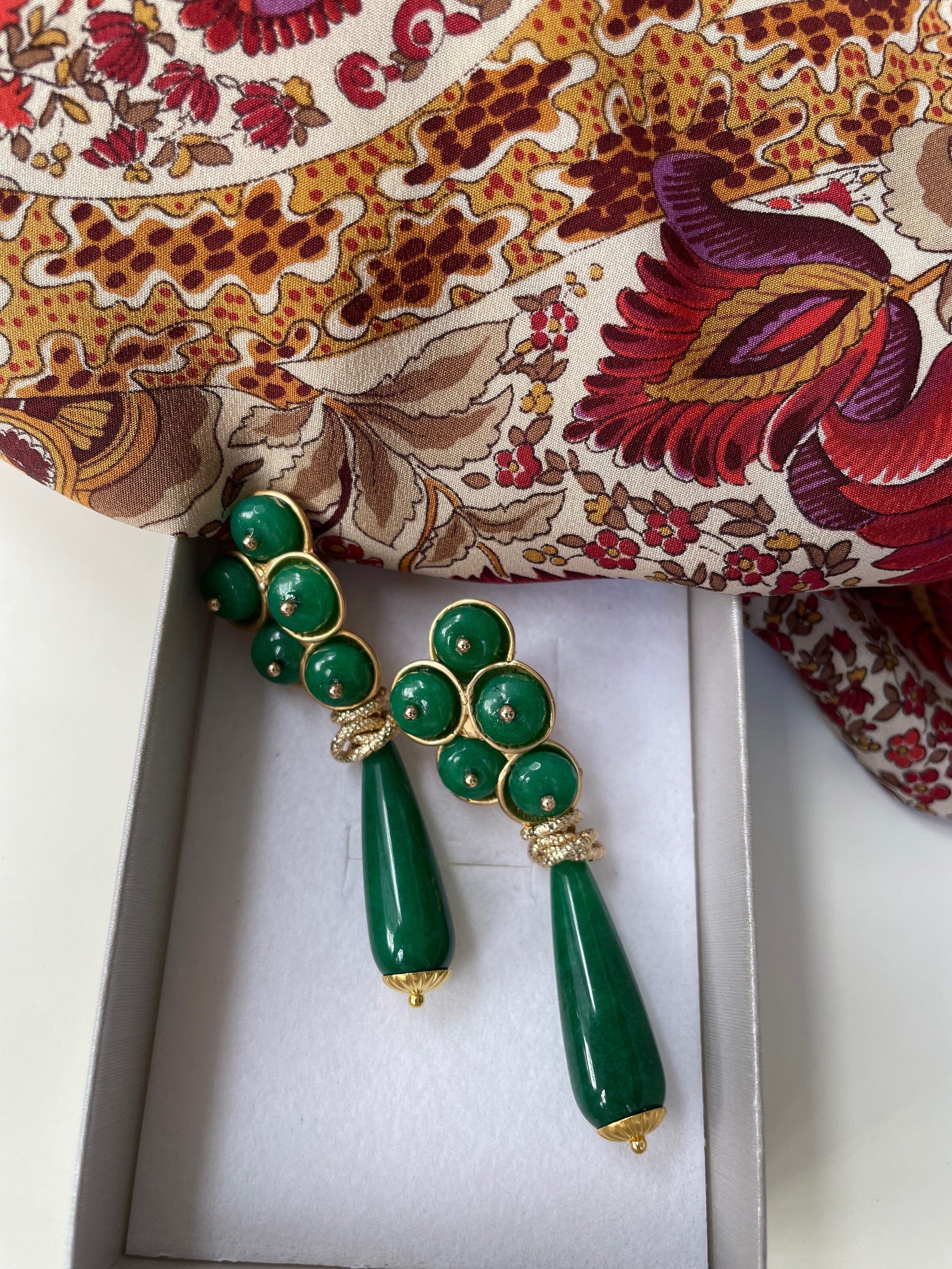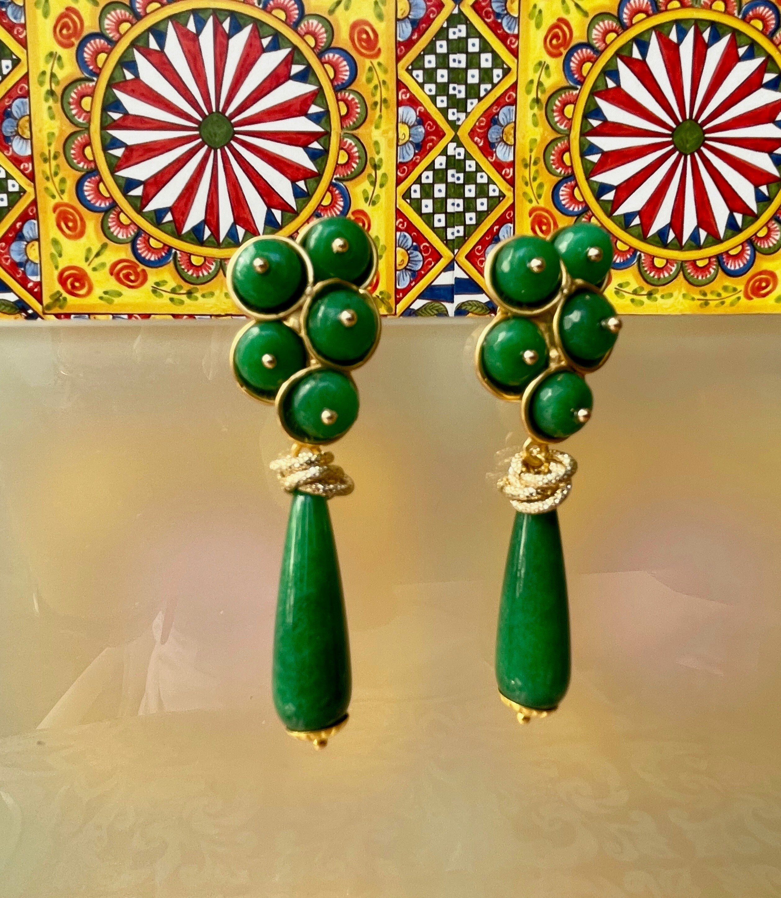 Realizzati con perno rivestito da cinque perle di Agata verde e pendente una perla a goccia di Agata verde.