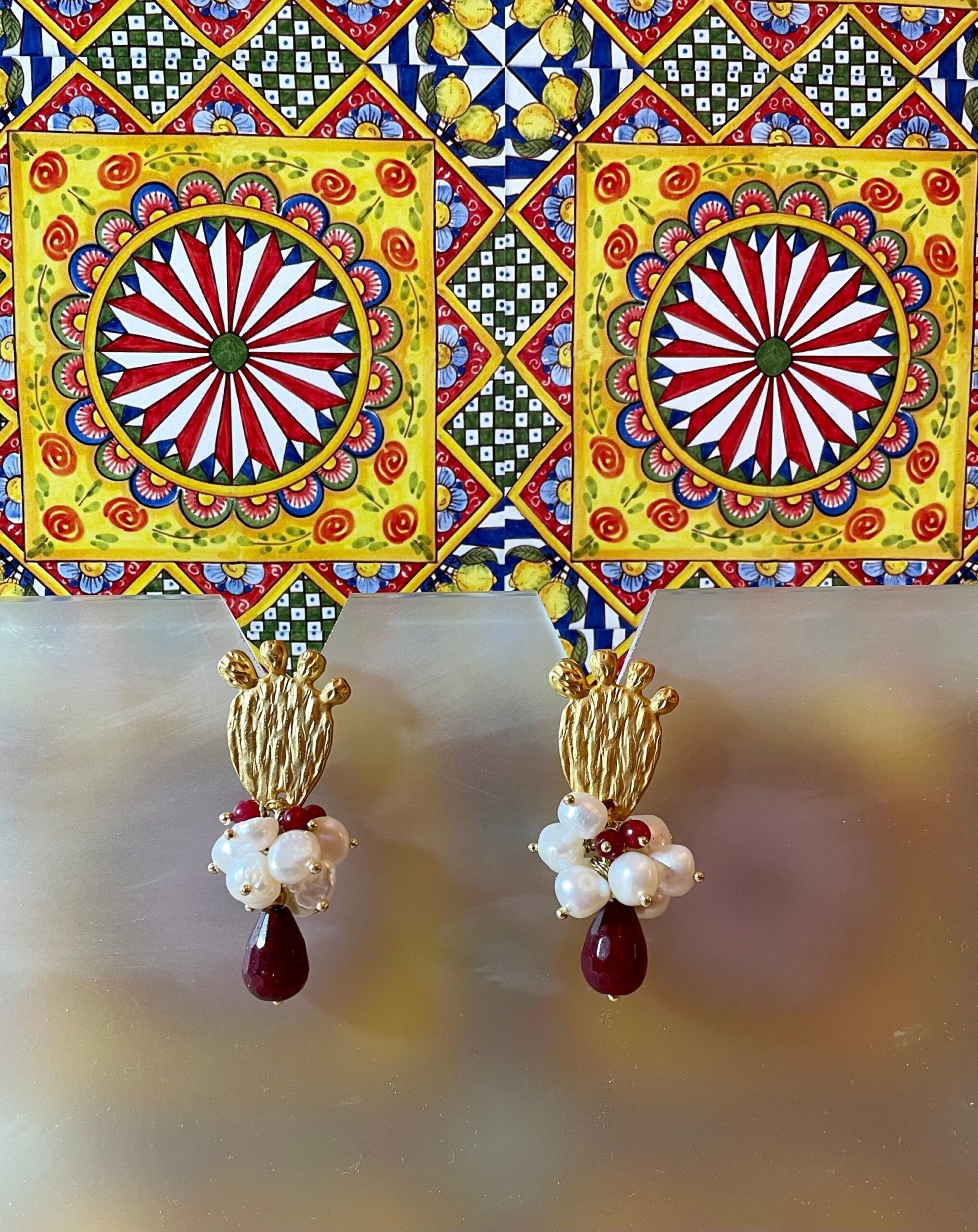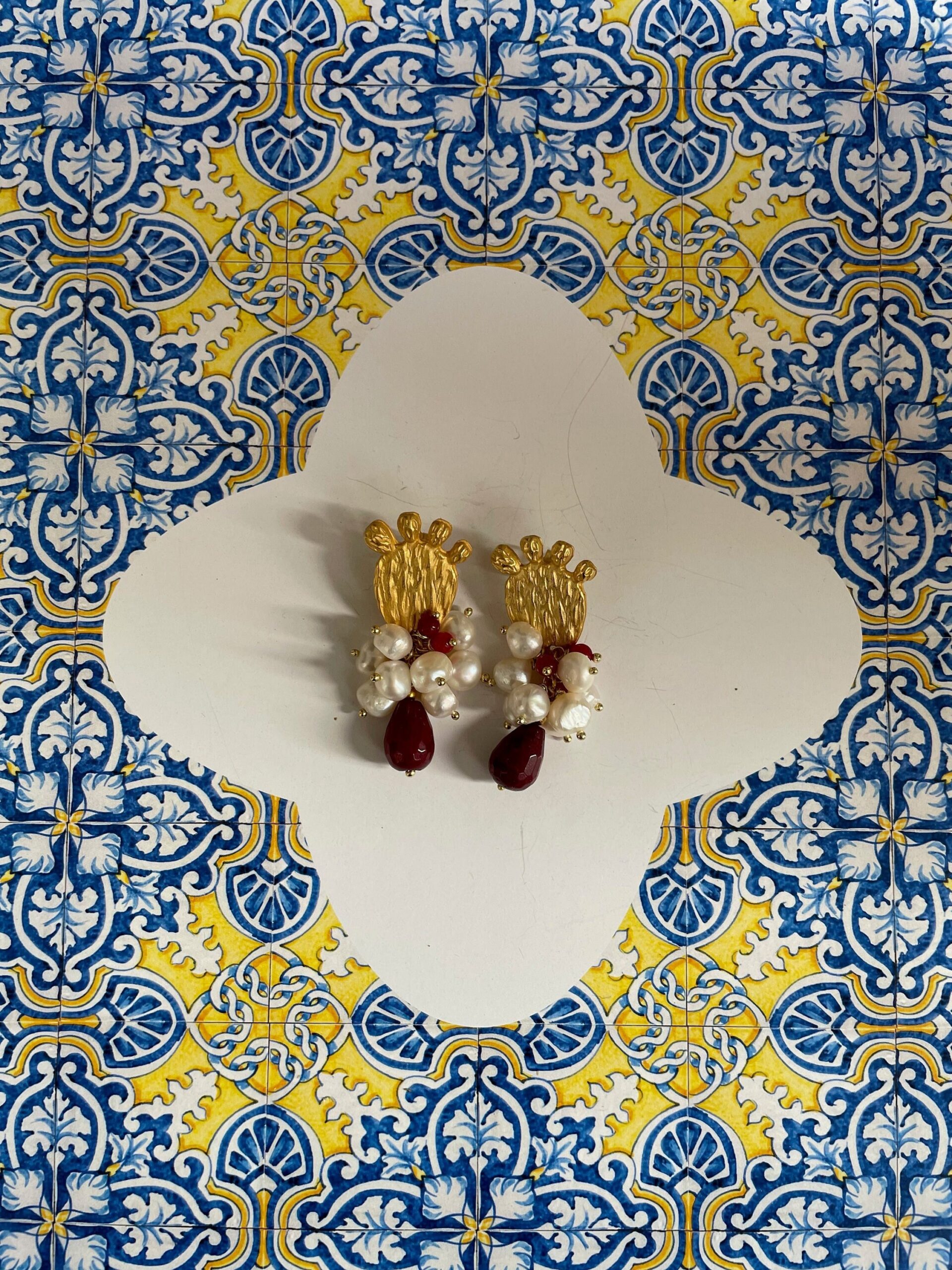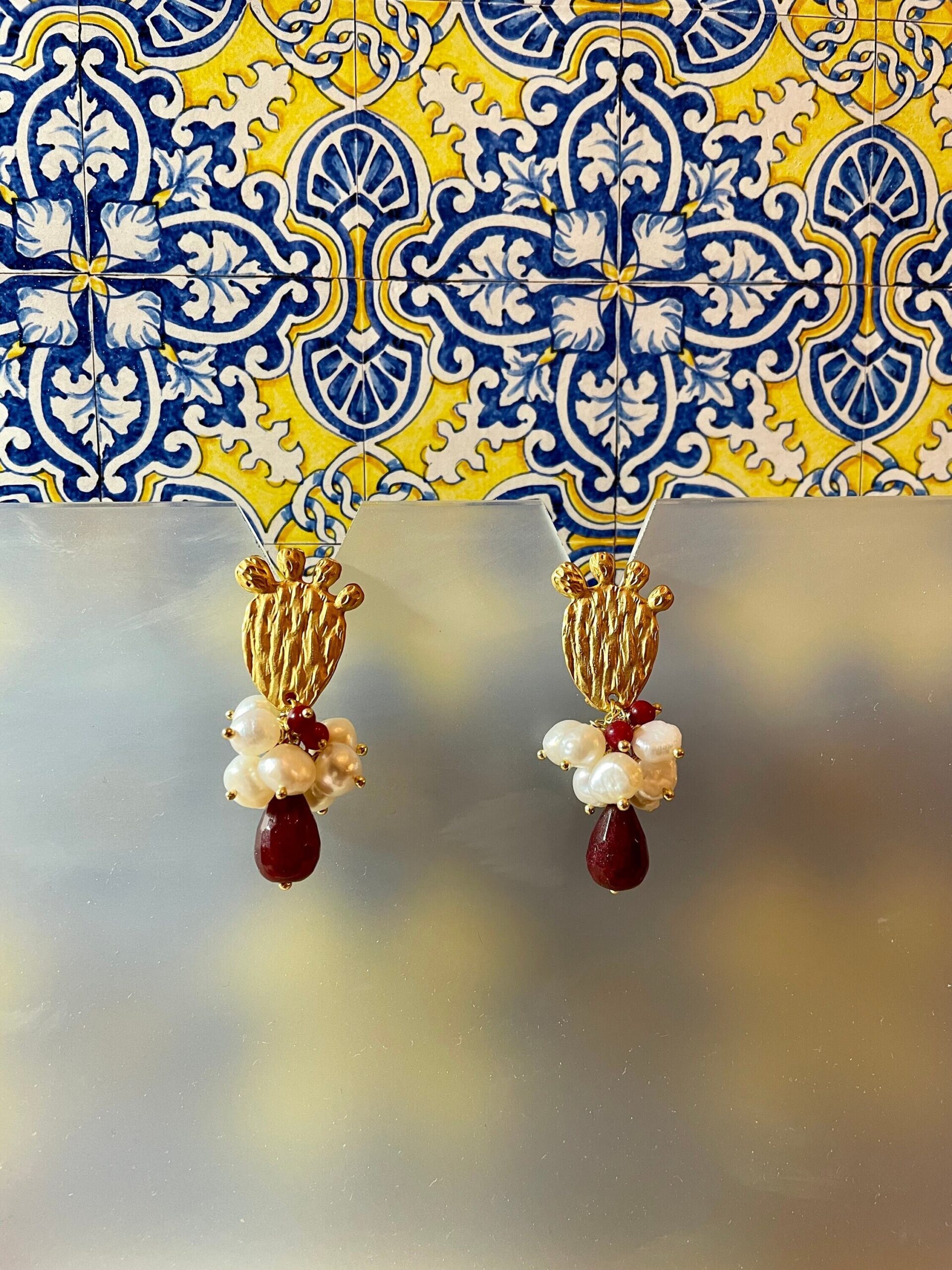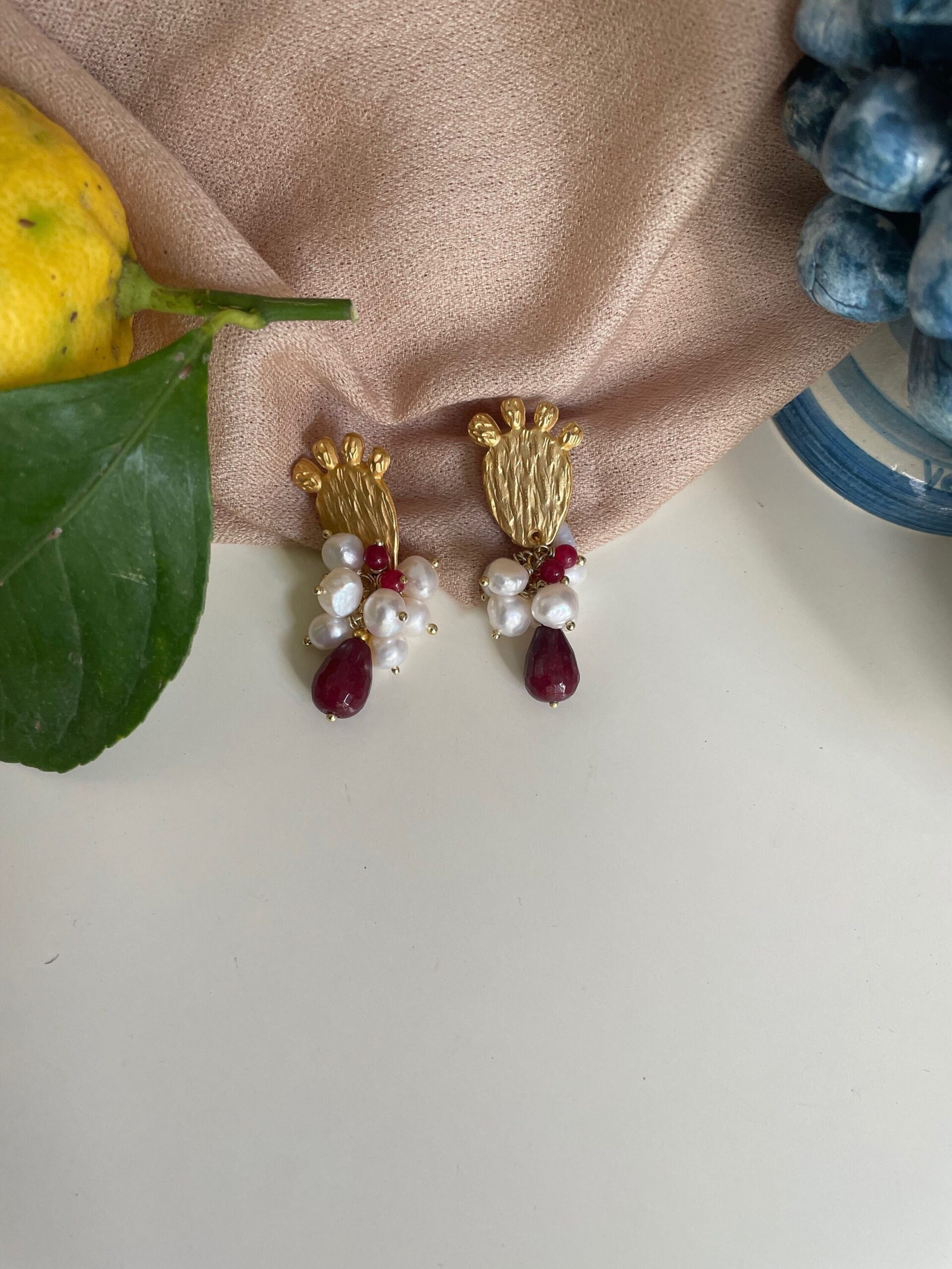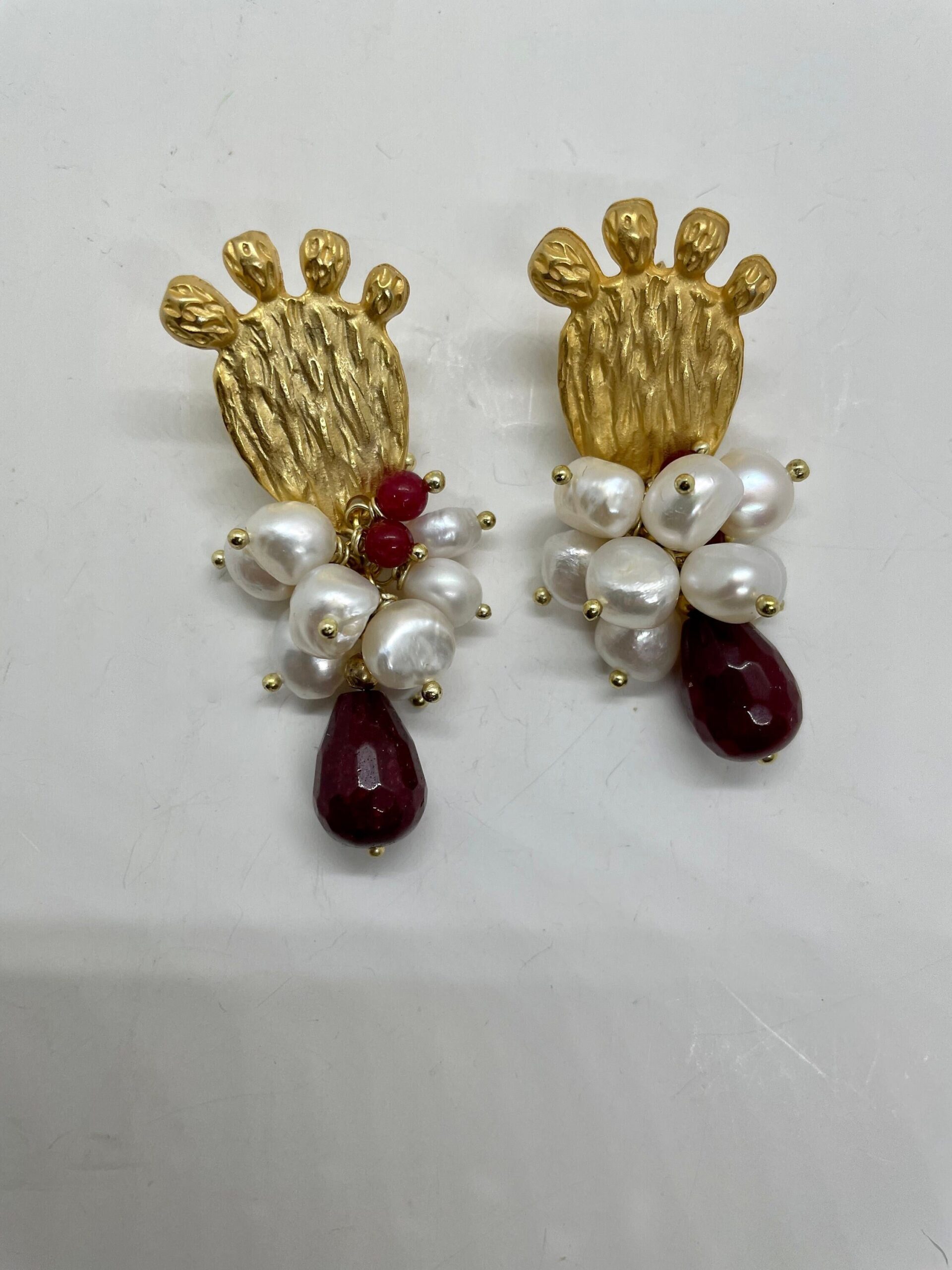 Pendente, grappolo di perle di fiume e di Agata rossa. Perla a goccia di agata rossa.