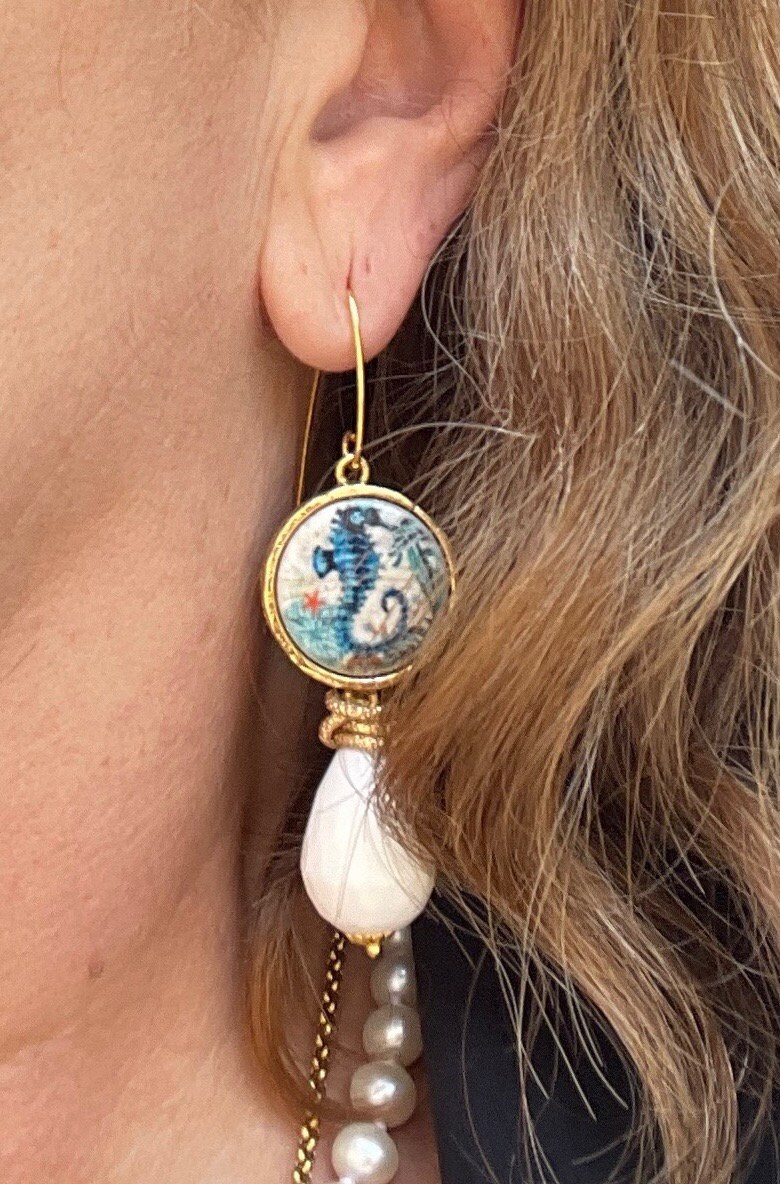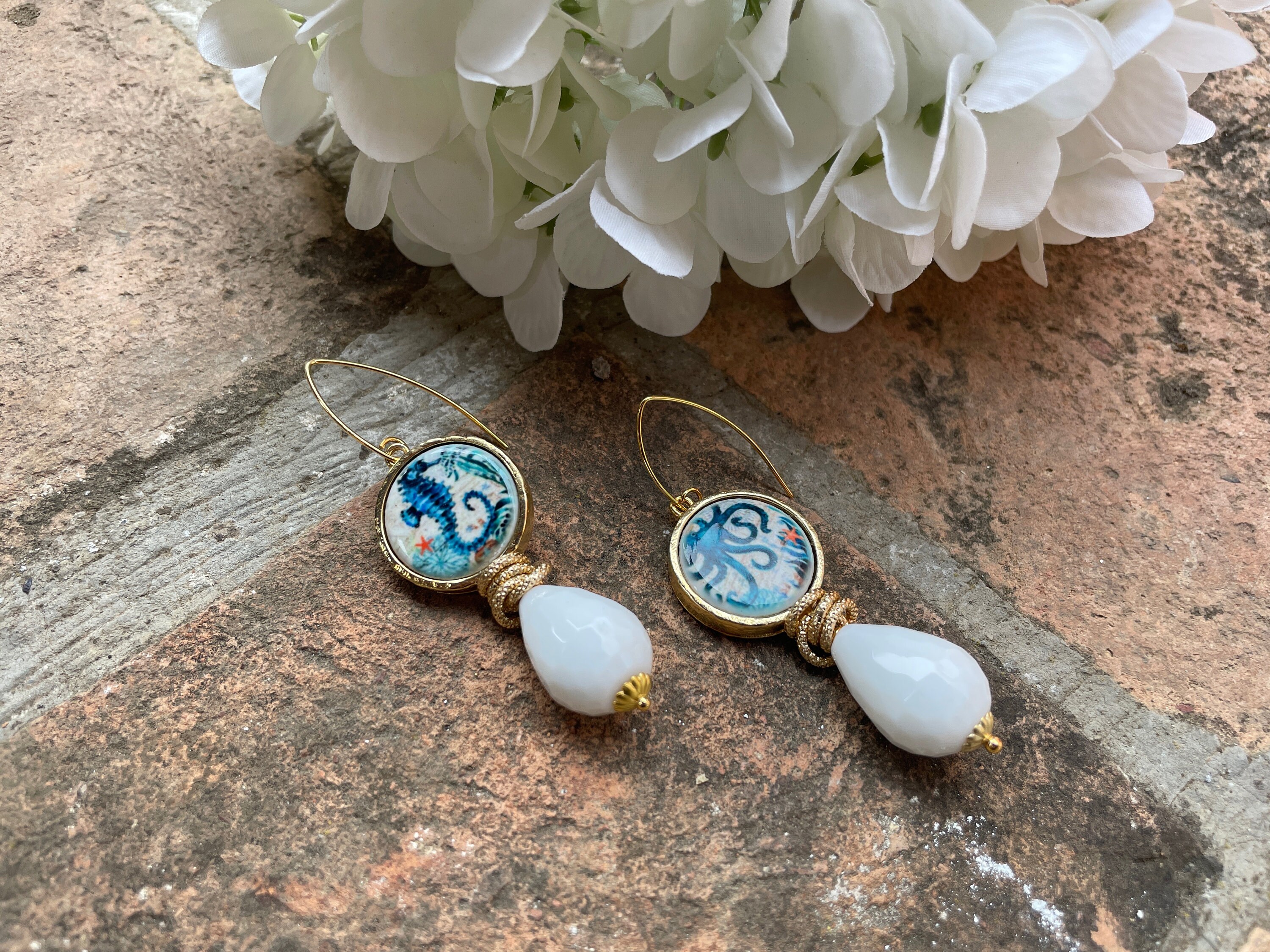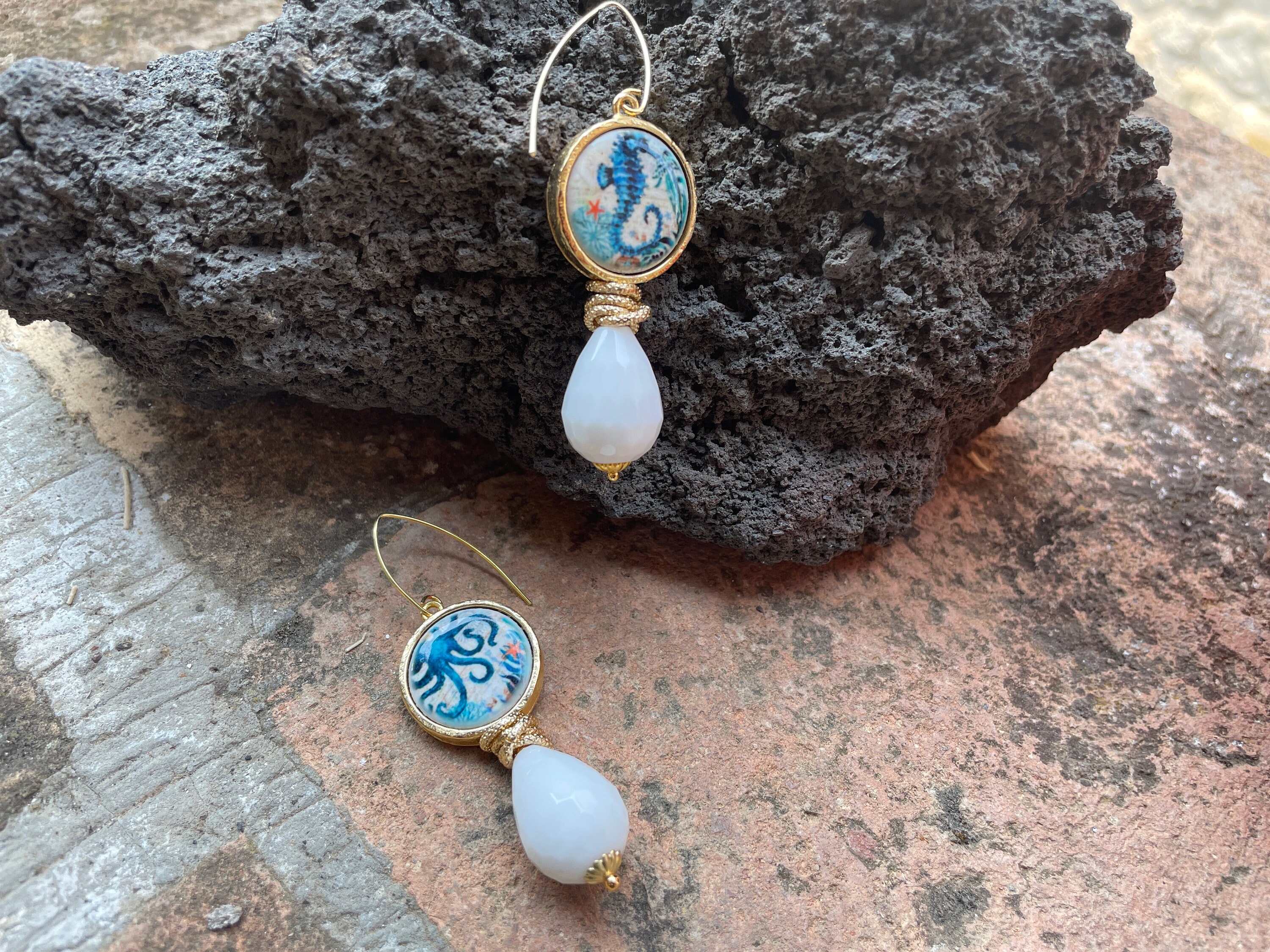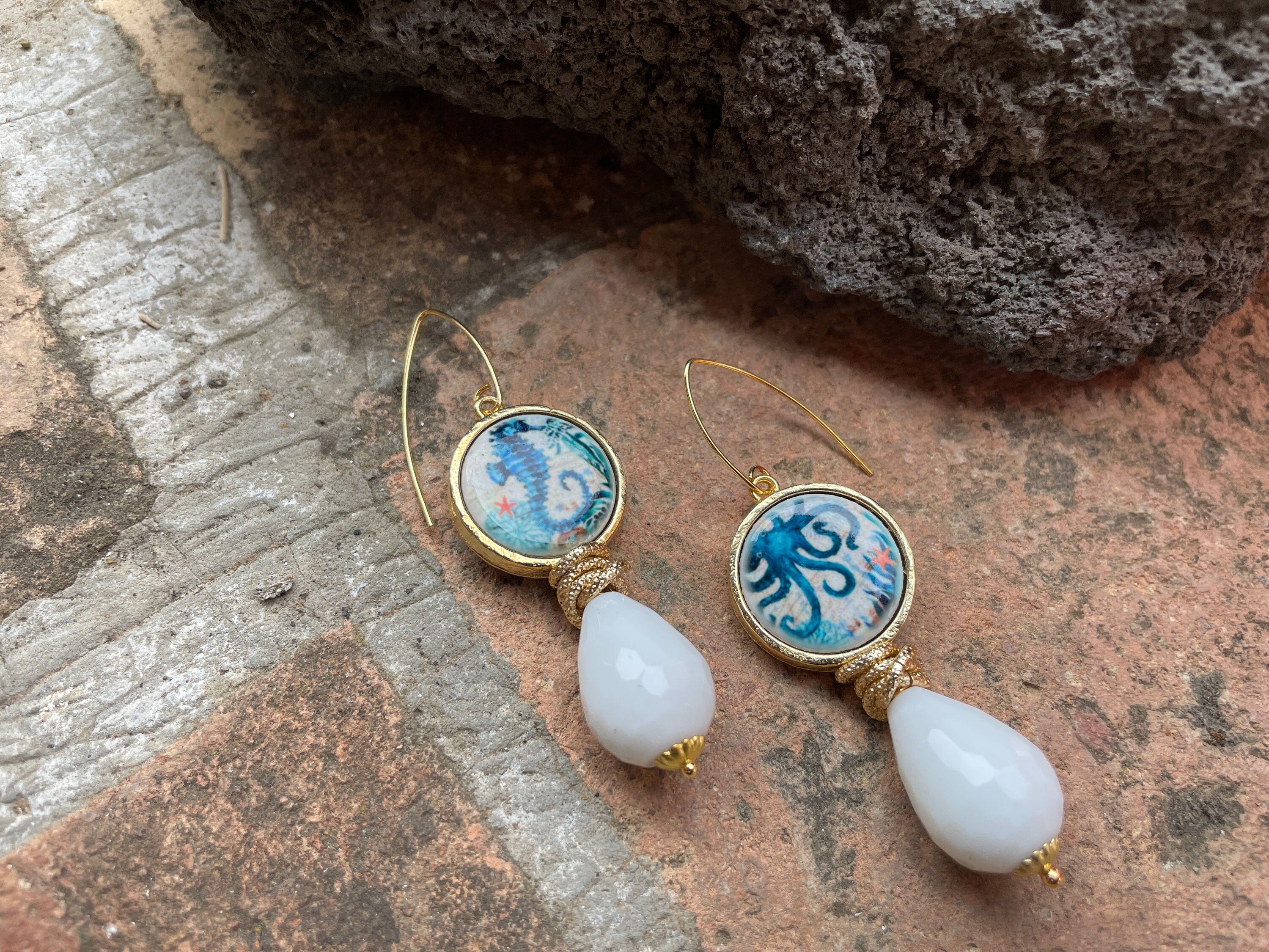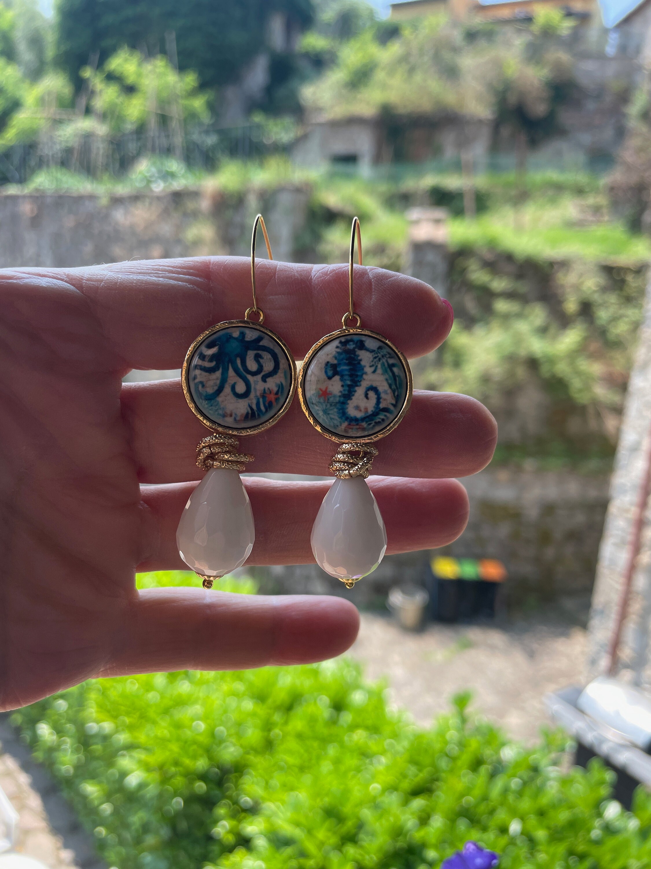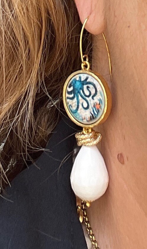 Realizzati con gancio ovale in Ottone e Mattonella rotonda in Ceramica di Caltagirone che raffigura un bel Polipo.