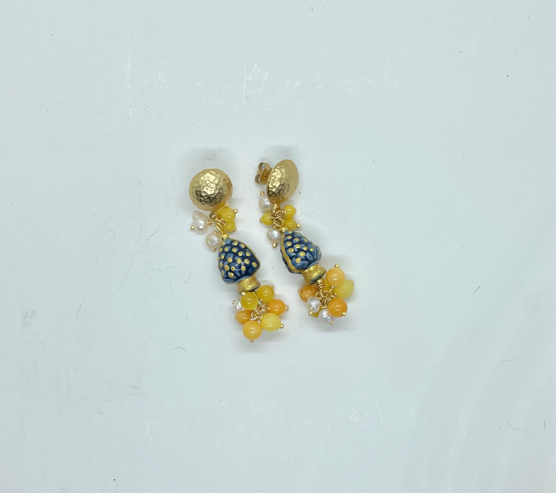 Pendenti grappoli di perle di Agata gialla e perle di fiume.